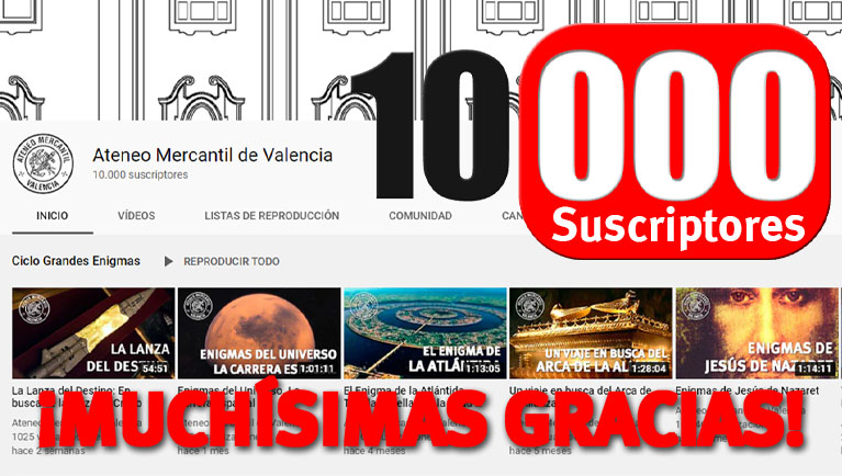 ¡Entre todos lo hemos logrado! Ya somos 10.000 suscriptores en nuestro Canal de YouTube y esperamos seguir sumando nuevos amigos en todo el mundo. Vuestro apoyo es clave para el Ateneo Mercantil de Valencia y es un impulso para seguir trabajando por la cultura y su difusión.