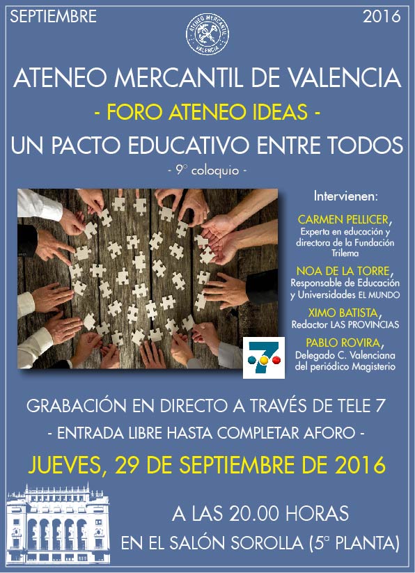 Grabación del noveno debate del Foro AteneoIDEAS: “Un pacto educativo entre todos”