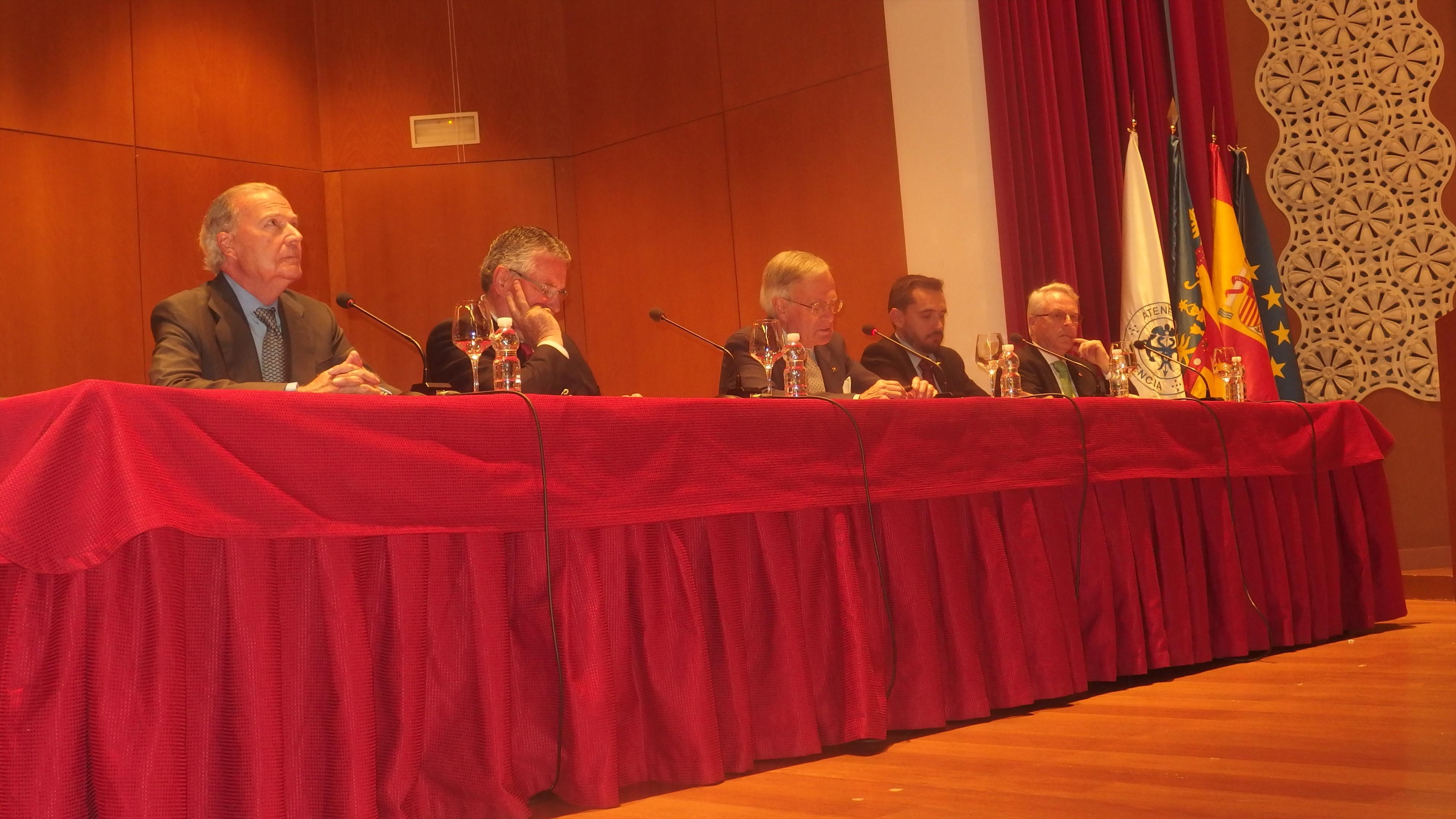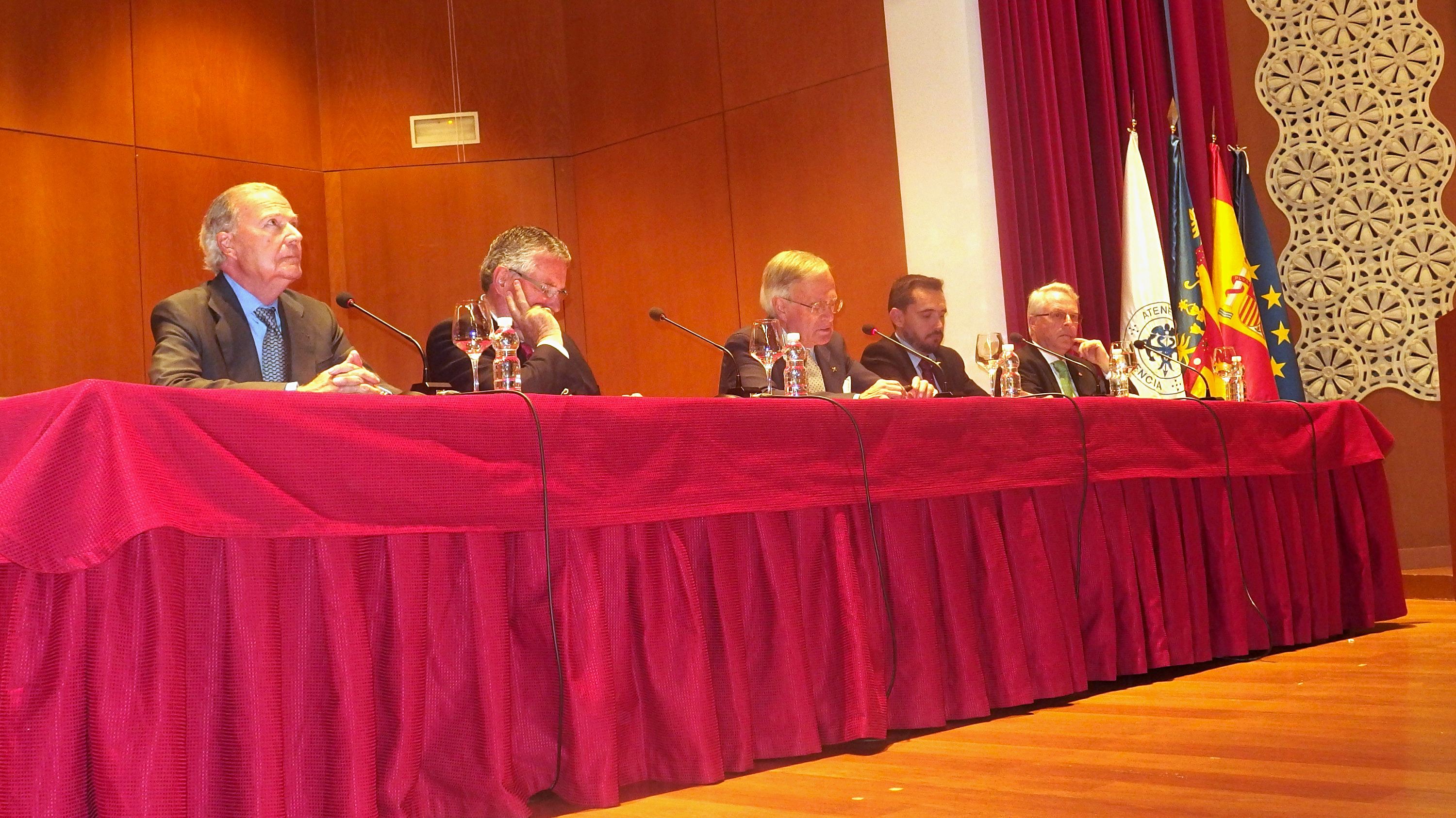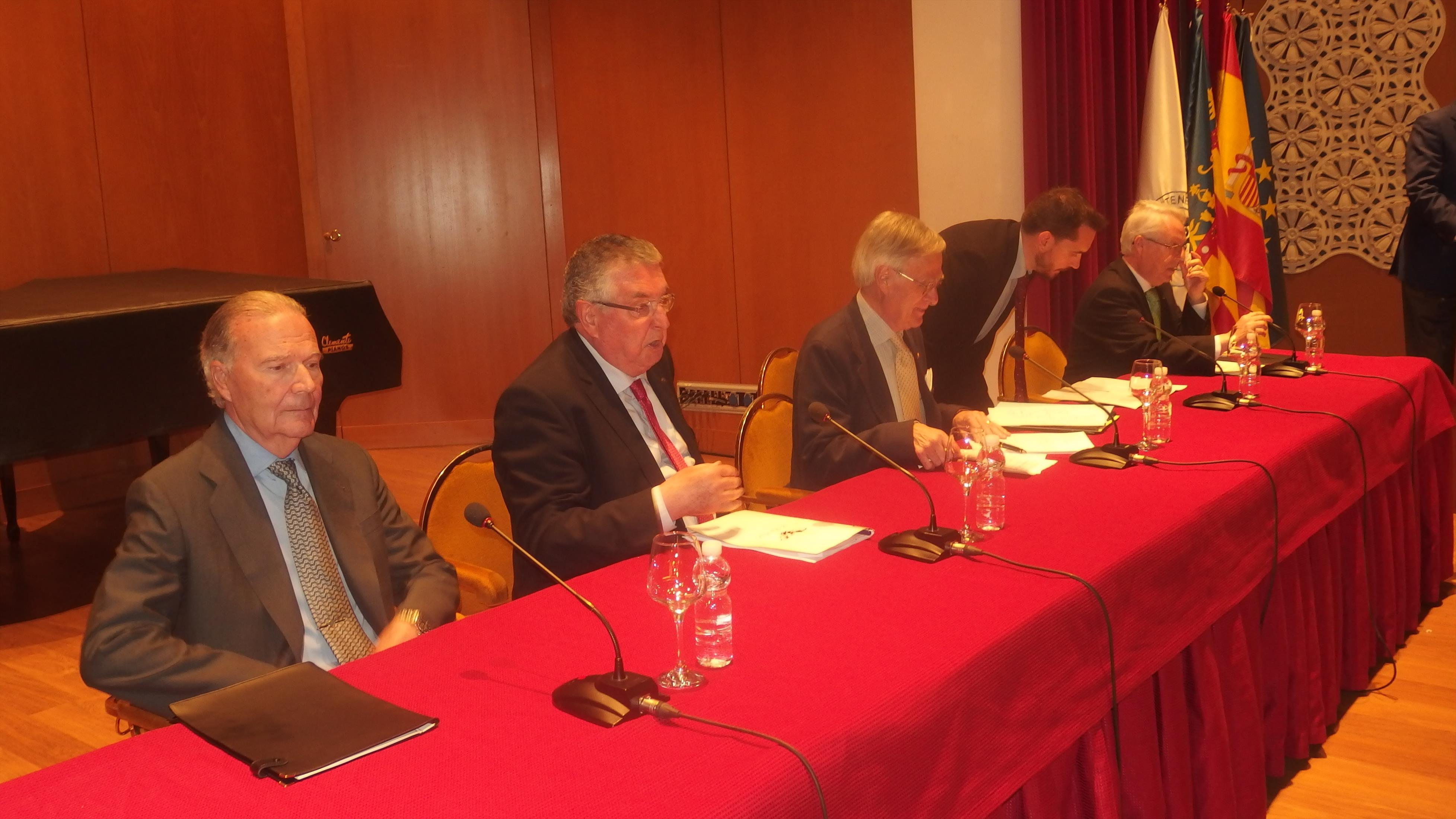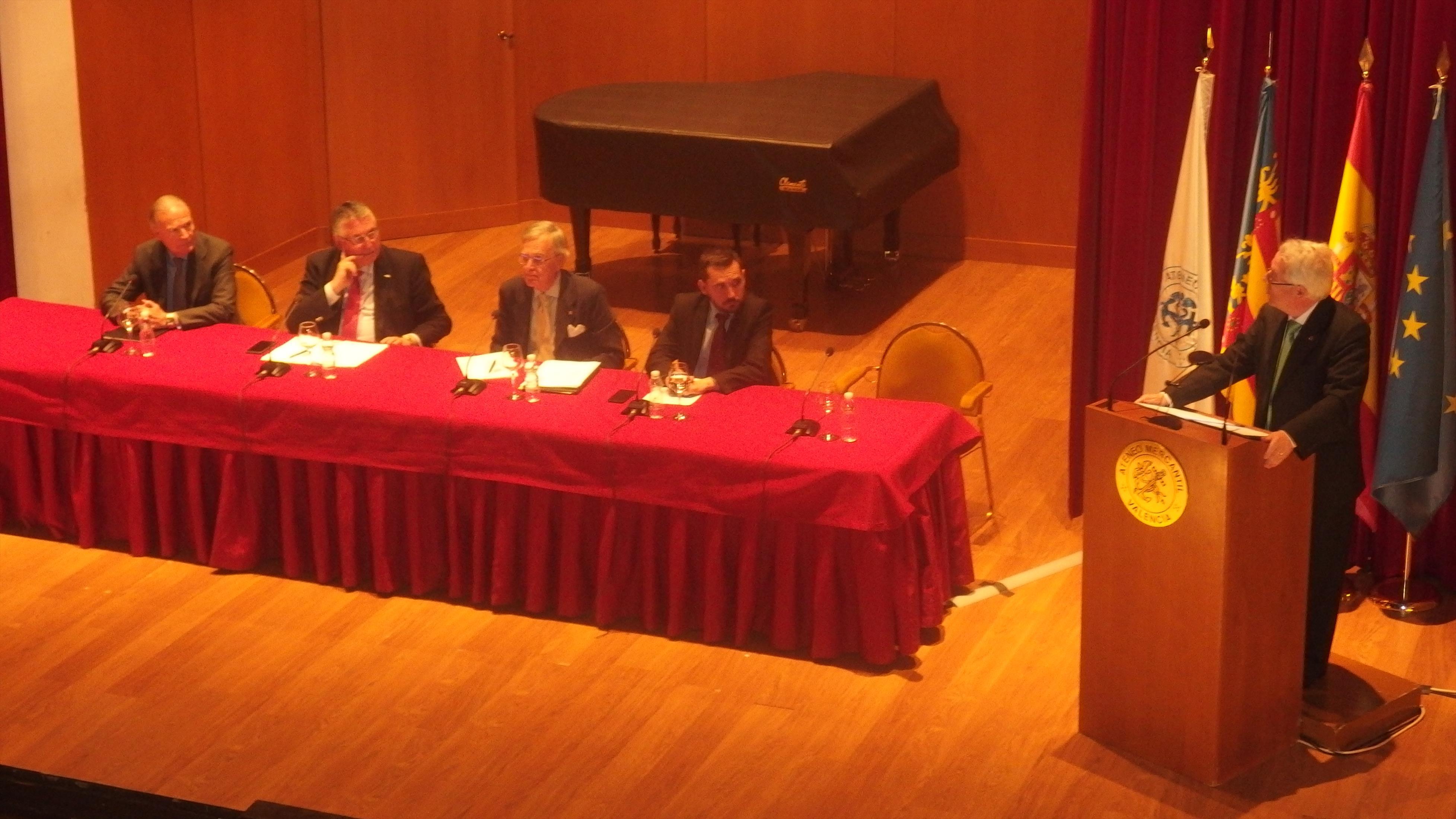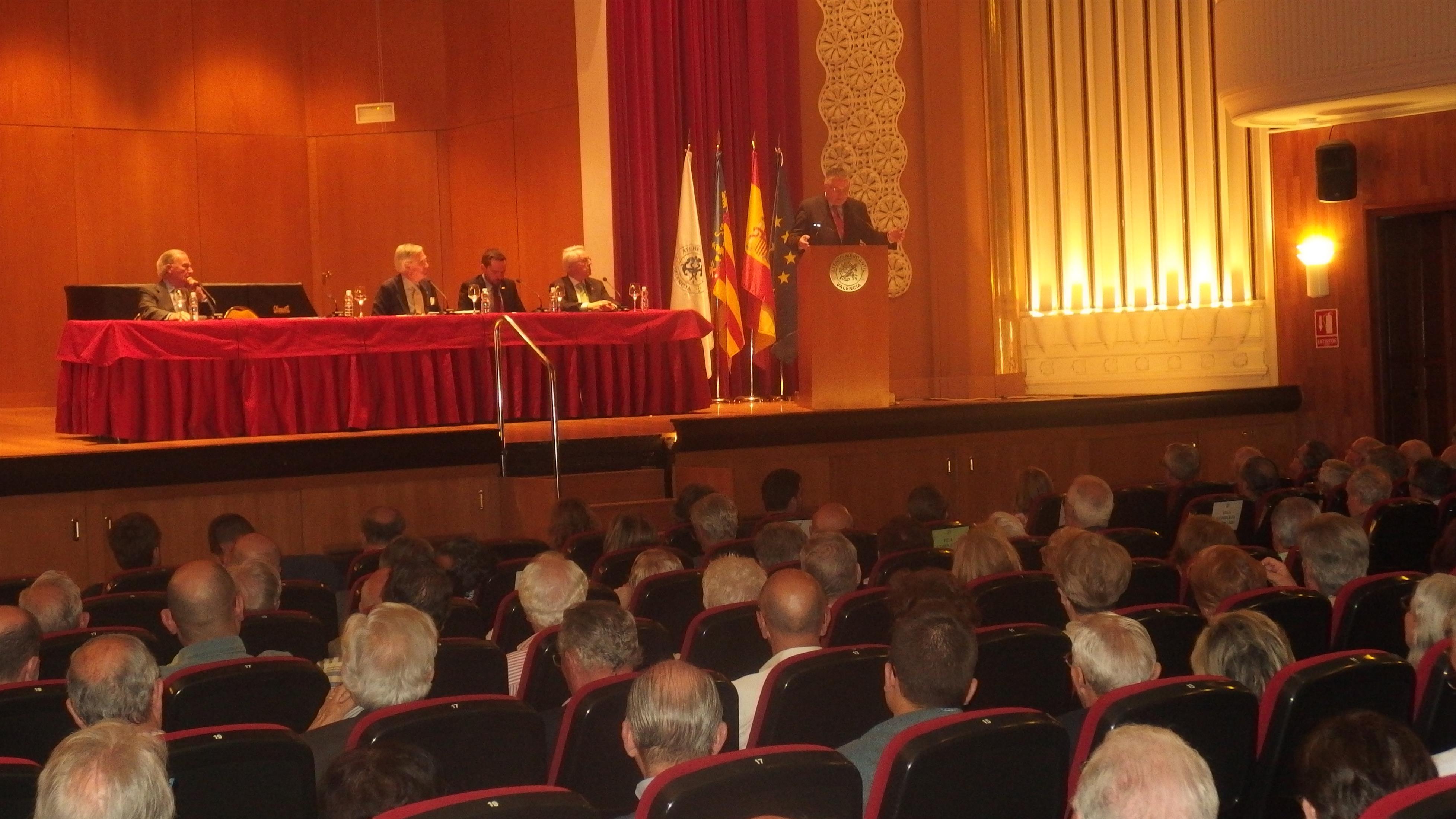 La Jornada de Valencianidad, organizada por el Foro Vinatea-Ateneo, se celebró en el Salón de Actos y estuvo presentada por D. José Francisco Ballester-Olmos, académico de número de la RACV. Los ponentes de la mesa redonda fueron D. Jose Vicente Goméz Bayarri, académico de número de la RACV que disertó sobre la base histórica del momento; D. Oscar Rueda Pitarque, lingüista y miembro de la Junta de Lo Rat Penat, que expuso la situación actual de la cuestión lingüística en nuestra sociedad; D. Enrique Esteve, presidente de Lo Rat Penat, que disertó sobre la vertebración popular de la circunstancia que vivimos en la actualidad y por último, D. José Luis Manglano de Mas, académico de número de la RACV, que cerró las intervenciones con el tema de la articulación sociológica de la sociedad valenciana frente al proceso de catalanización operante.