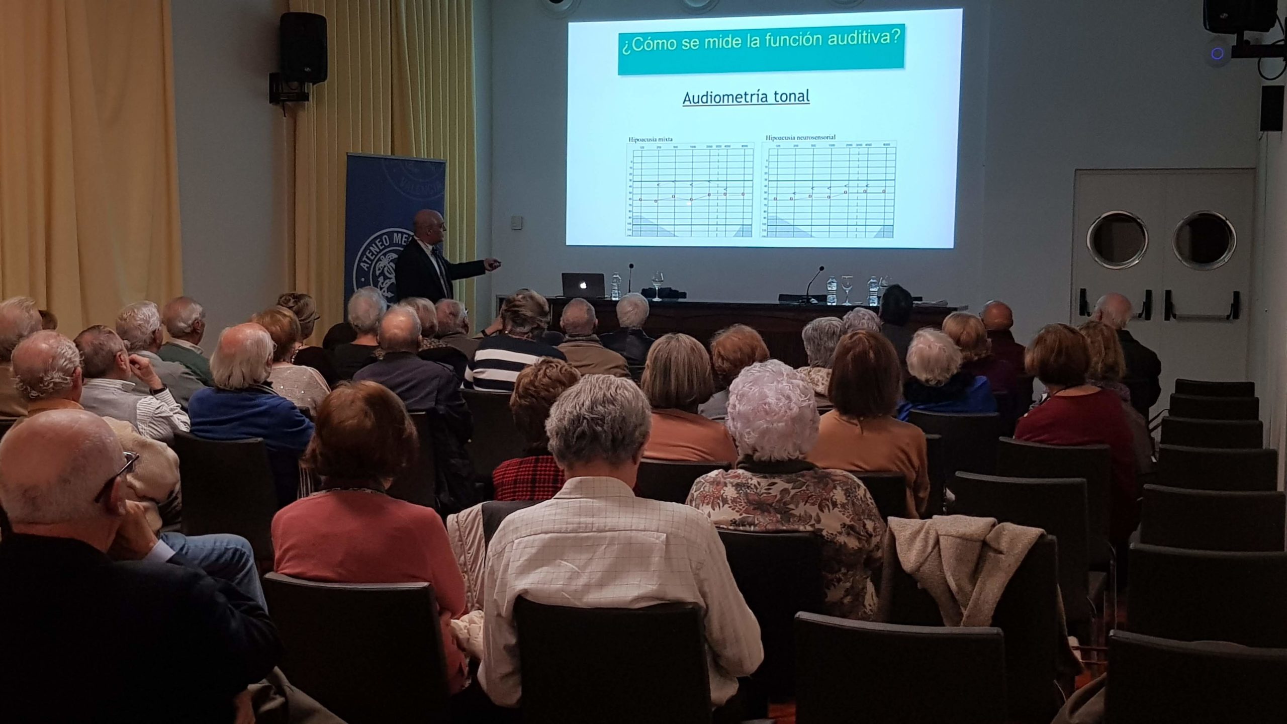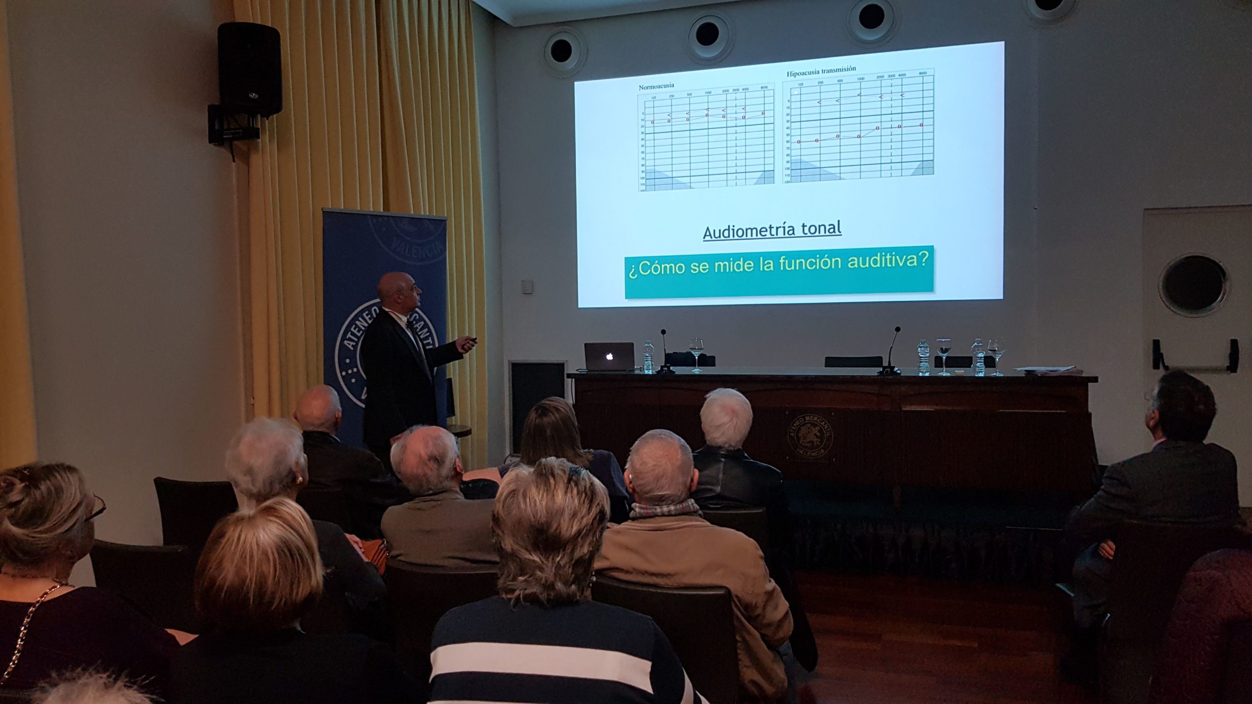 El ponente es D. Manuel Bernal Sprekelsen, catedrático de ORL por la Universitat de Valencia y vicepresidente de la Sociedad Española de ORL, explicó en esta conferencia especializada la pérdida de audición y cómo ésta se debe combatir con la adaptación de los pacientes a las diversas clases de audífonos. La pérdida de la audición que aparece gradualmente a medida que se envejece es frecuente. Aproximadamente, un tercio de las personas entre los 65 y los 75 años de edad tienen cierto grado de pérdida de audición. En el caso de las personas mayores de 75 años, este porcentaje se eleva al 50%.