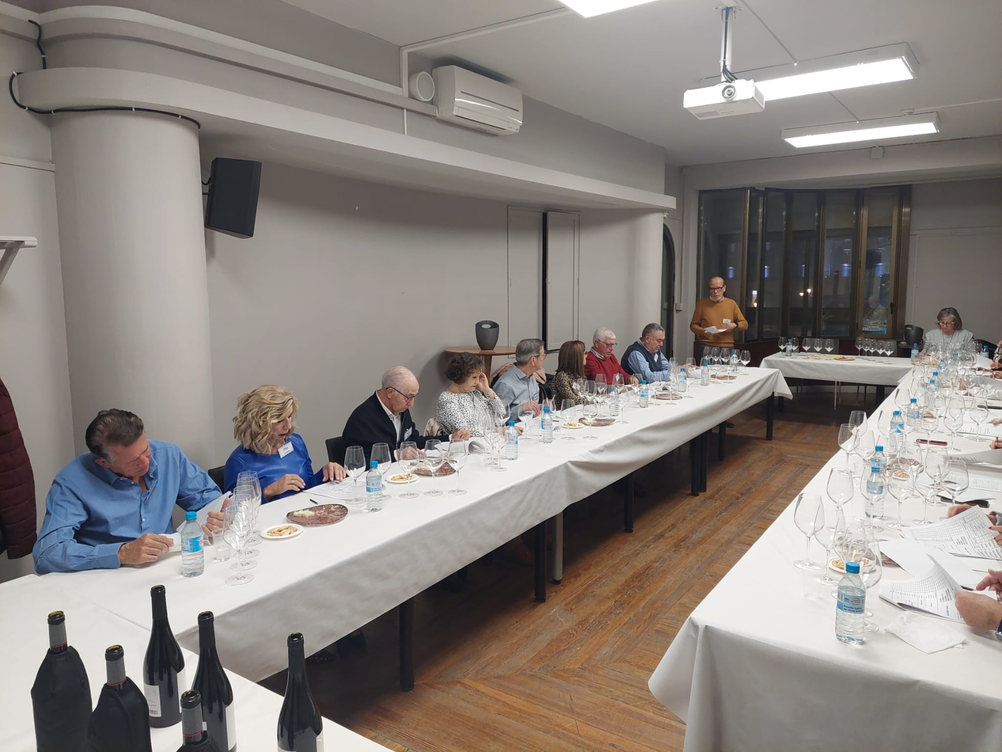 Se procedió a comentar las características principales de las distintas variedades de uva presentes en los vinos y a continuación se cataron: