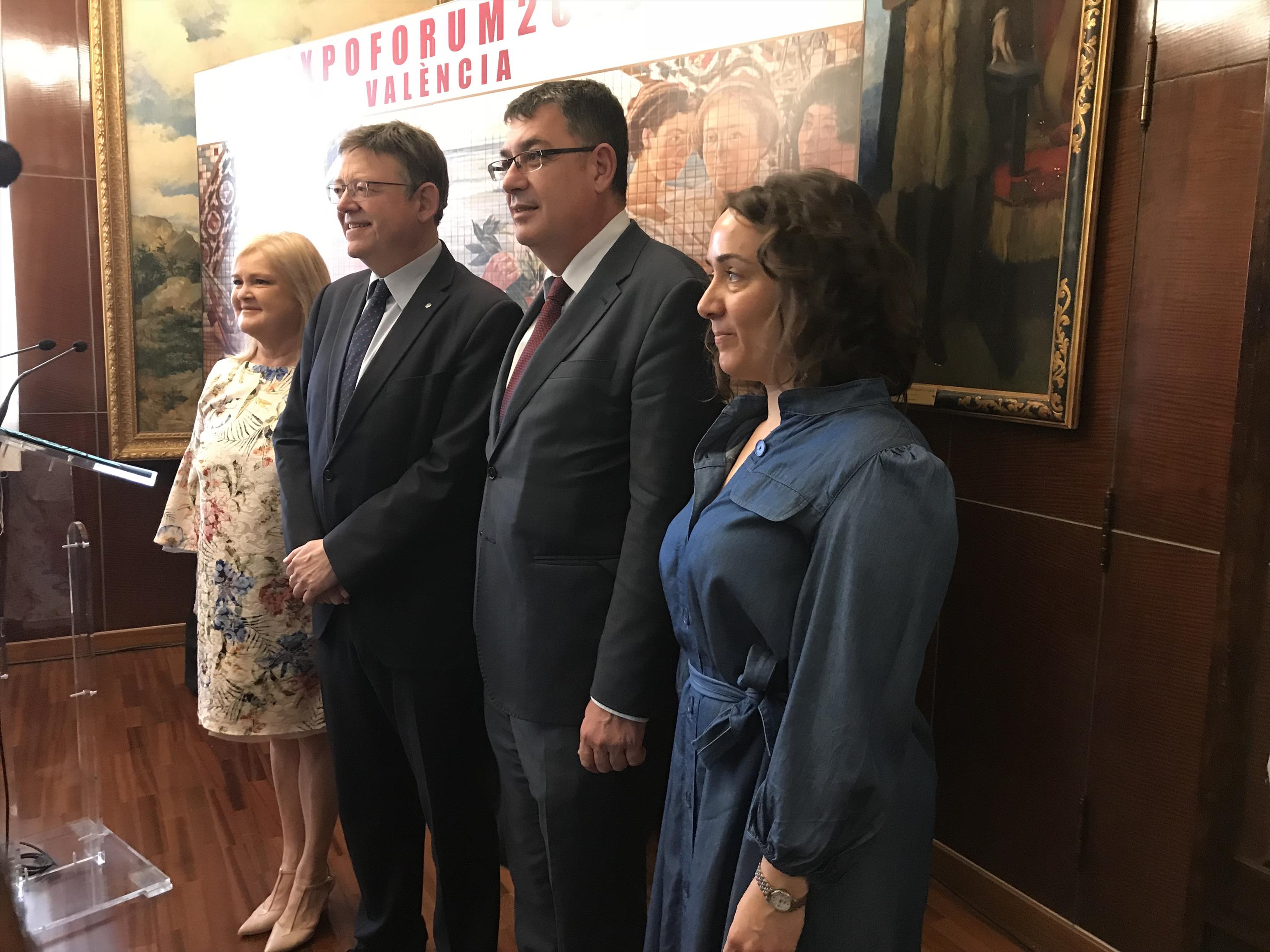 A las 10.30 horas de la mañana ha tenido lugar en el Ateneo Mercantil de Valencia la presentación de EXPOFORUM2019 VALÈNCIA, un evento organizado por la Fundación Ateneo Mercantil. El acto ha estado presidido por el President de la Generalitat, Ximo Puig, el President de les Corts, Enric Morera, la concejala del Ayuntamiento de Valencia, Glòria Tello y la Presidenta de la Fundación Ateneo Mercantil, Carmen de Rosa. Este proyecto nace en conmemoración de los 110 años de la Exposición Regional de 1909 y de la necesidad de volver a poner a la ciudad de València y de la Comunitat en un papel destacado de la modernidad.