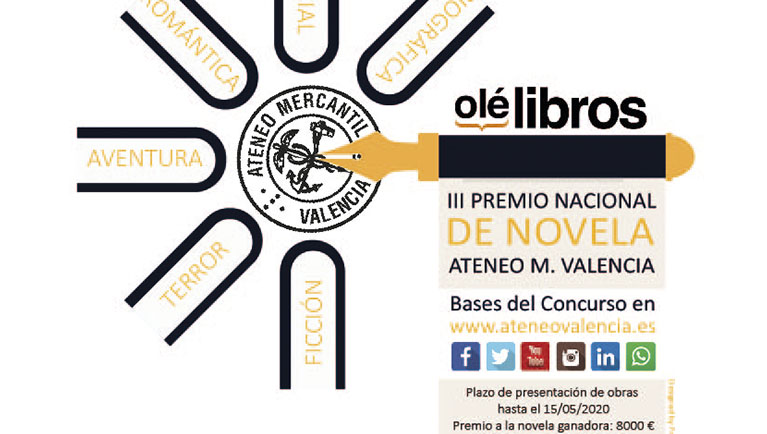 El Ateneo Mercantil de Valencia y la editorial Olé Libros convocan el III Premio Nacional de Novela "Ateneo Mercantil de Valencia”, dotado con un premio de 8.000 euros, además de la publicación a nivel nacional de la obra ganadora y de la finalista. Un galardón que está creciendo en importancia muy rápidamente ya que en sus tres años de vida ha visto como se ha duplicado el premio cada año. El objetivo del concurso es promover la cultura y la creación literaria, con el propósito de descubrir a nuevos autores y tratar de difundir sus obras.