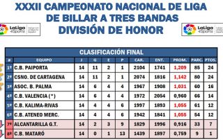 El Club de Billar del Ateneo Mercantil de Valencia se ha clasificado por primea vez en su historia para la Copa de Europa de Billar 2020, tras quedar subcampeones de España en la Liga Nacional de [...]