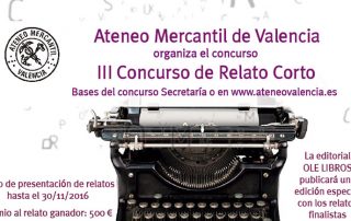 El Ateneo Mercantil convoca el V CONCURSO DE RELATO CORTO “ATENEO MERCANTIL DE VALENCIA” – PREMIO ‘SEBASTIÁN TABERNERO’. Un concurso que ha ido creciendo en importancia y cuyo premio ha ido en las ediciones anteriores [...]
