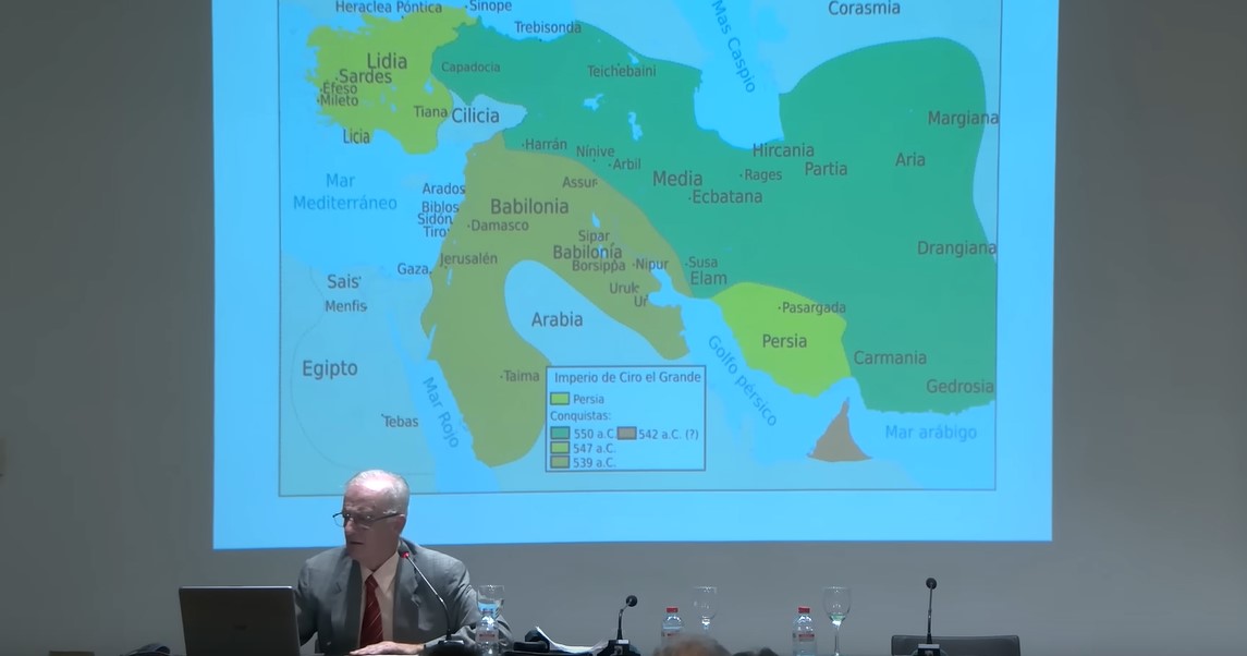 José Luis Climent nos desgranó sus conquistas, que se extendieron sobre Media, Lidia y Babilonia, desde el mar Mediterráneo hasta la cordillera del Hindu Kush, con lo que creó el mayor imperio conocido hasta ese momento. Duró más de 200 años, hasta su conquista final por Alejandro Magno.