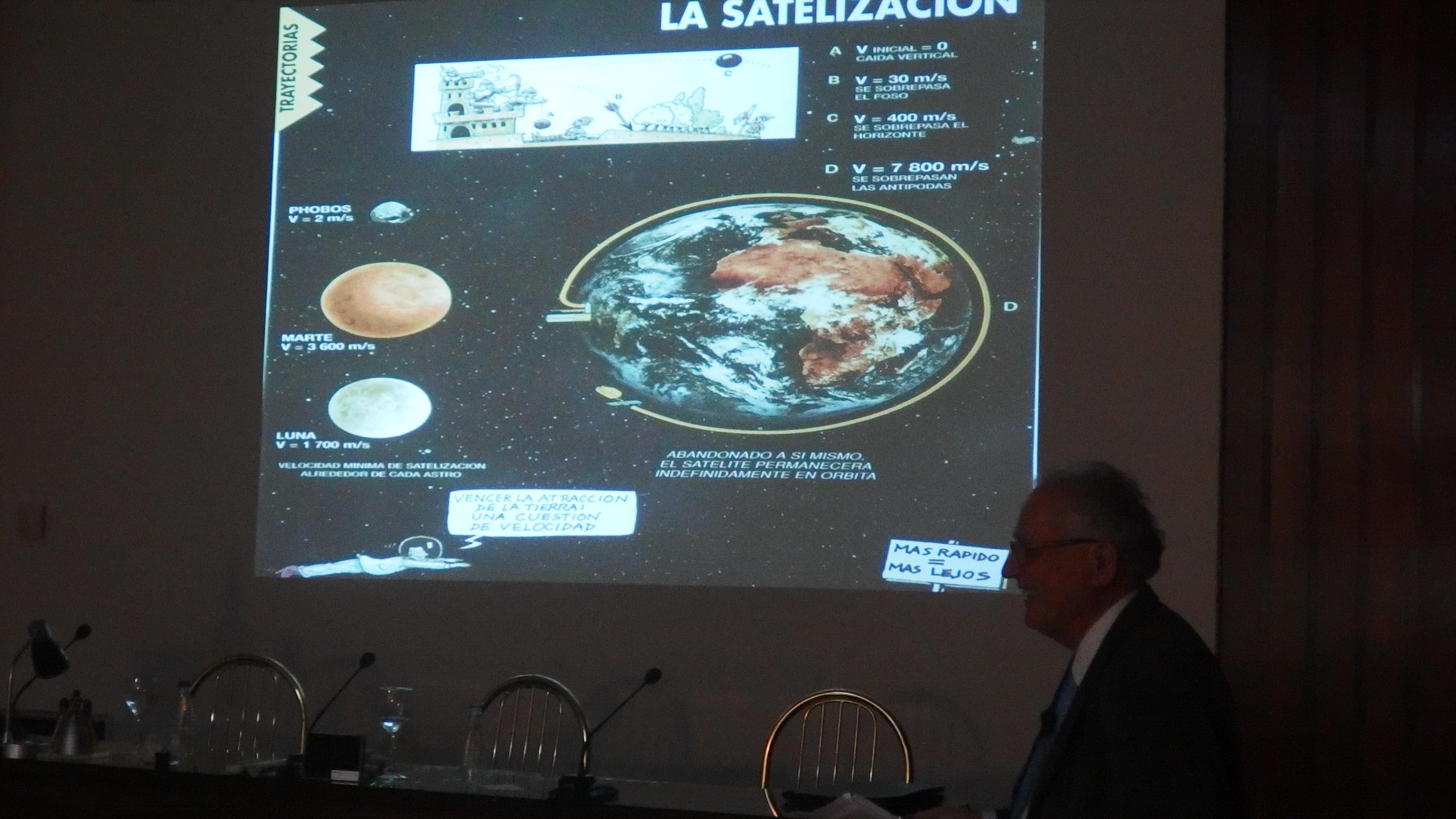El Ingeniero en Propulsión Espacial francés, D. Jean-Claude Sylvestre, nos acercó, a través de multitud de ejemplos y curiosidades a un tema desconocido para todos como es el del Espacio, como funciona y para que sirve.