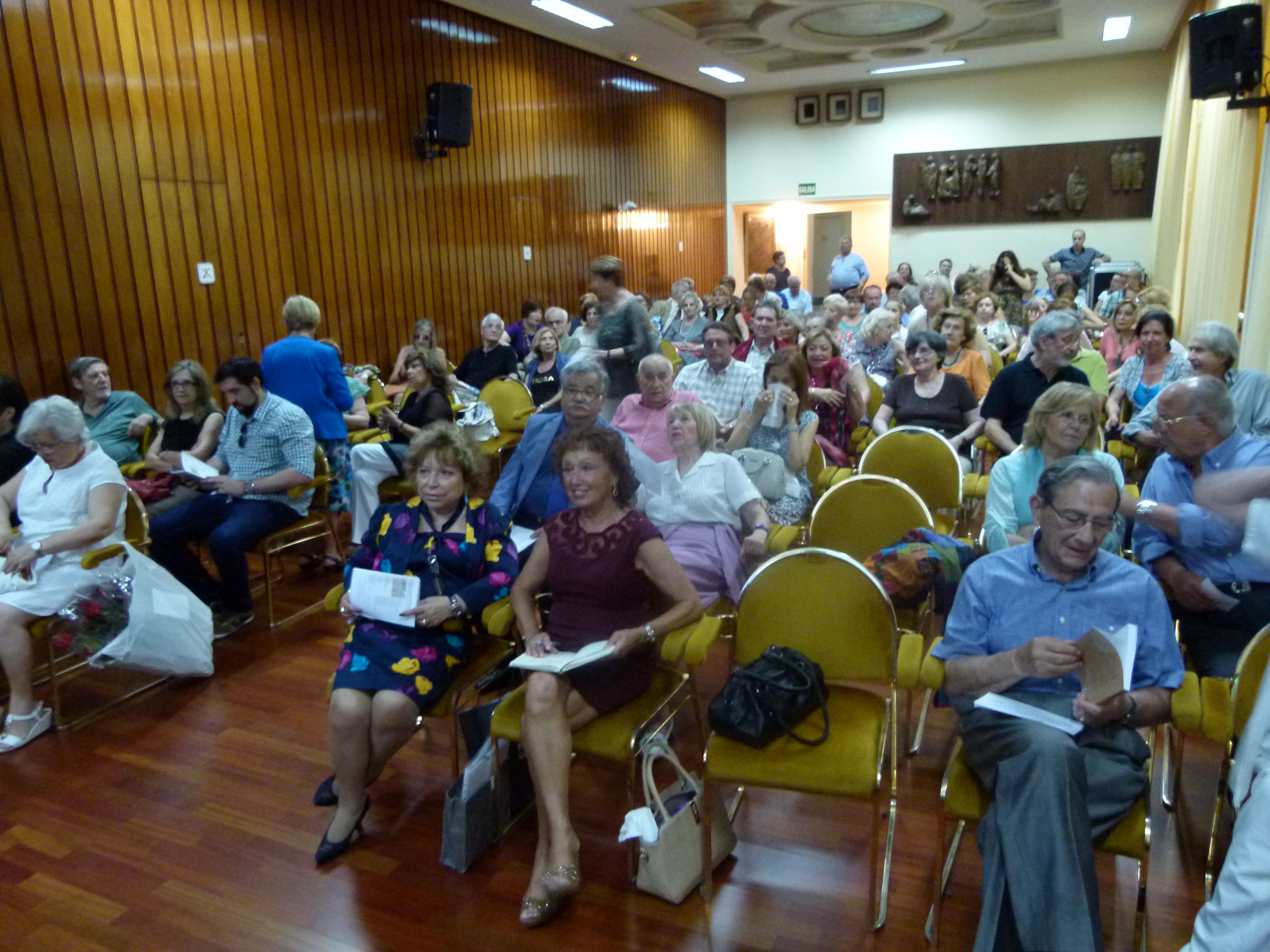A la hora anunciada, 19.00 horas, comenzó el recital en el precioso SALON SOROLLA, del Ateneo, preparado con gusto por la comisión organizadora, que, en pocos minutos, se había llenado de público, para disfrutar de una agradable tarde de poesía y música. La mesa estaba constituida por VICENTE BOSCH, Directivo del Ateneo, CONXA GAUSÍ, compañera de clases, y VICENTE BARBERÁ, profesor, Inspector de Educación, y alma del Aula, puesto que es él quien dirige las sesiones de los Lunes que tanto ayudan a los alumnos a mejorar su escritura.