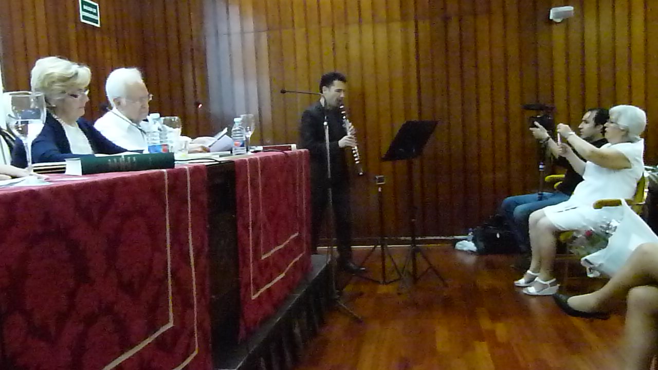 Luego prosiguió la segunda parte del recital, finalizando con la lectura de Ana Fernández de Córdova. Despidió el acto VICENTE BARBERÁ agradeciendo al público su asistencia y emplazándole a asistir a los eventos que realizaremos en los siguientes cursos. Y con la composición “Rapshody” interpretada al clarinete, por nuestro músico invitado, y unas palabras finales de VICENTE BOSCH, se dio fin al recital, que esperamos haya sido del agrado de todos los asistentes y les apetezca volver a escucharnos en los actos del próximo curso.