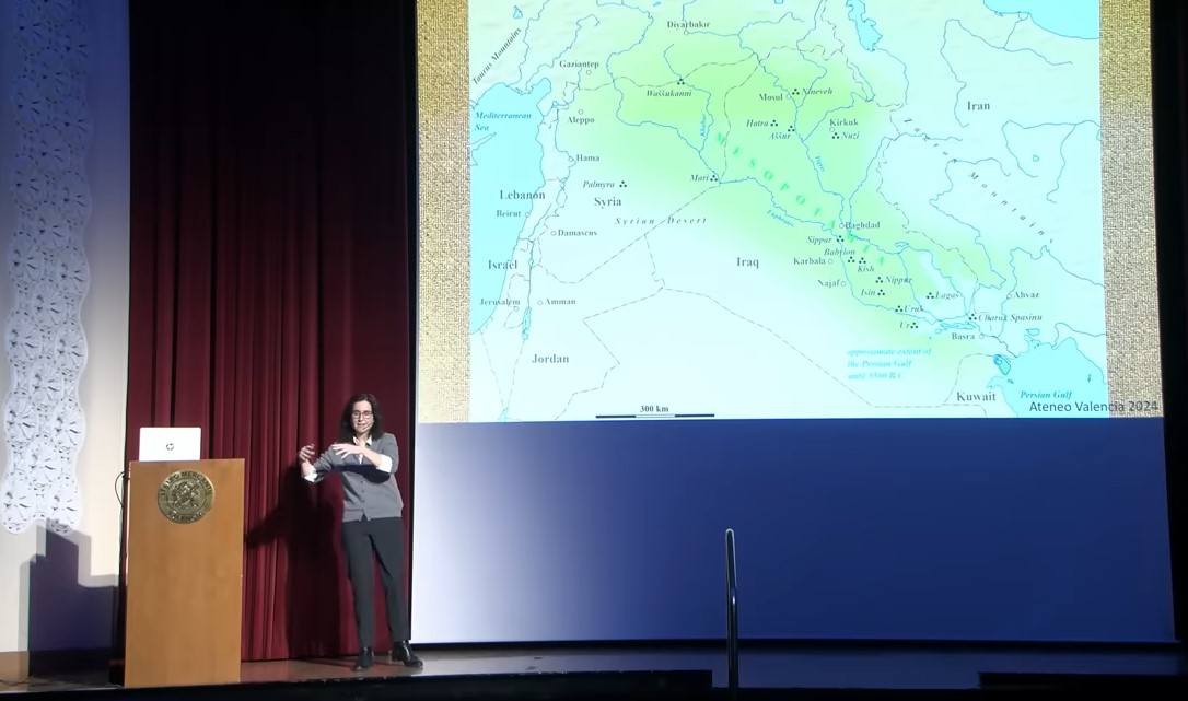 La profesora Eva Tobalina impartió una clase magistral en su estreno como ponente en las conferencias del Ateneo Mercantil de Valencia y lo hizo acercando la historia de la primera civilización de la Historia, los Sumerios.