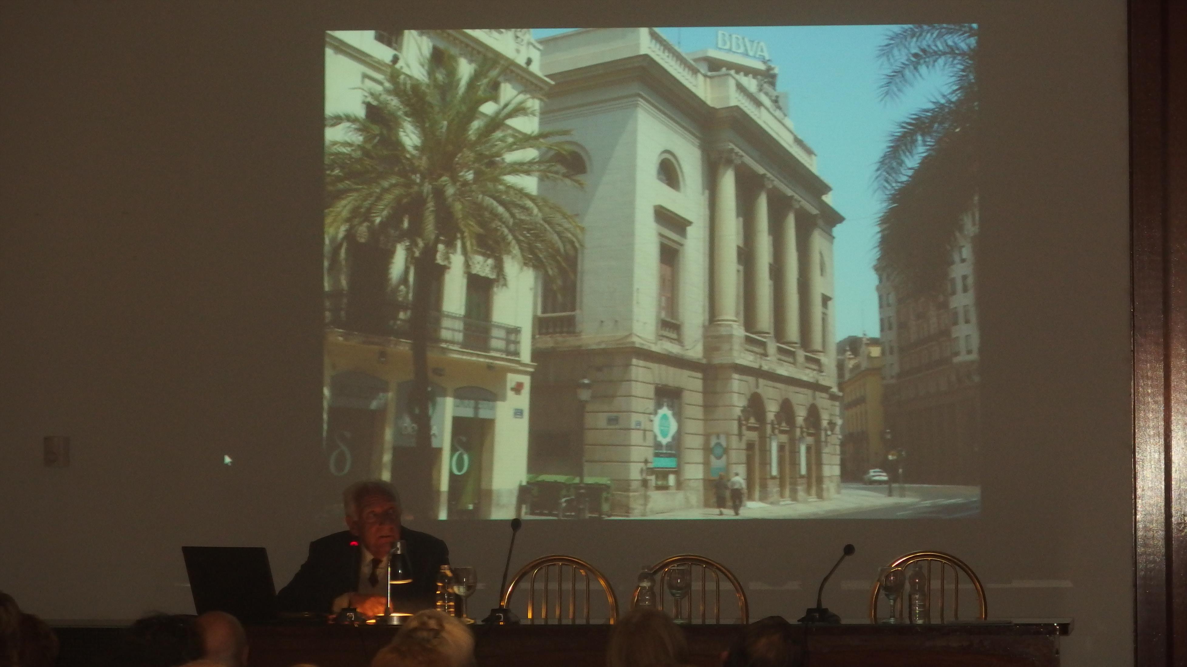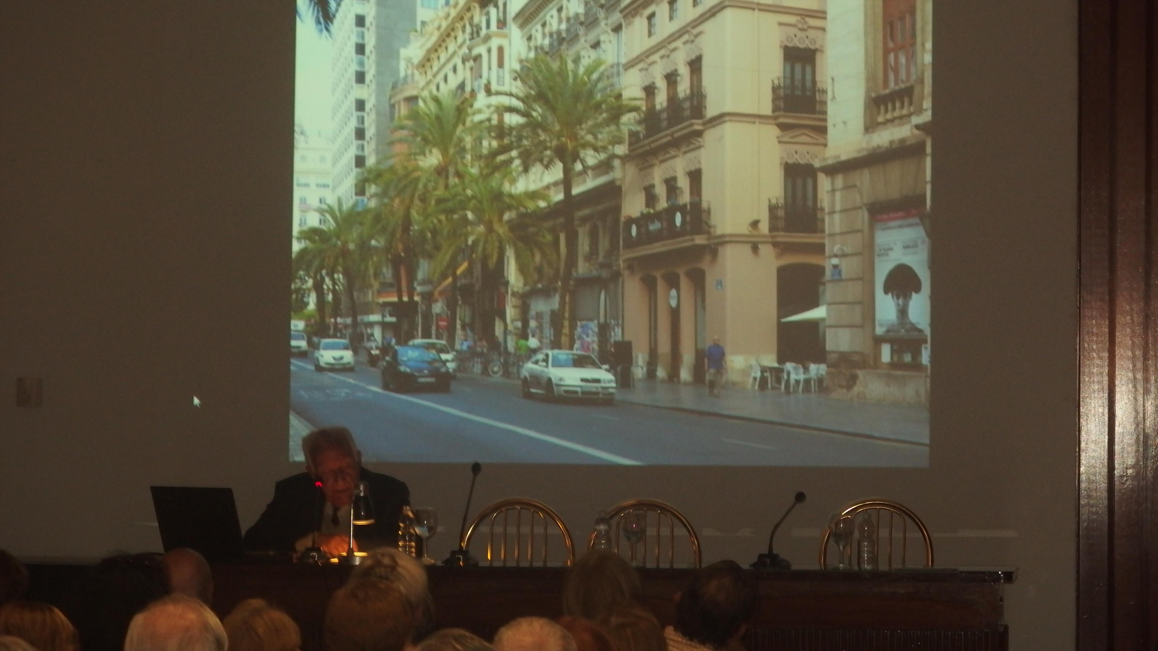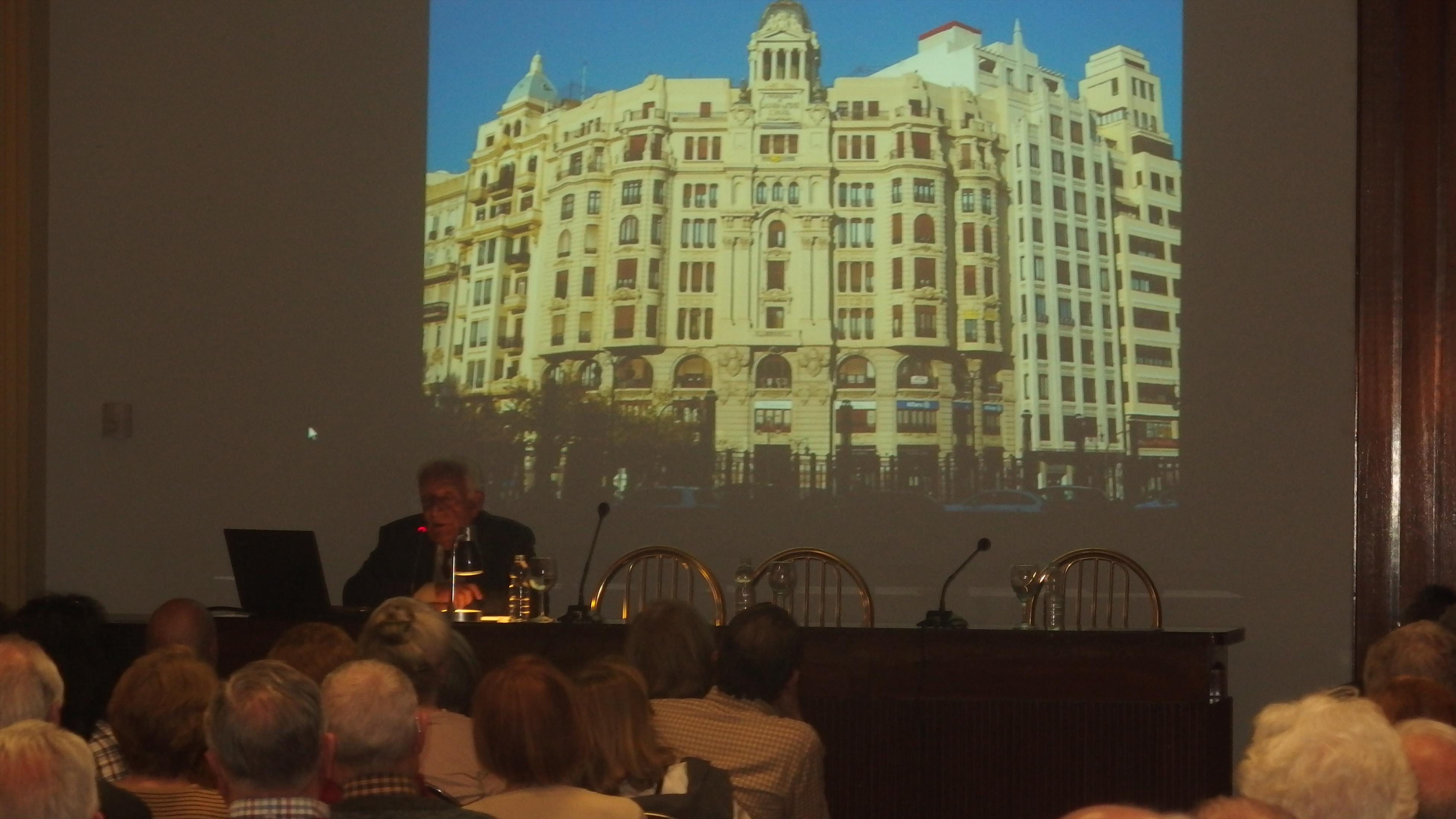 El profesor D. Amando García nos recreó su paseo virtual por el Barrio de San Francisco, en el centro histórico, apoyado en fotografías personales o cedidas, en el que destacó la presencia de numerosos edificios de gran interés arquitectónico o histórico, entre los que, entre otros, se encuentran el Instituto Luis Vives, la Estación Central de RENFE, el desaparecido convento de San Francisco, que da nombre a este barrio, el Colegio del Patriarca, el Ayuntamiento de la ciudad, el Banco de Valencia y. por supuesto, nuestra Sede del Ateneo Mercantil, todo ello contado de forma que consigue captar toda la atención de los asistentes a estas conferencias.