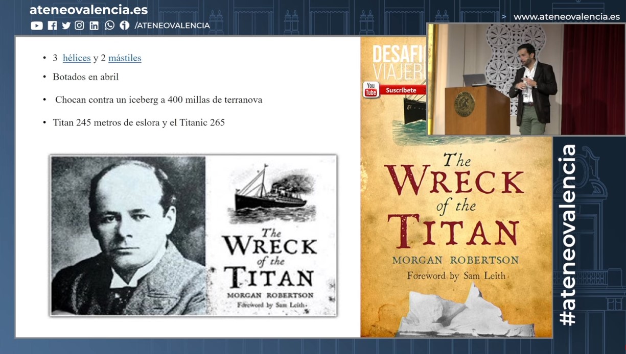 - La novela Futility, escrita por Morgan Robertson, fue publicada en 1898, 14 años antes de que el Titanic zarpara. Ésta se centraba en el hundimiento de un barco ficticio llamado Titán. Hay un número inquietante de similitudes entre el hundimiento del barco en Futility y la realidad: partiendo de sus nombres ya que son muy parecidos (Titan & Titanic), casi del mismo tamaño, ambos se hundieron en abril y debido a un iceberg. Ambos tenían pocos botes salvavidas.