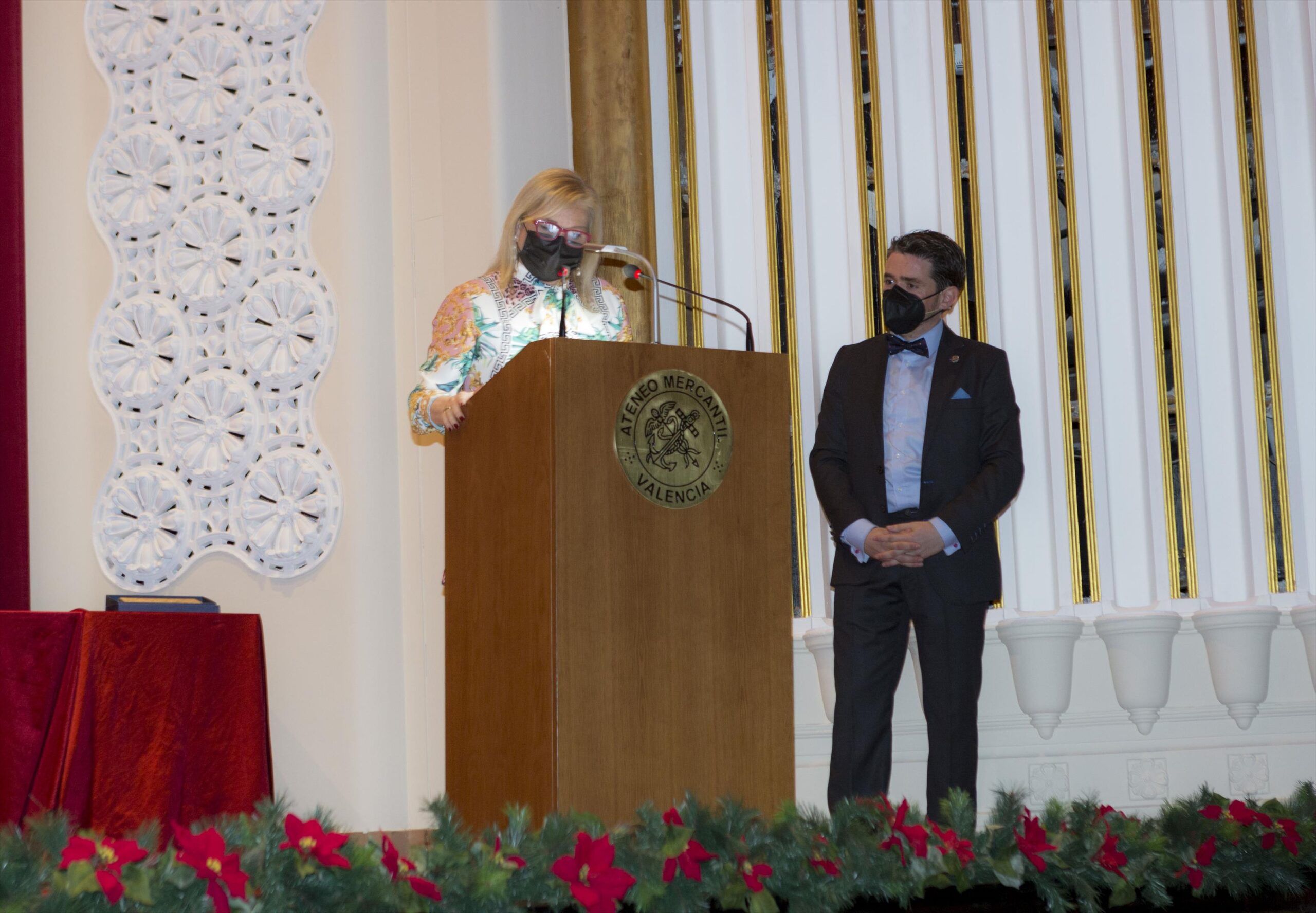 La presidenta del Ateneo Mercantil de Valencia, Carmen de Rosa, se ha mostrado esperanzada porque parece "que se empiece a ver la luz al final del túnel. No podemos bajar la guardia, tenemos que seguir esforzándonos para velar por la seguridad de todos mientras la sociedad científica, afortunadamente, sigue esforzándose sin descanso para poder volver a la deseada normalidad" añadiendo "ese creo que es, sin duda, el deseo de todos y ese es el brindis que me gustaría realizar con todos ustedes en esta Gala de Navidad".
