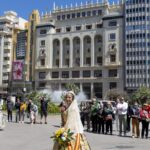 Con motivo de la celebración este lunes 17 de abril, de la festividad de San Vicente Ferrer, el Ateneo Mercantil de Valencia, con su Reina 2023, Paula Rocafull, y su Corte de Honor, la presidenta Carmen de Rosa, miembros de su Junta Directiva y la comisión de Fallas ateneísta, han desfilado por las calles de València en la tradicional procesión cívica en honor al santo valenciano, que ha incluido una ofrenda de flores. Este año ya se ha recuperado su recorrido habitual, ya que las obras en la Plaza de la reina concluyeron a finales de 2022. Una comitiva que arrancó desde la Plaza del Ayuntamiento y que acabó en la casa natal del santo.