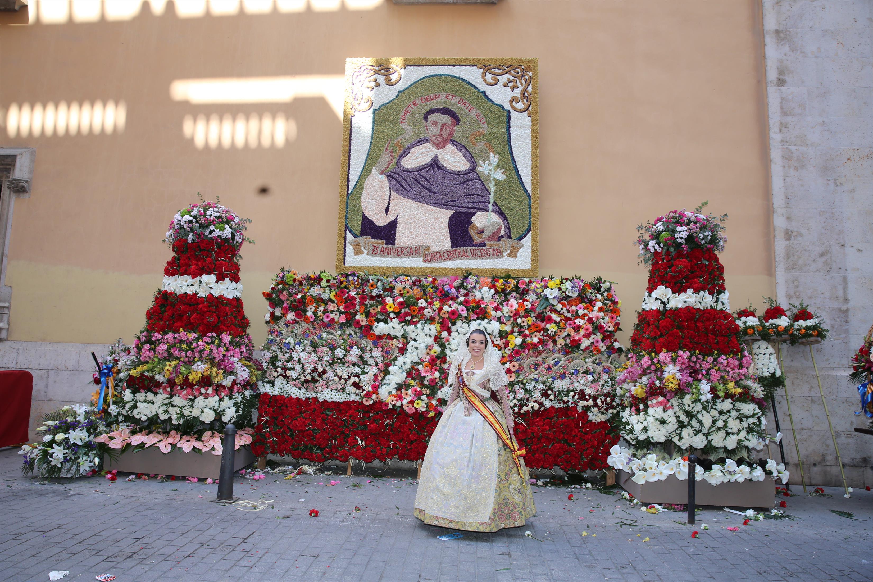 Así el pasado este lunes, el día grande de la festividad de Sant Vicent Ferrer, comenzó al alba con la "despertá" clásica y el volteo general de Campanas. A las 10:30 se celebró la Solemne Misa Pontifical en la Catedral. A las 12:00, la Procesión Cívica de Ofrenda de flores a San Vicente Ferrer, que fue de la puerta principal del Ayuntamiento de Valencia hasta la Casa Natalicia, presidida por la Molt Honorable Clavariesa Mª Jesús Moll i Navarro acompañada por la Junta Central Vicentina, los altares y diferentes asociaciones vinculadas a la fiesta. Y a las 8 de la tarde, la Solemne Procesión General partió desde la Catedral de Valencia. Así, Valencia y localidades cercanas sumaron este año un total de 17 altares, que se representaron durante este fin de semana. Excepto algunos, que se trasladarán al siguiente, justo una semana después. Son los altares del santo Ángel Custodio, del Mocadoret y del Mercado Colón, que realizarán sus representaciones los proximos días 14 y 15 de abril.