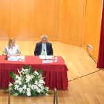 Finalizada la firma y tras atender a los medios de comunicación presentes, la comitiva, acompañada del Presidente de las Cortes Valencianas, Molt Il.lustre Sr. D. Alejandro Font de Mora, acudió al salón de actos donde el Presidente del Congreso ofreció una conferencia a los allí presentes, bajo el título "El Panorama Sociopolítico en España". Posada insistió en la necesidad de "respaldar proyectos que garanticen la estabilidad institucional, social y política, desde el respeto a la unidad de España", y puso como ejemplo de convivencia y progreso, a la ciudad de Valencia. Recordamos que el Presidente del Congreso vivió una etapa de su adolescencia, en nuestra ciudad. Fue en los años en los que su padre, D. Jesús Posada Cacho, fue Gobernador Civil de Valencia (entre 1960 y 1962).