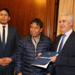 Esta tarde nos han honrado con su presencia, el Ministro de Relaciones Exteriores de Bolivia, Sr Canciller, D. David Choquehuanca Céspedes y la vicepresidenta del Consell, Dña. Mónica Oltra Jarque. A su llegada a nuestra sede social, ambos han sido recibidos por nuestros vicepresidenteS, D. Tomás Trénor y D. Carlos Climent, quienes les han acompañado a la sala de juntas donde han firmado en el Libro de Oro del Ateneo Mercantil.