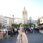 Por la la tarde, a las 18.30 horas comenzó la procesión de la Virgen desde la Catedral a la Basílica. La imagen apareció en la puerta de los apóstoles casi dos horas después de que empezaran a salir las primeras asociaciones cívicas y confesionales venidas desde toda la Comunitat Valenciana y que la acompañaron por centro histórico de Valencia. Millones de pétalos de rosa caían desde el cielo y con un gran fervor se despidió a la Patrona hasta el próximo año.