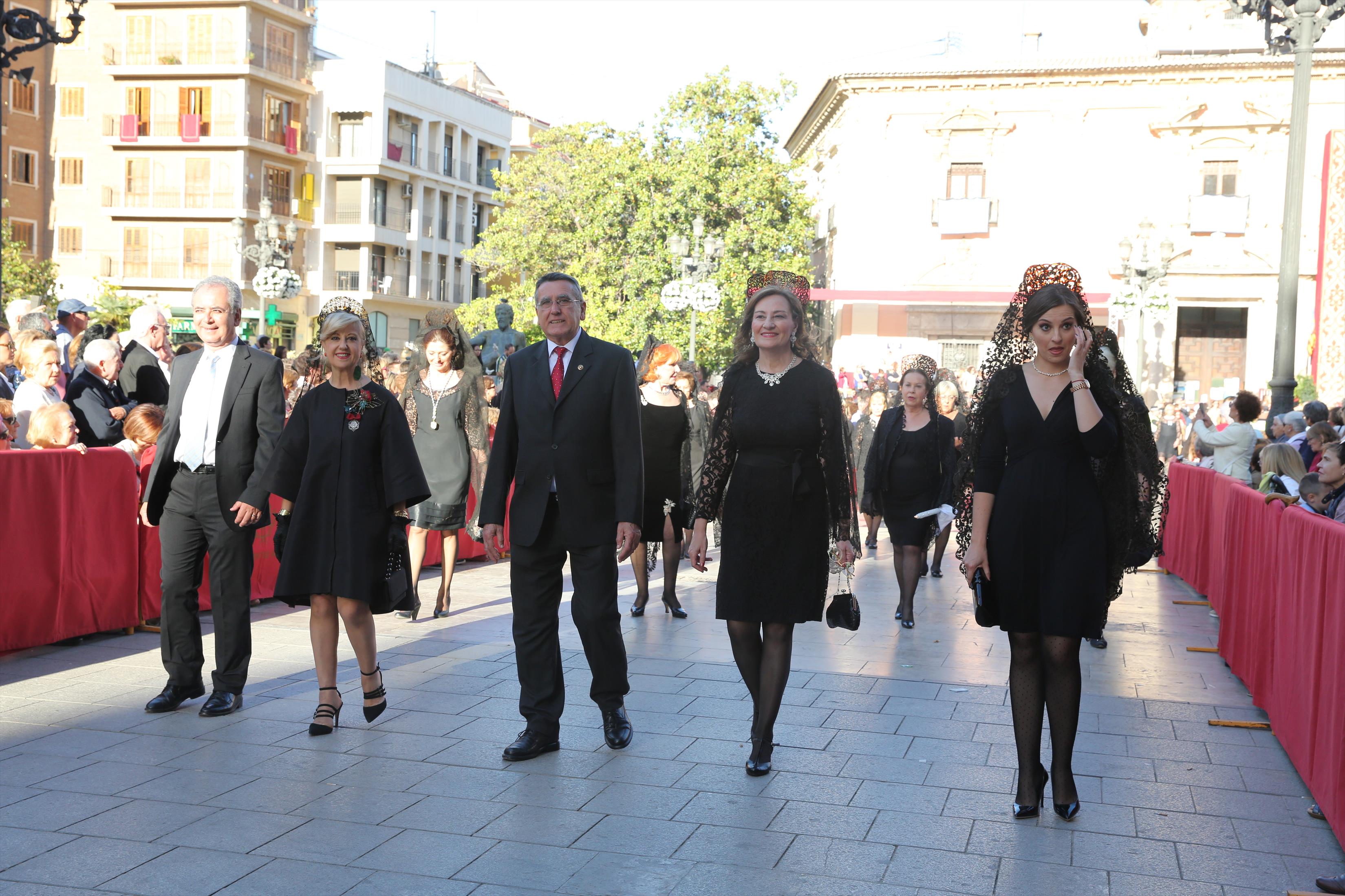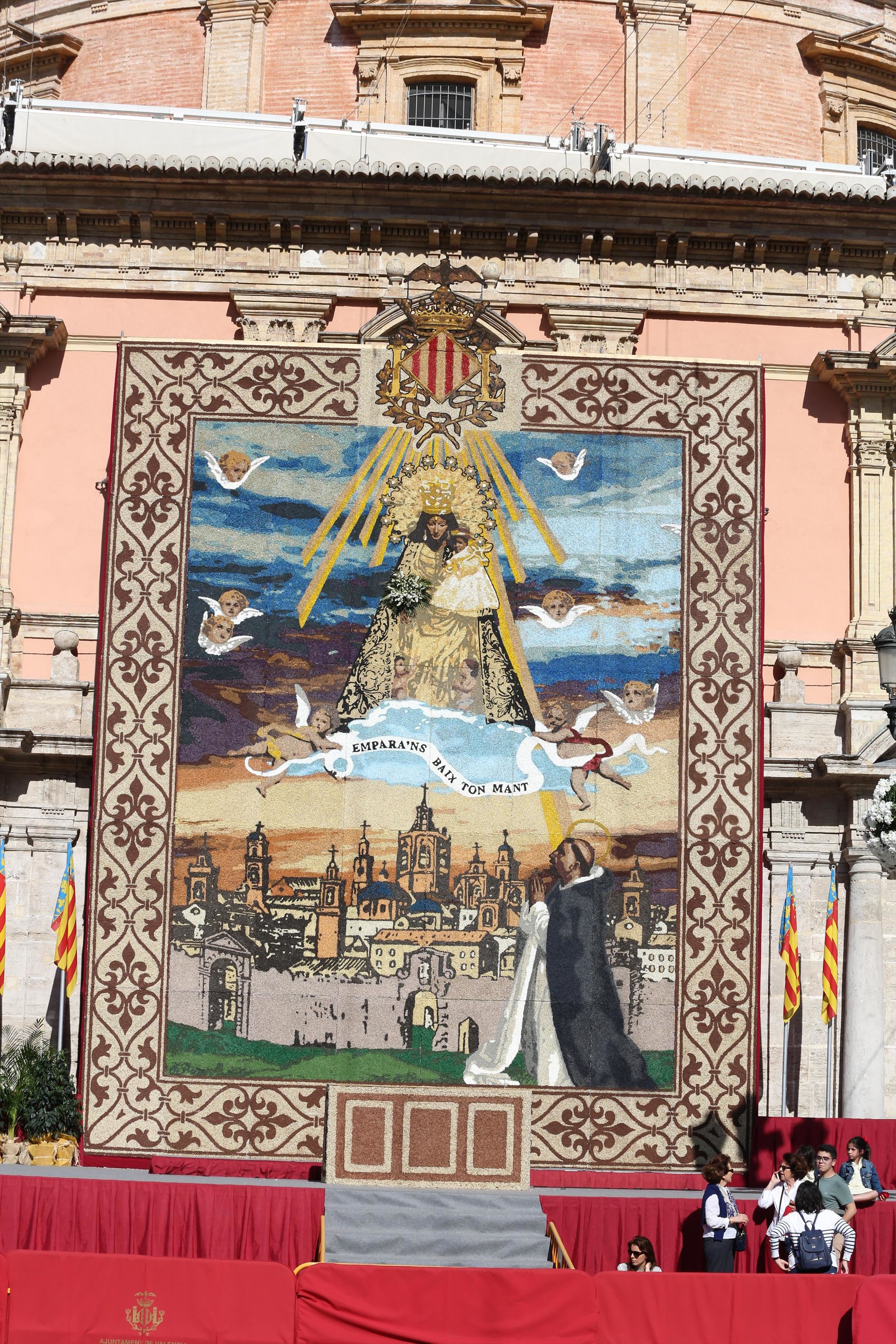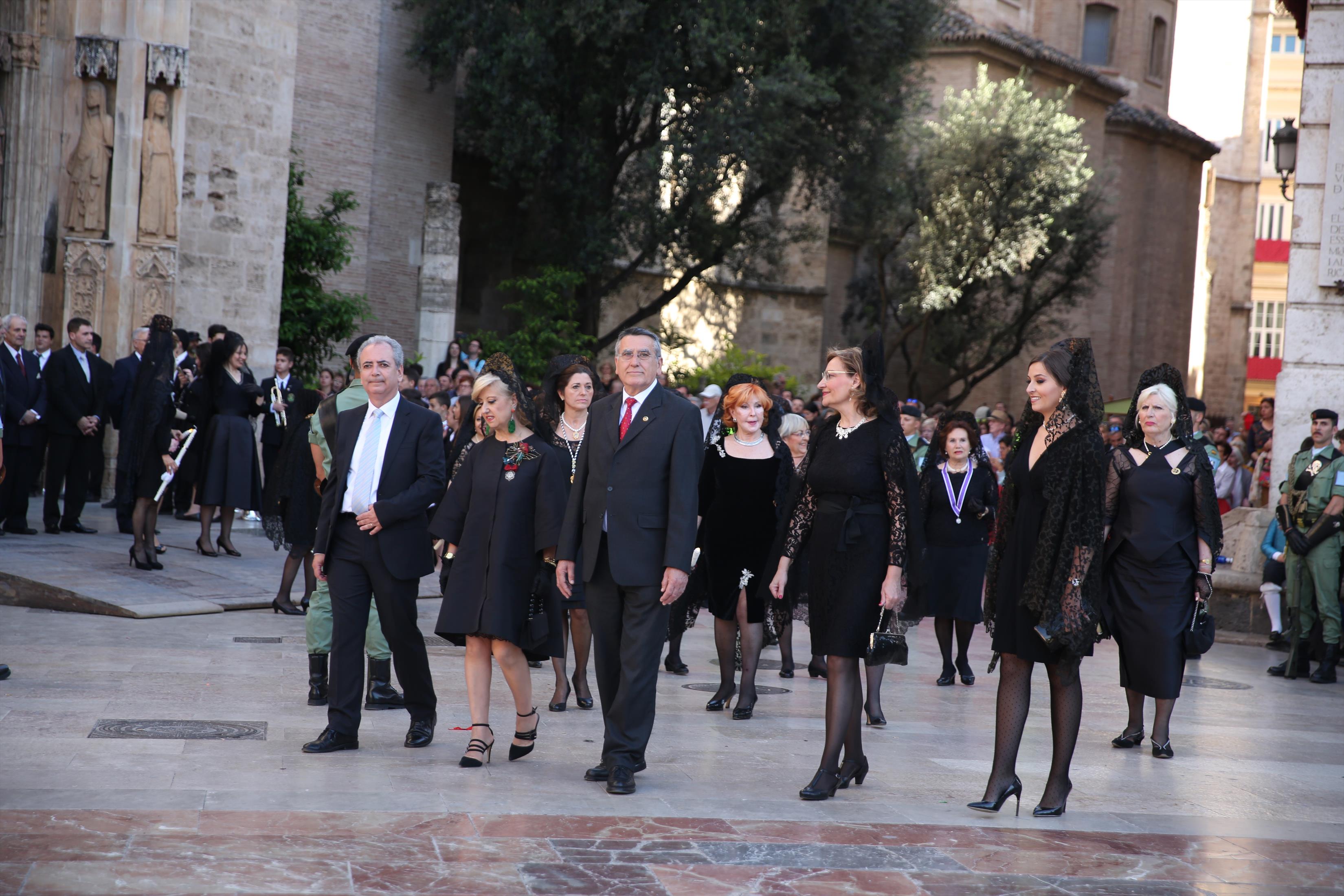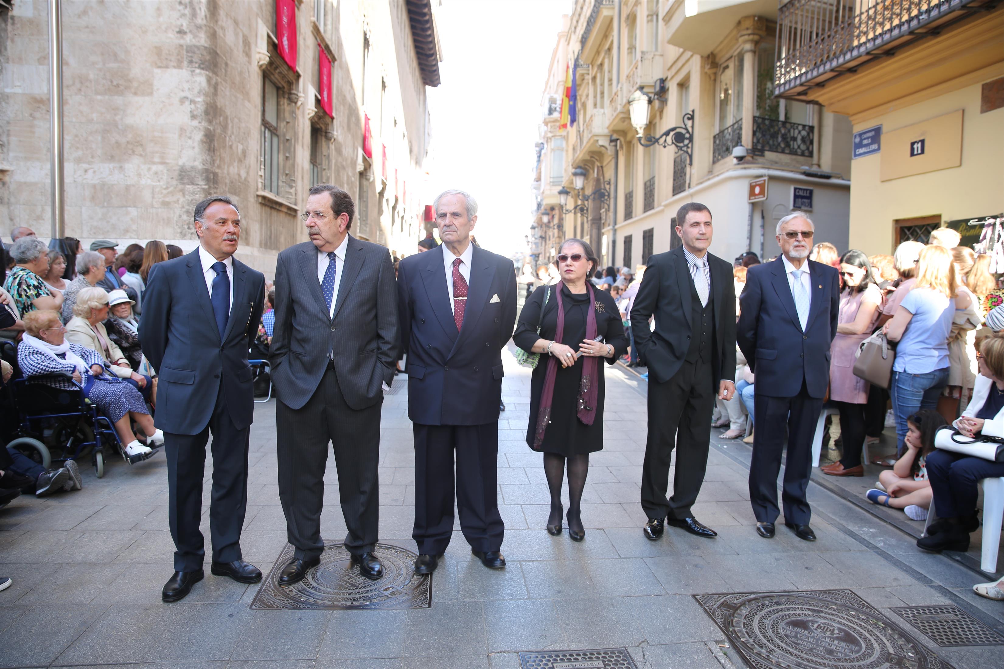 Minutos antes el cardenal arzobispo de Valencia, Antonio Cañizares, presidió la tradicional Missa d'Infants en el altar instalado en la plaza de la Virgen y, este año, ante la Cruz de Lampedusa, bendecida por el Papa y elaborada con madera de pateras utilizadas por inmigrantes y refugiados. Durante la Missa cantó la Coral Juan Bautista Comes, con la participación de la Orquesta del Conservatorio José Iturbi de Valencia y la Escolanía de la Virgen de los Desamparados.