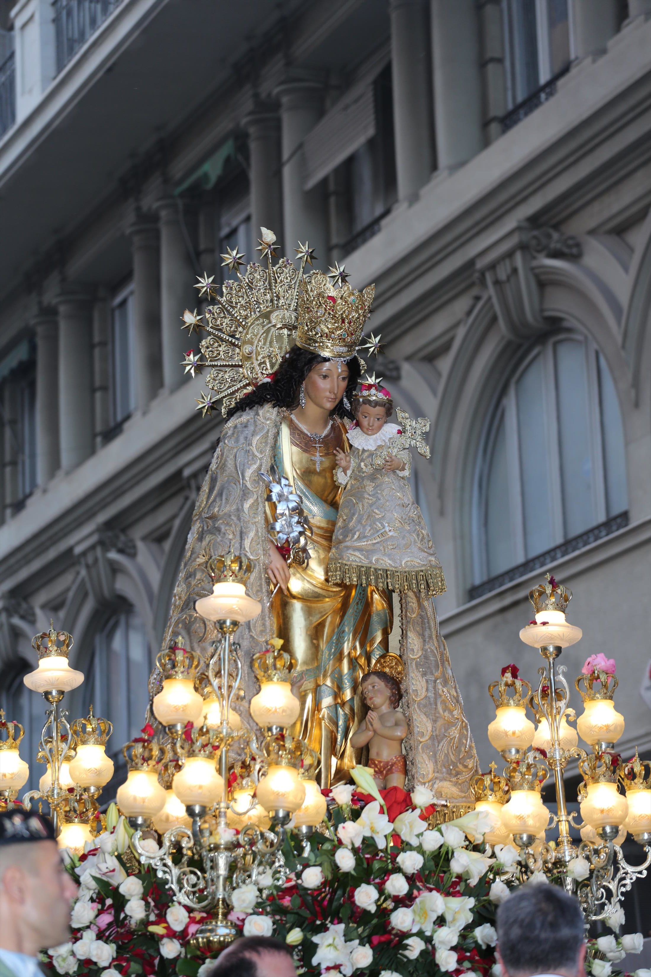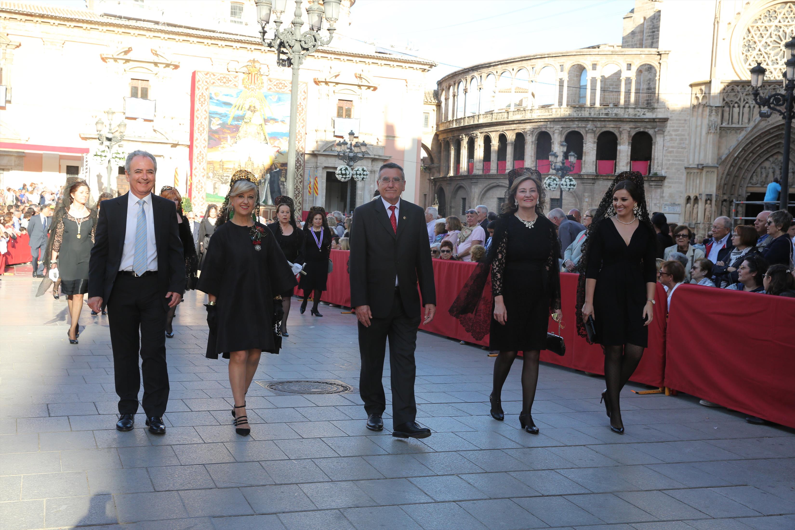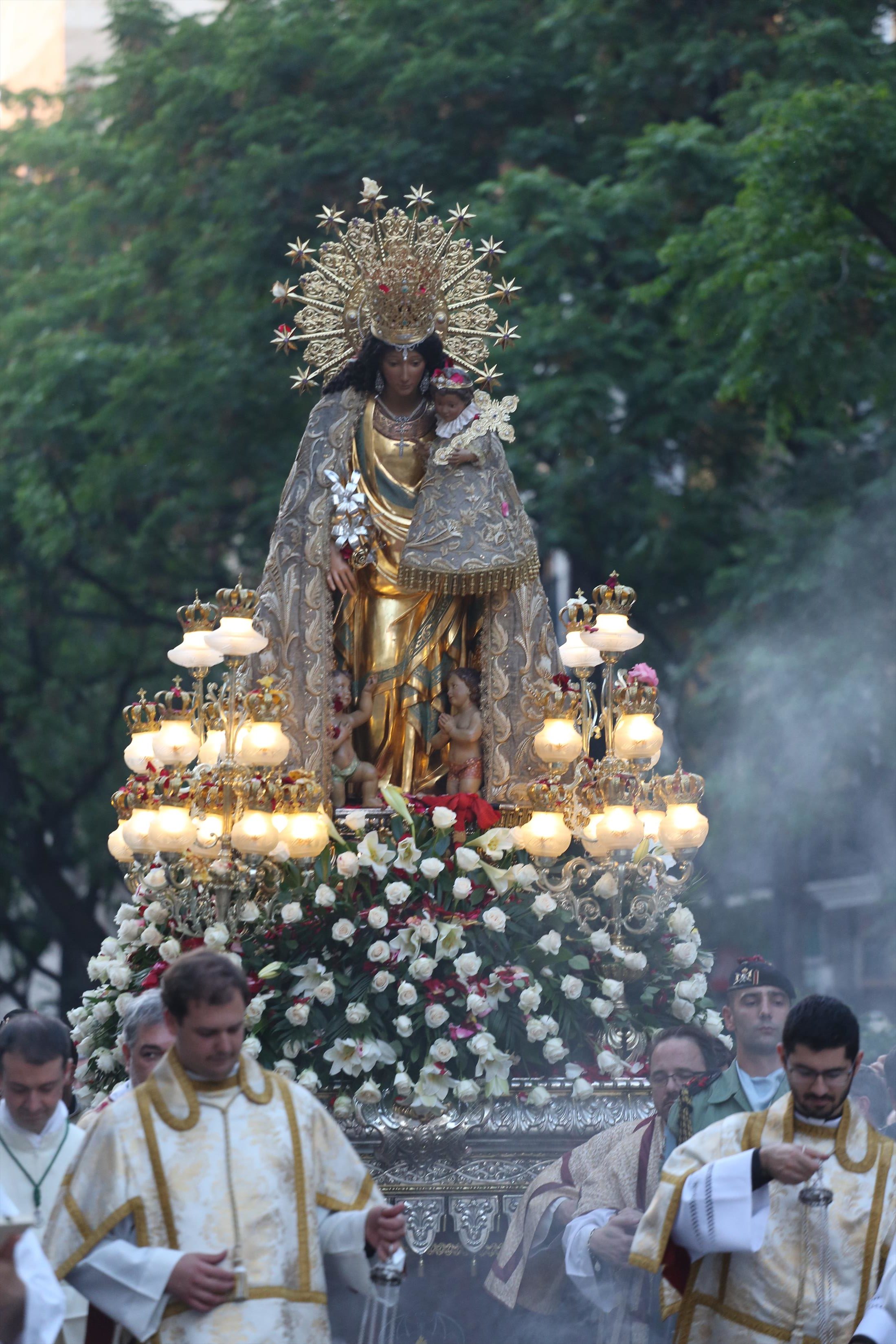 Por la la tarde, a las 18.30 horas comenzó la procesión de la Virgen desde la Catedral a la Basílica. La imagen apareció en la puerta de los apóstoles casi dos horas después de que empezaran a salir las primeras asociaciones cívicas y confesionales venidas desde toda la Comunitat Valenciana y que la acompañaron por centro histórico de Valencia. Millones de pétalos de rosa caían desde el cielo y con un gran fervor se despidió a la Patrona hasta el próximo año.