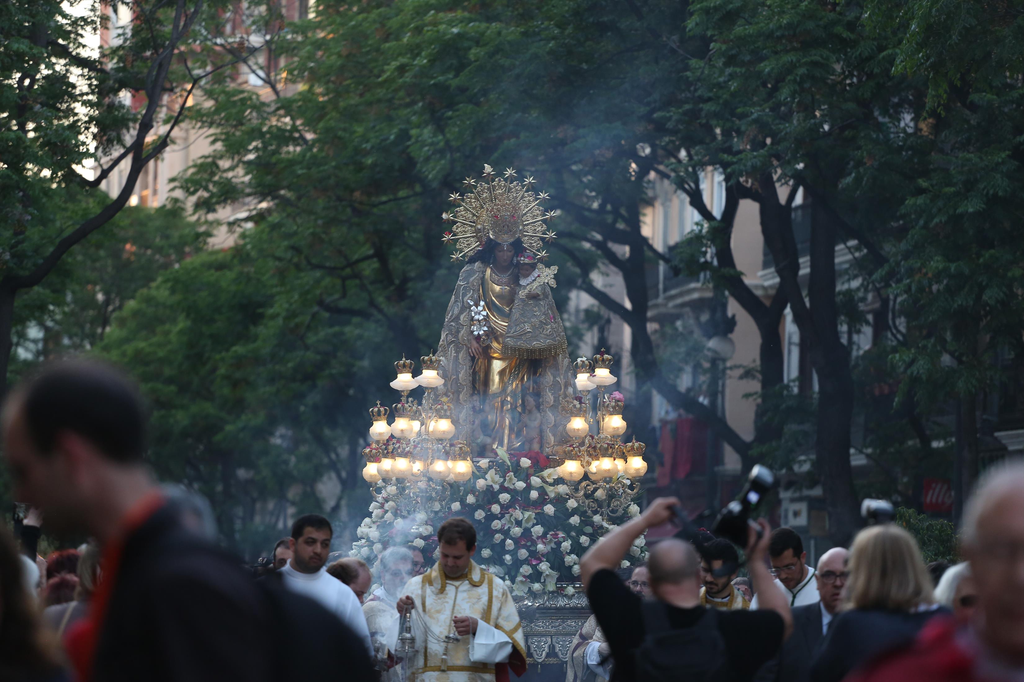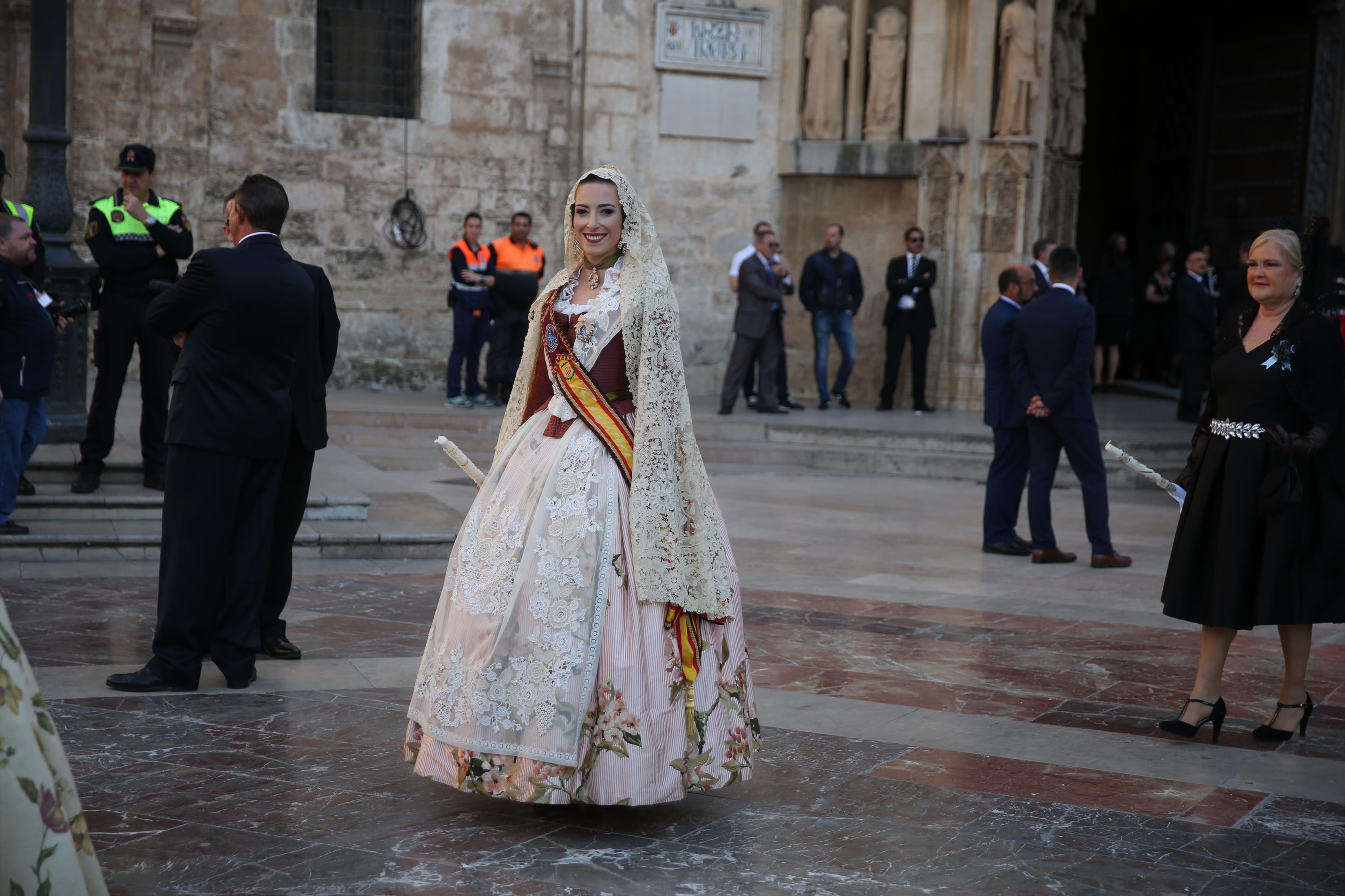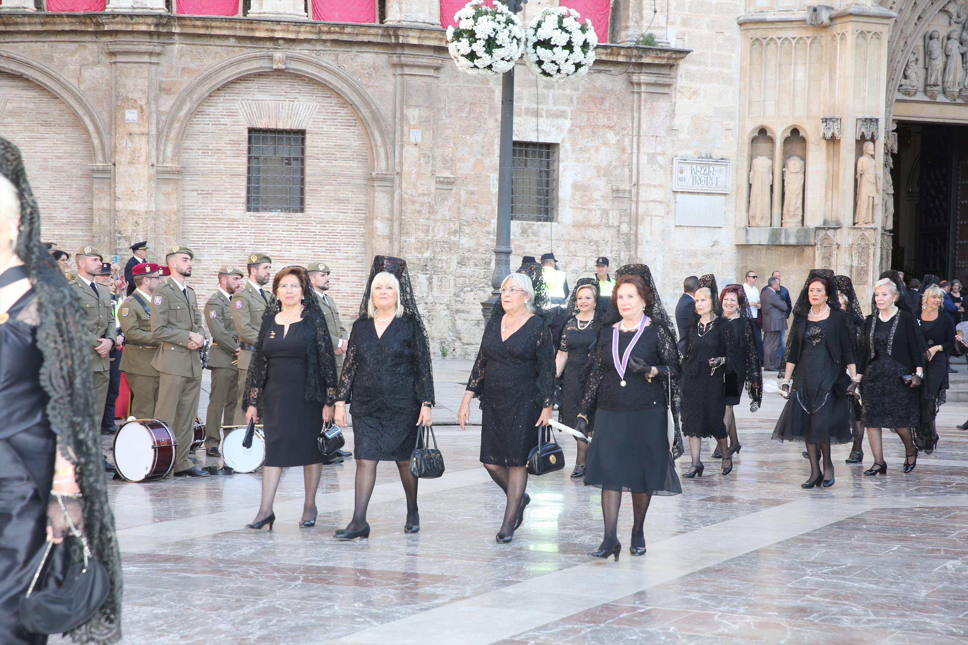 Por la la tarde, a las 18.30 horas comenzó la procesión de la Virgen desde la Catedral a la Basílica. La imagen apareció en la puerta de los apóstoles casi dos horas después de que empezaran a salir las primeras asociaciones cívicas y confesionales venidas desde toda la Comunitat Valenciana y que la acompañaron por centro histórico de Valencia. Millones de pétalos de rosa caían desde el cielo y con un gran fervor se despidió a la Patrona hasta el próximo año.