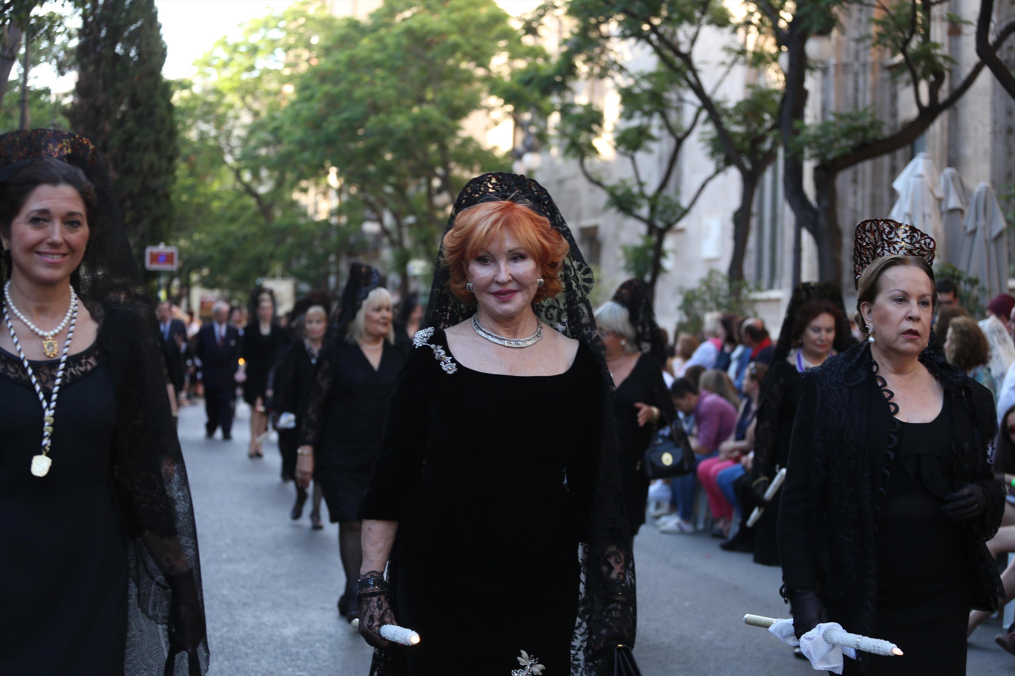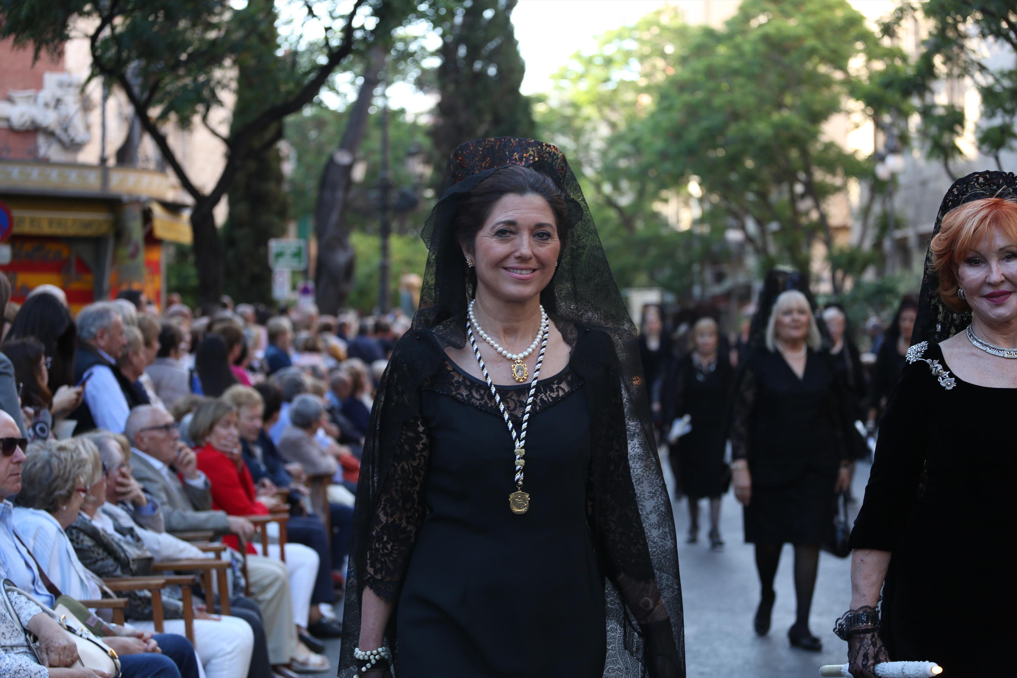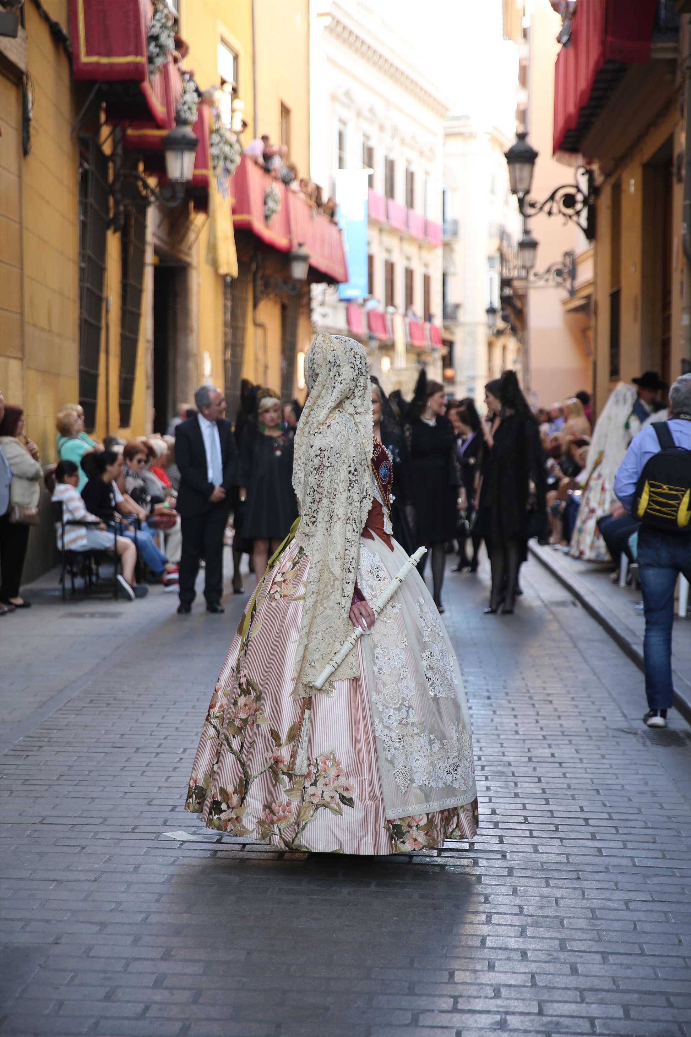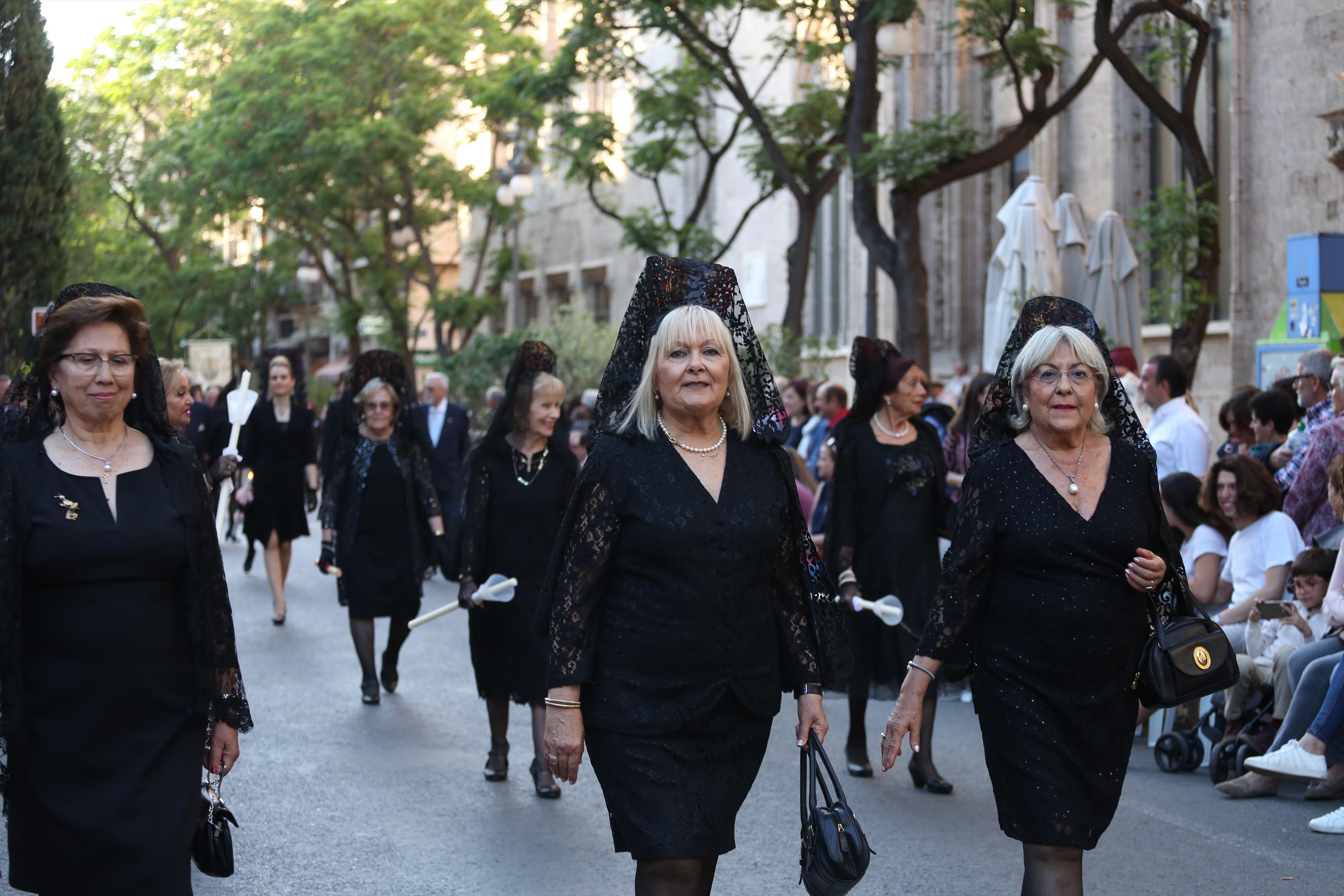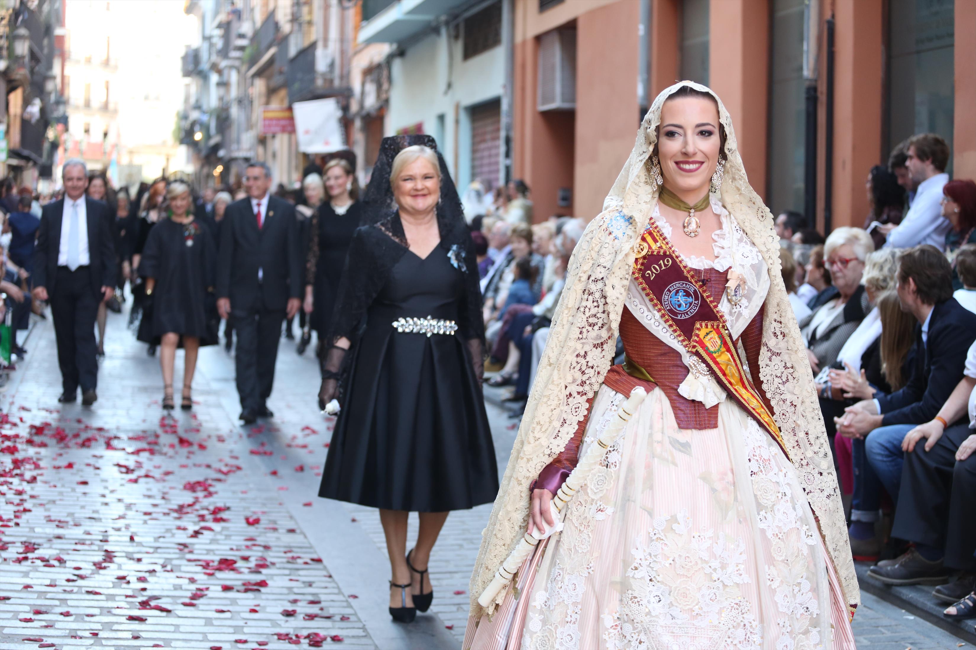 El Ateneo Mercantil de Valencia desfiló por tercera vez en la Procesión a la Virgen de los Desamaparos y lo hizo con la presidenta Carmen de Rosa, la Junta Directiva y la Reina 2019 y su Corte de Honor para darle un sentido homenaje a la Patrona de ciudad. Un día en el que de nuevo miles de valencianos quisieron estar cerca de la Virgen y en su tradicional traslado desde la Basílica a la Catedral de Valencia. Como cada segundo domingo de mayo, la imagen peregrina de la Virgen salió a las 10.30 horas de la Basílica entre miles de personas que querían tocar su manto.