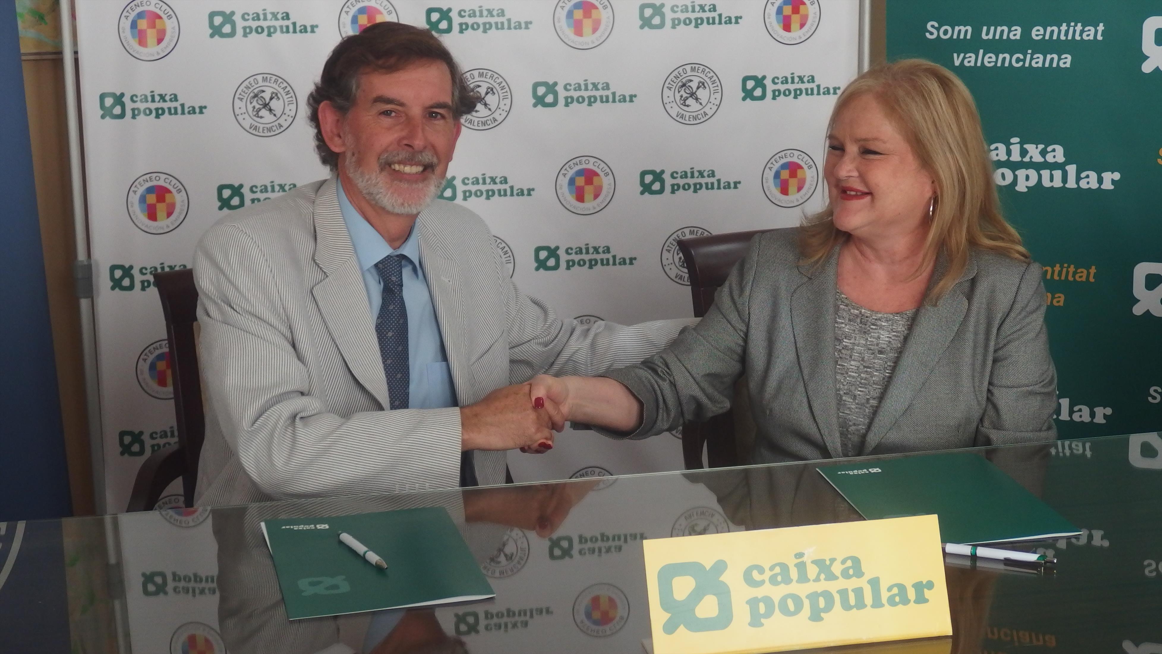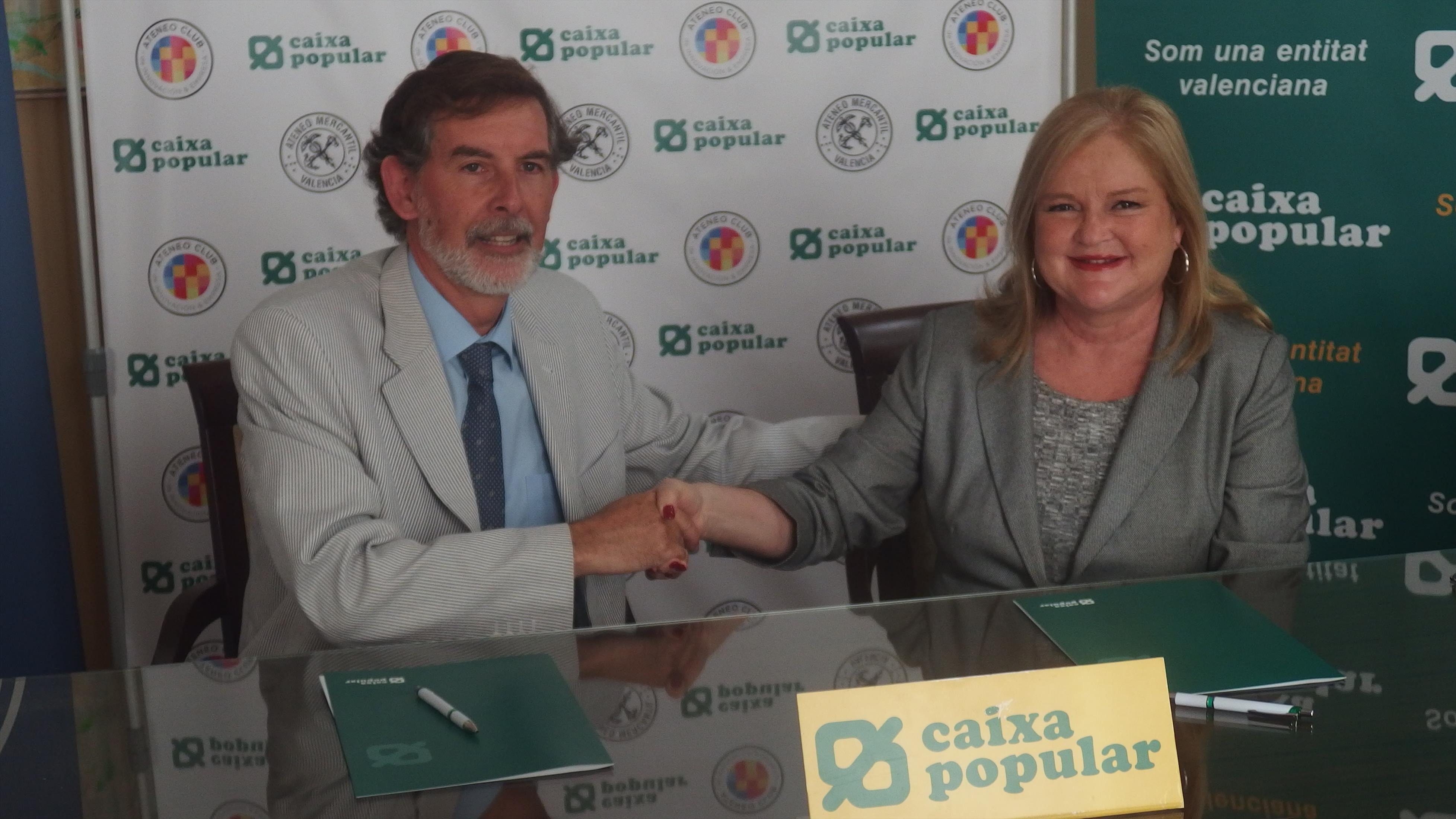 La presidenta del Ateneo Mercantil de Valencia, Carmen de Rosa, y el director general de Caixa Popular, Rosendo Ortí, han firmado un convenio para colaborar y patrocinar las actividades que organiza el Ateneo Club de Innovación y Empresa. Como ha indicado la presidenta del Ateneo, Carme de Rosa, “nuestra institución y Caixa Popular han decidido colaborar porque coincidimos en el objetivo de fomentar las actividades que mejoren la gestión de las empresas valencianas y hemos decidido coordinar nuestros esfuerzos”.