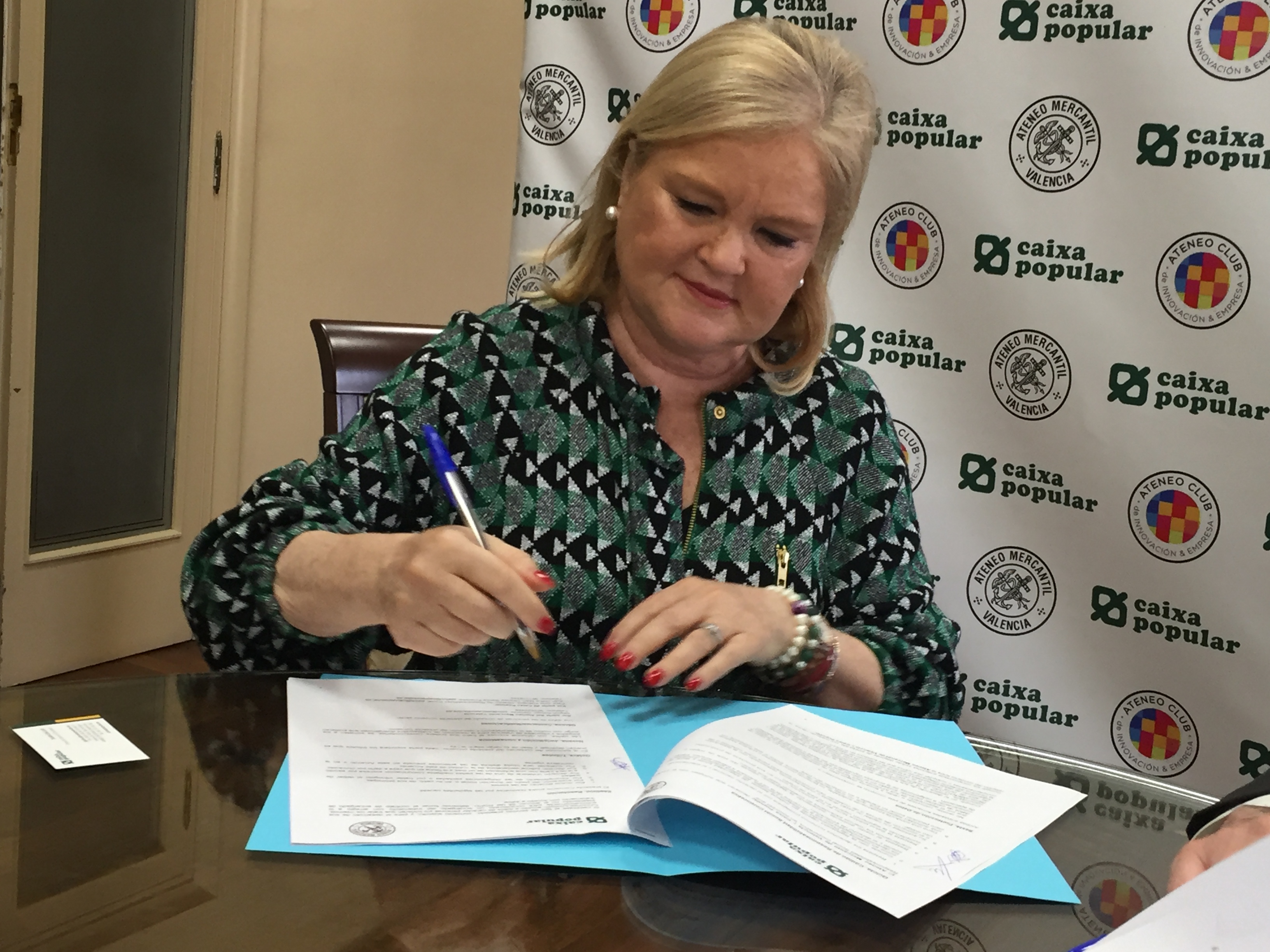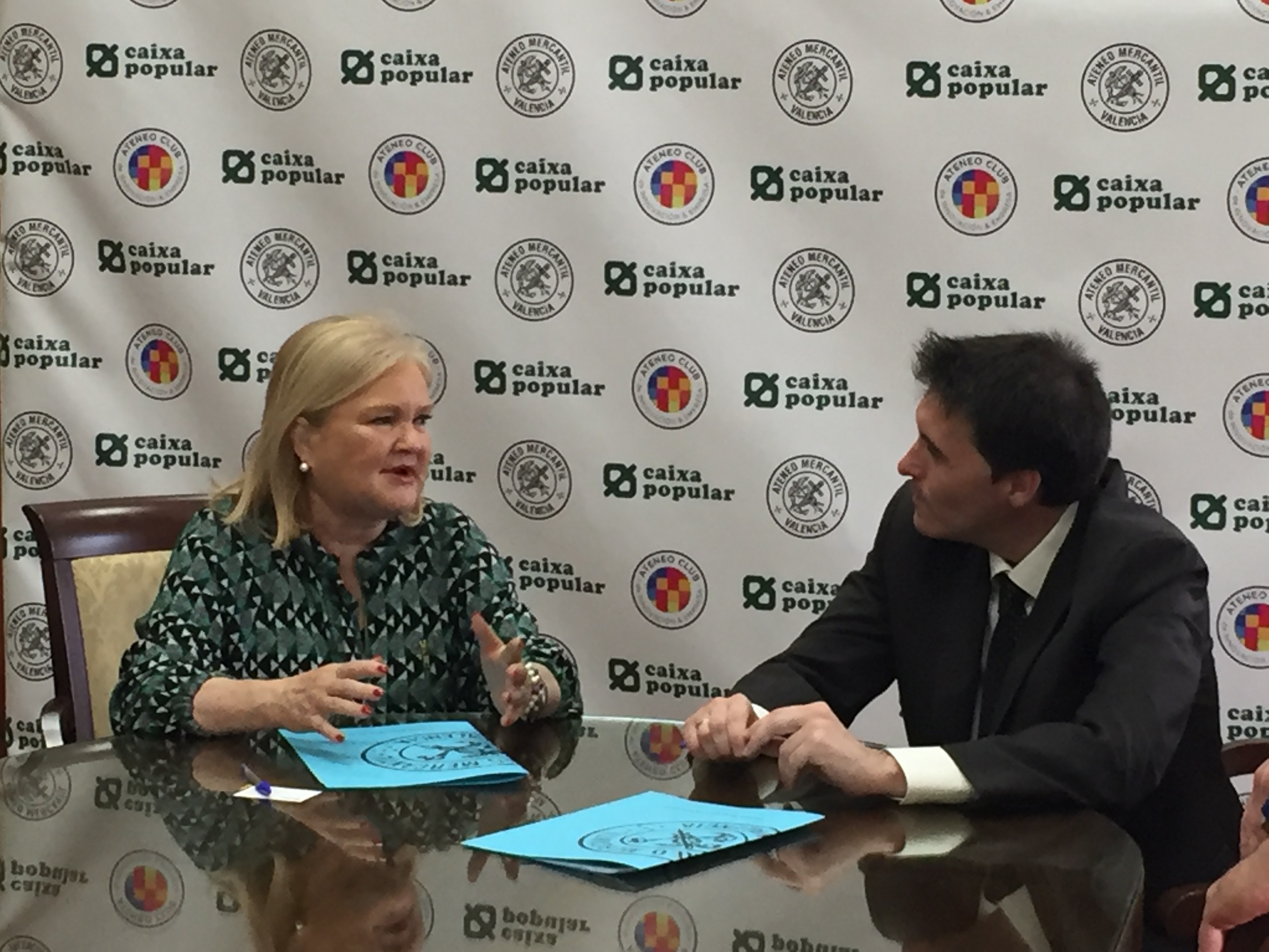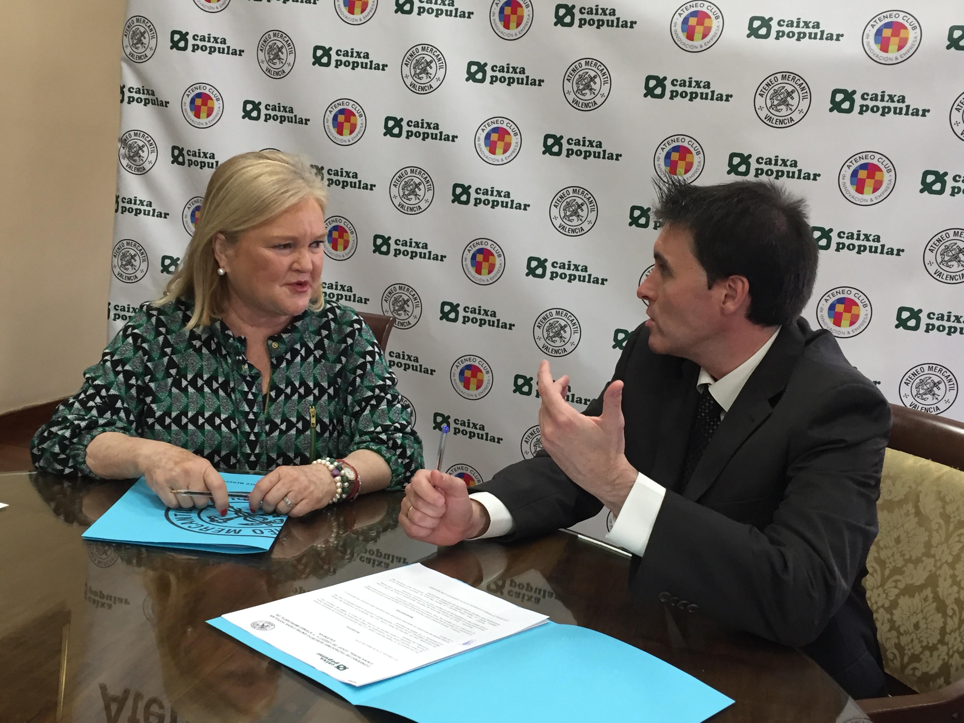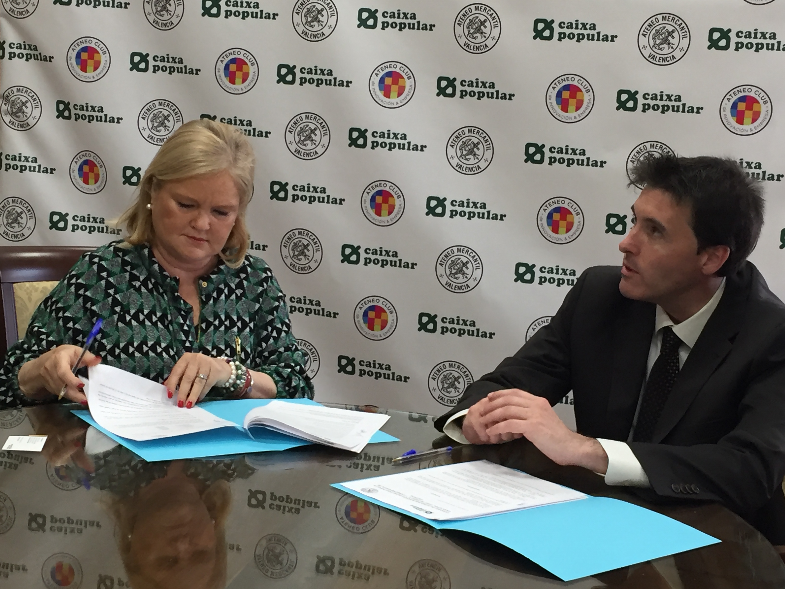 Un convenio que se firmó en la Sala de Juntas del Ateneo Mercantil entre la presidenta de nuestra entidad, Carmen de Rosa Torner, y el director de Banca Empresa de Caixa Popular, Juan Gallur, en representación de Isabel Montero López, directora de asesoría jurídica de Caixa Popular. Con este acuerdo la entidad bancaria busca por una parte fomentar y mejorar las estructuras empresariales dentro de la Comunitat Valenciana, con el objetivo de crear riqueza en la sociedad valenciana, pero junto al Ateneo Mercantil lo que ambas entidades tienen como objetivo colaborar y coordinar esfuerzos para fomentar las actividades que mejoren la gestión de las empresas valencianas.