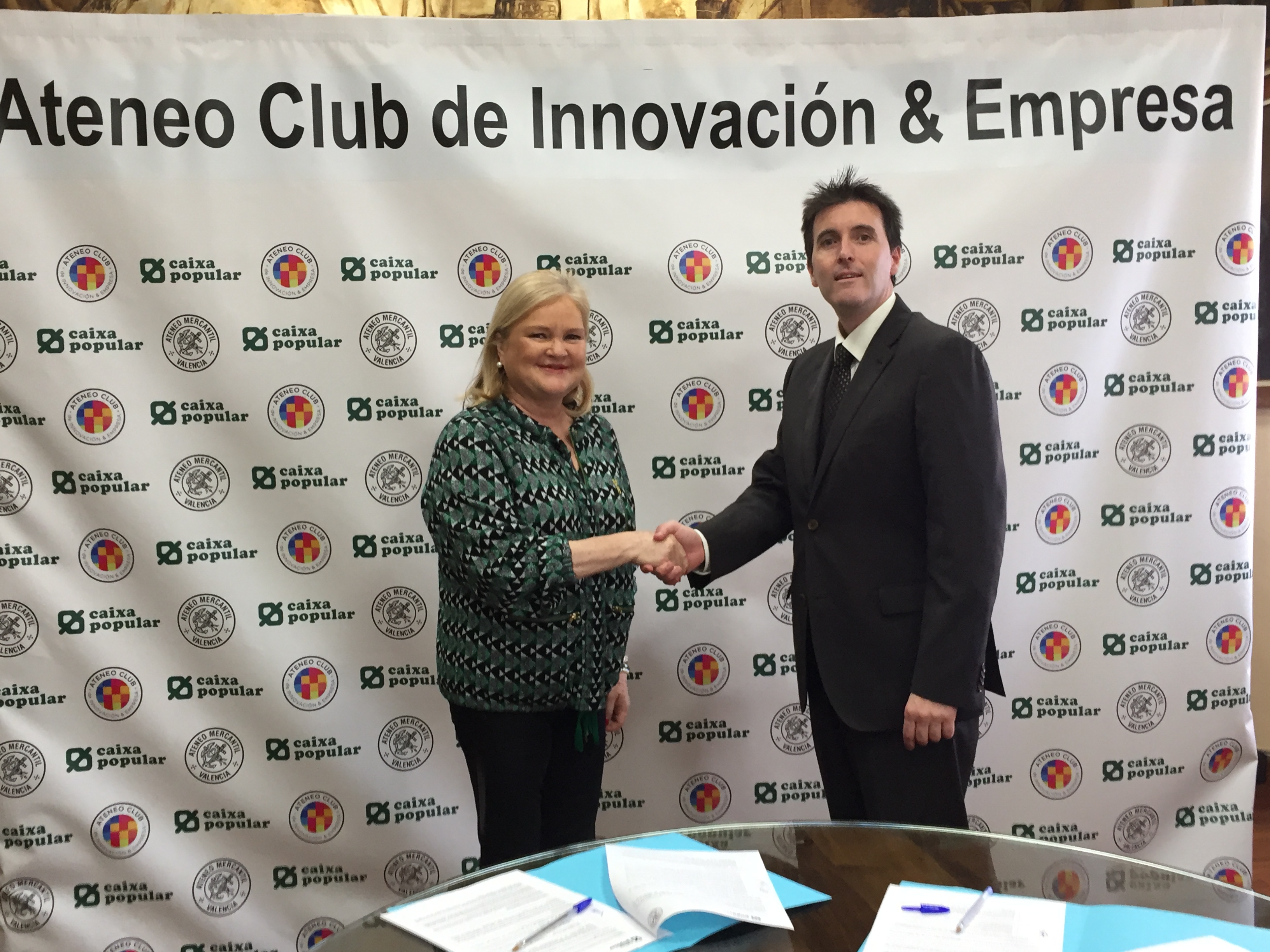 De nuevo el Ateneo Mercantil de Valencia y Caixa Popular se dan la mano para recorrer el camino del emprendimiento y de la innovación juntos, como han venido haciendo en los dos últimos años. Este jueves 16 de mayo renovaron su convenio de colaboración con el principal objetivo de favorecer la mejora de la empresa valenciana a través de las actividades y servicios que presta el Ateneo Mercantil de Valencia a sus asociados y al mundo empresarial en general, especialemente a través del Ateneo Club de Innovación y Empresa.