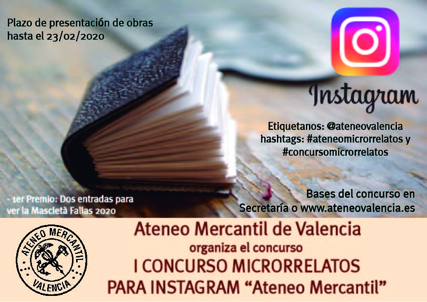 El Ateneo Mercantil de Valencia ha convocado su primer Concurso de Microrrelatos a través de Instagram, con lo que da el salto de su oferta de certámenes a las redes sociales, que hasta el momento no había utilizado en ninguno de los premios literarios que organiza a lo largo del año.
