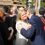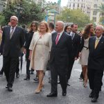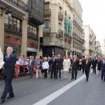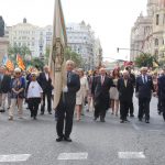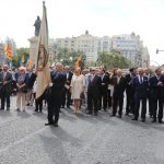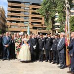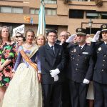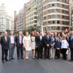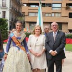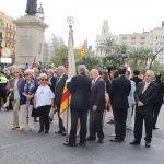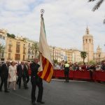 El abanderado de este año fue el portavoz de Ciudadanos, Fernando Giner, que agarró el mastil de la Real Senyera que salió del Archivo Histórico Municipal. No faltó a la cita la fallera mayor de Valencia, Alicia Moreno, y su corte de honor. Se emocionó en la víspera del final de su reinado, dado que un día después, el 10 de octubre se conoció el nombre de su sucesora.
