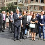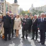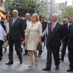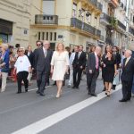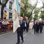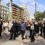 La marcha arrancó con canciones de Maximilià Thous i Llorens y de Miquel Asensi i Martín. El abanderado hizo varias paradas a lo largo del recorrido, pero a las 12:48 horas, la enseña llegó a los jardines del Panterre para la ofrenda a los pies de la estatua de Jaume I. Nuestra presidenta, Carmen de Rosa, acompañada del secretario general del Ateneo Mercantil, D. Horacio Jiménez, tuvo el privilegio de ser la primera en los reconocimientos. La Senyera del Ateneo Mercantil acompañó a la presidenta y junto a ella tambiñen se dieron cita los socios de la institución que quiseron estar en el acto.