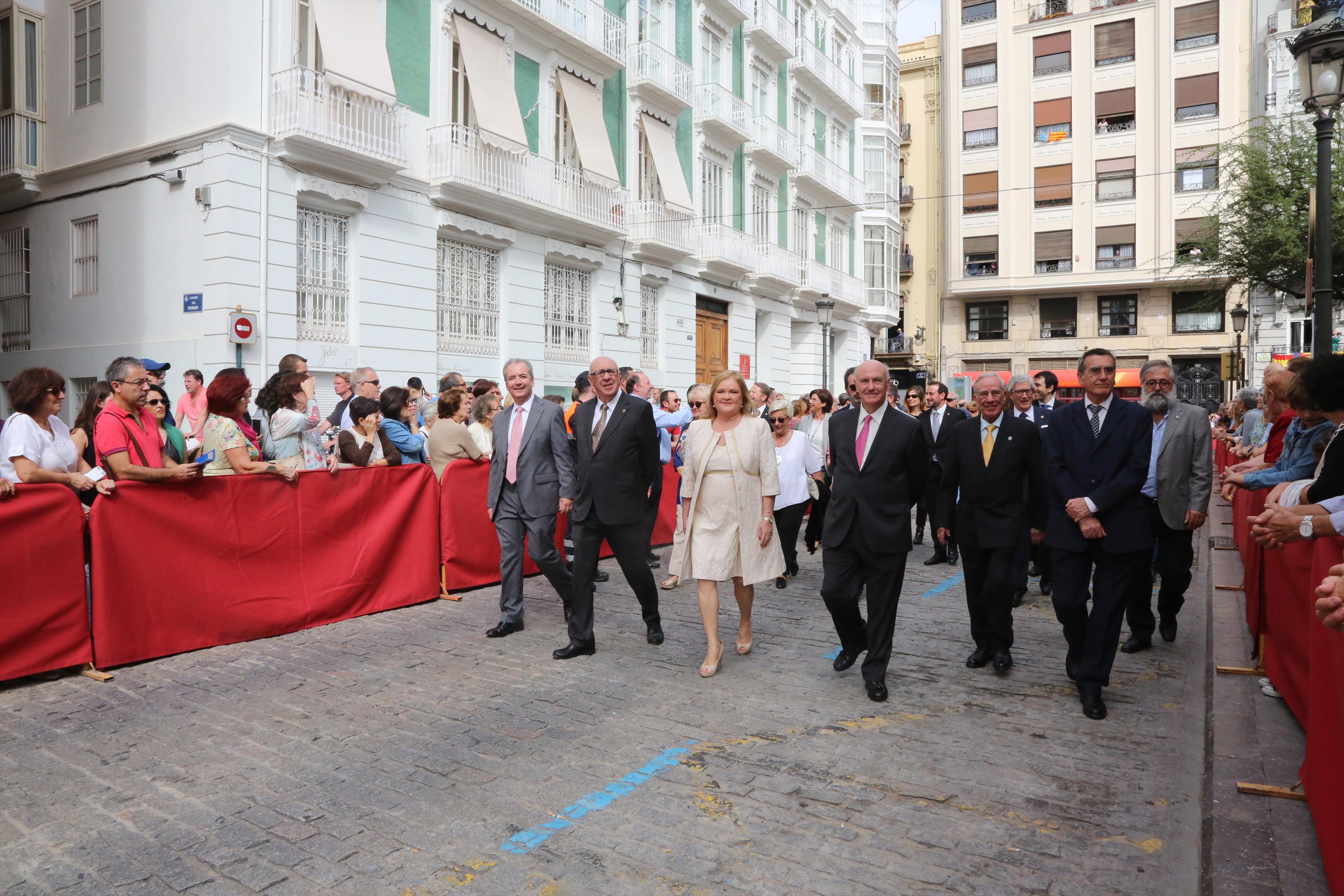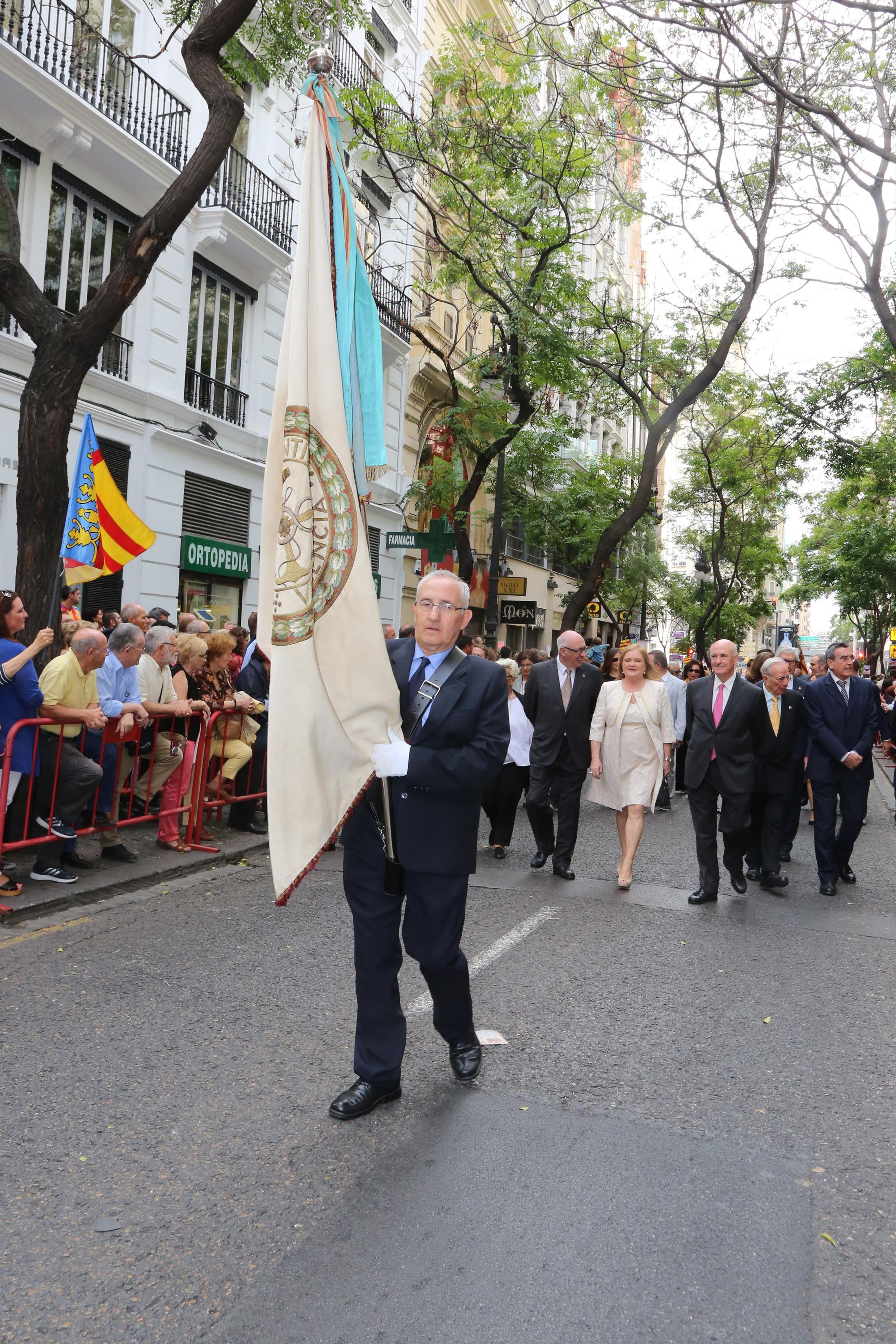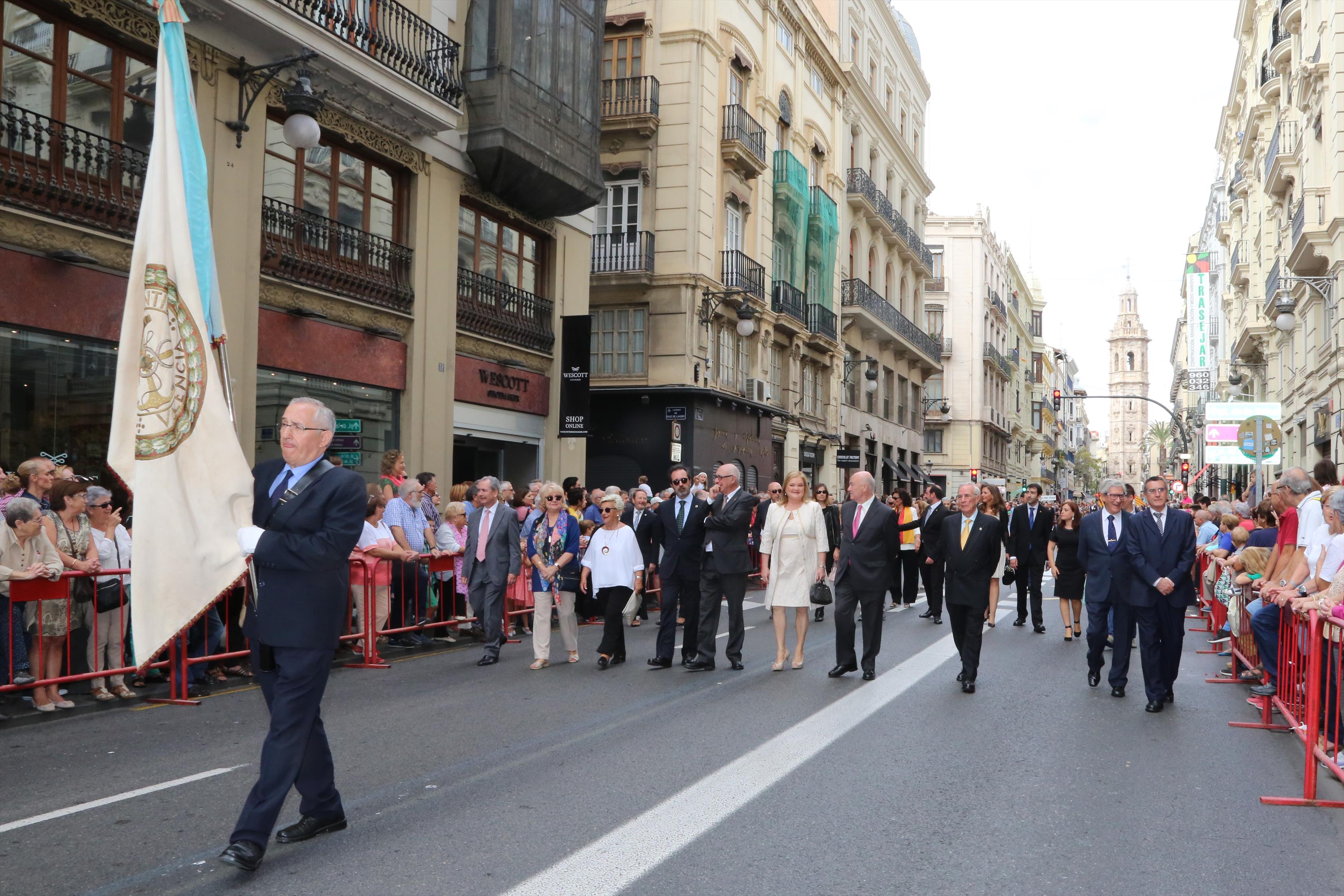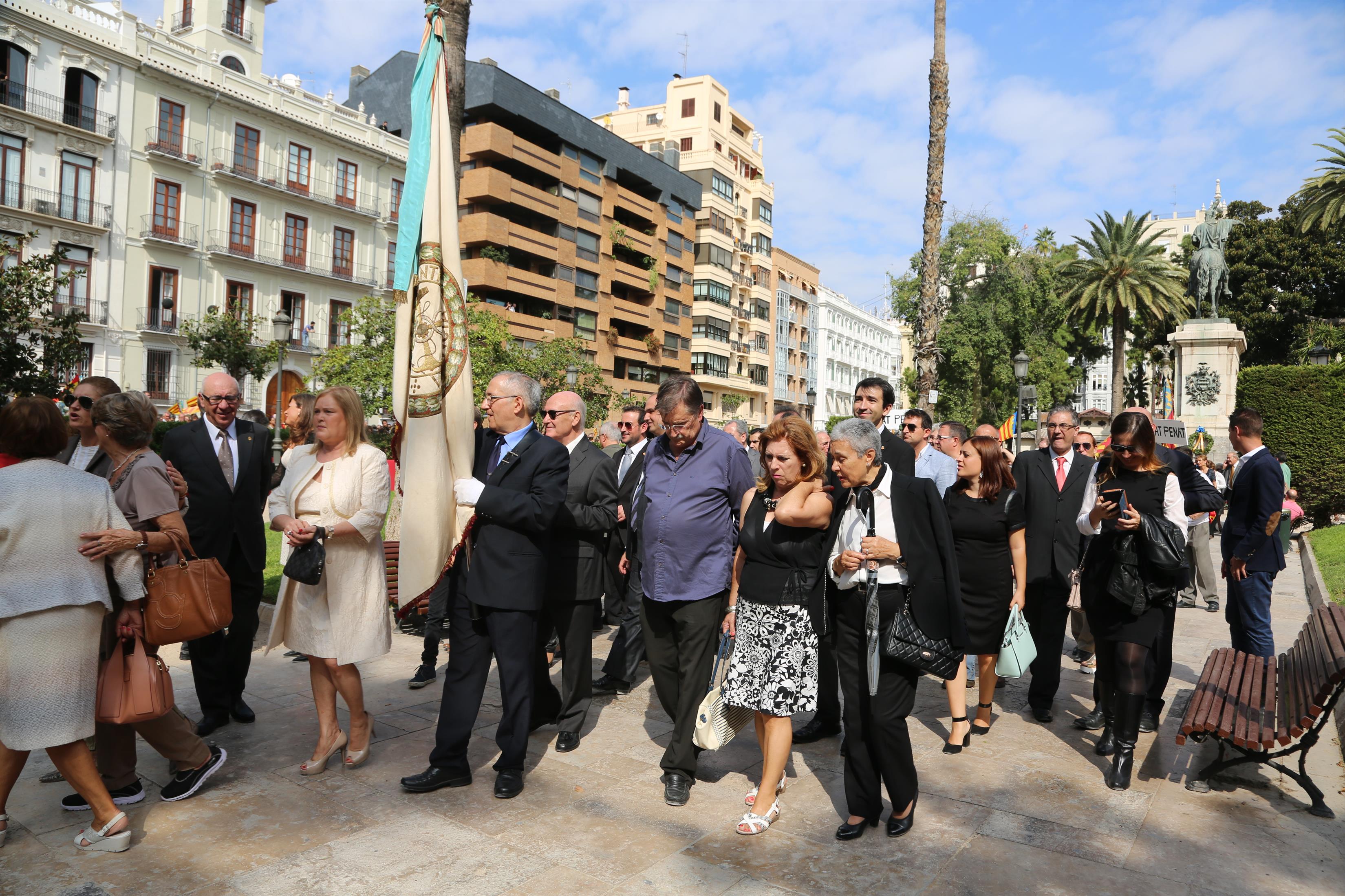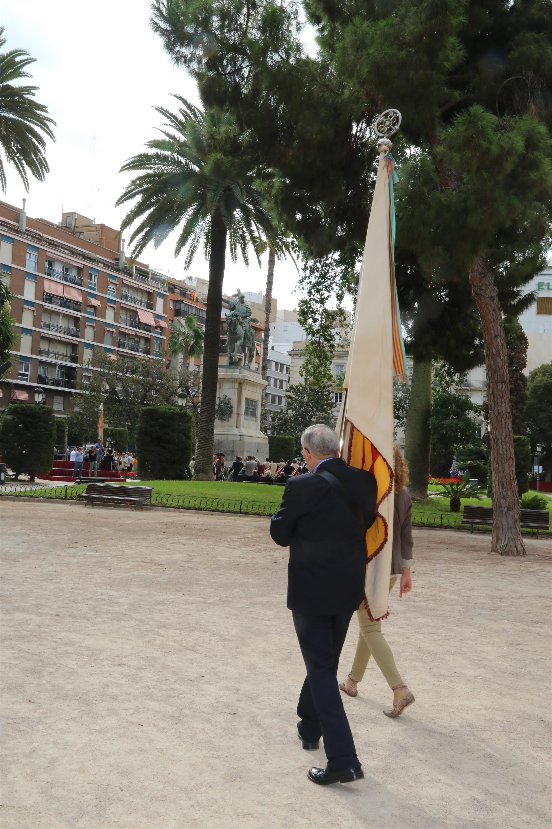 Mientras que a las 13:23 horas el estandarte fue subido de nuevo al Ayuntamiento para ser custodiado en el Archivo Histórico Municipal. La procesión cívica del 9 d'Octubre es una importante cita para las familias. La enseña recibió los aplausos más solemnes.