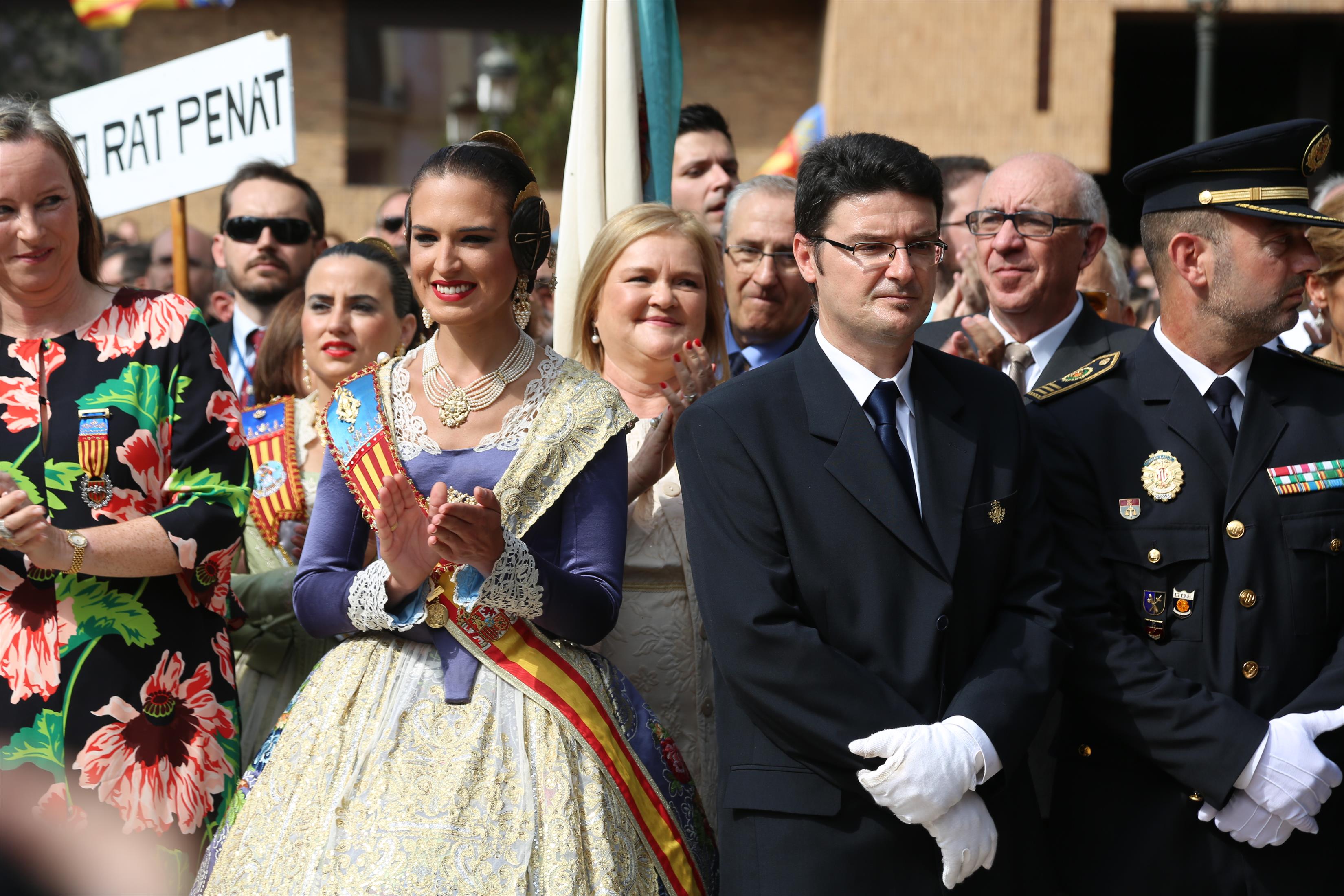 Seguida a Carmen de Rosa, le llegó el turno a los miembros de Lo Rat Penat, con Enric Esteve a la cabeza. Los miembros de la Corporación finalizaron el acto con el Himno Regional y el de España. 20 minutos después la Senyera salió hacia la calle Pintor Sorolla.