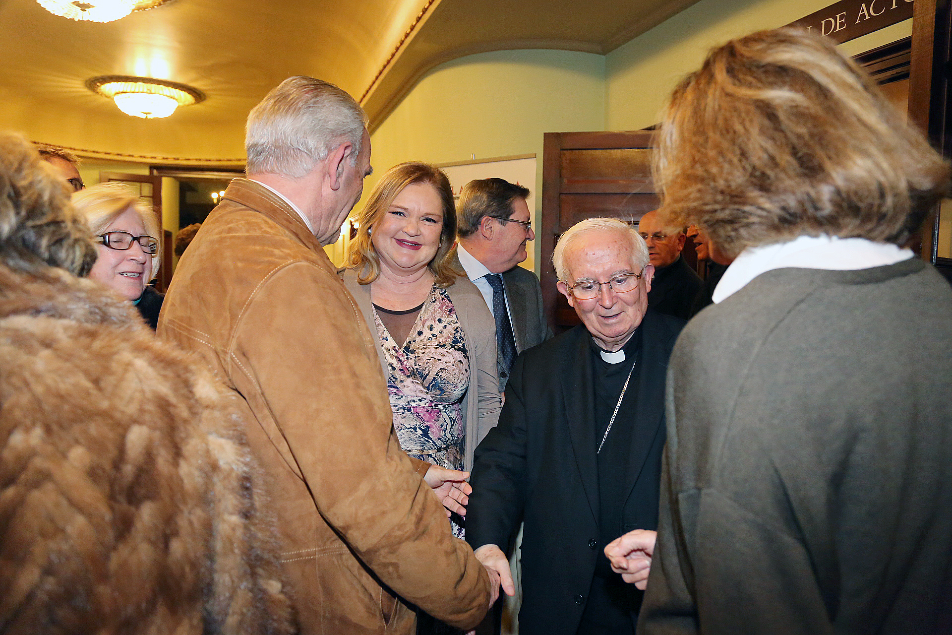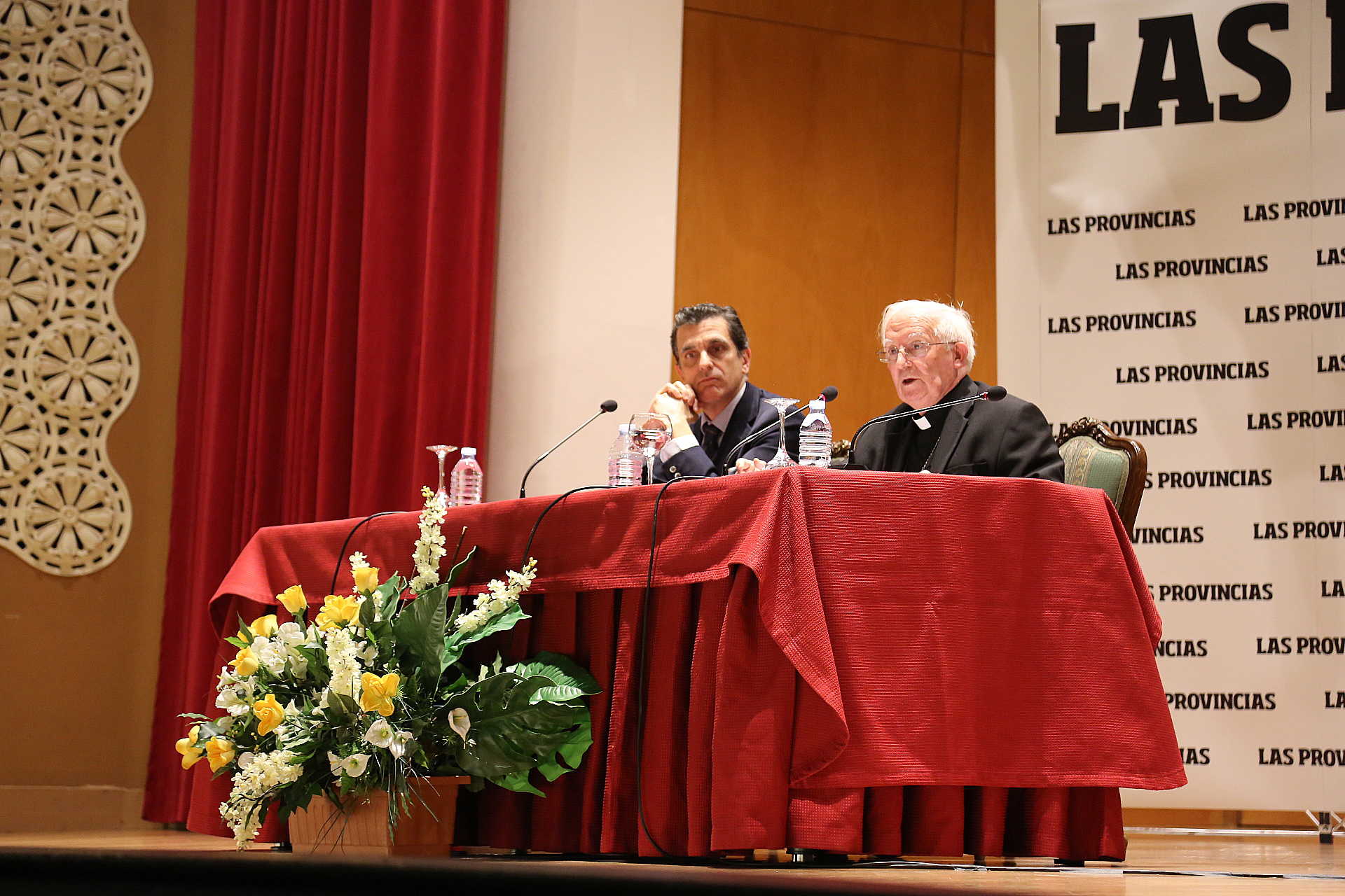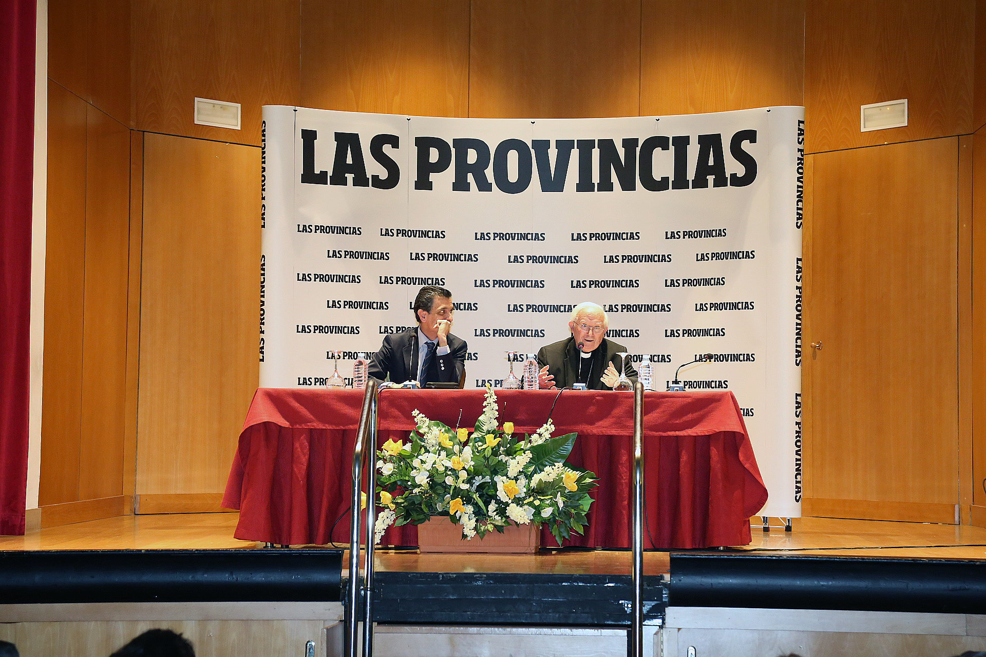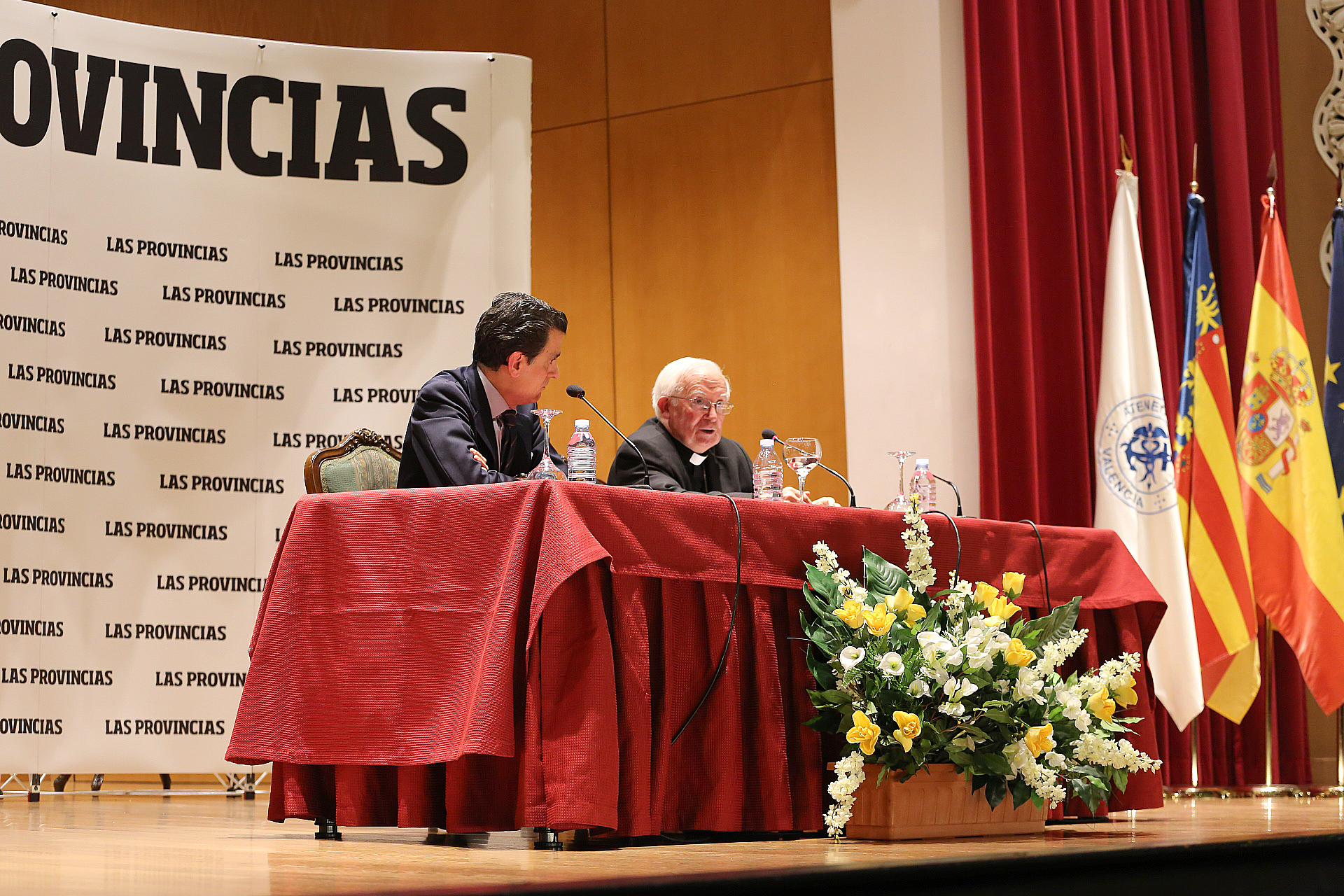 Más de 300 personas se dieron cita en el Salón de Actos del Ateneo Mercantil de Valencia para escuchar la conferencia que impartió el cardenal Antonio Cañizares dentro del marco informativo del Aula LAS PROVINCIAS. La presidenta del Ateneo Mercantil de Valencia, Carmen de Rosa, fue una perfecta anfitriona del asistentes en el acto, entre los que destacaban Julián Quirós, director de Las Provincias; el rector de la Universidad Católica, Ignacio Sánchez Cámara, el director de Cáritas Diocesana, Ignacio Grande y el vicario general del Arzobispado de Valencia, Vicente Fontestad.