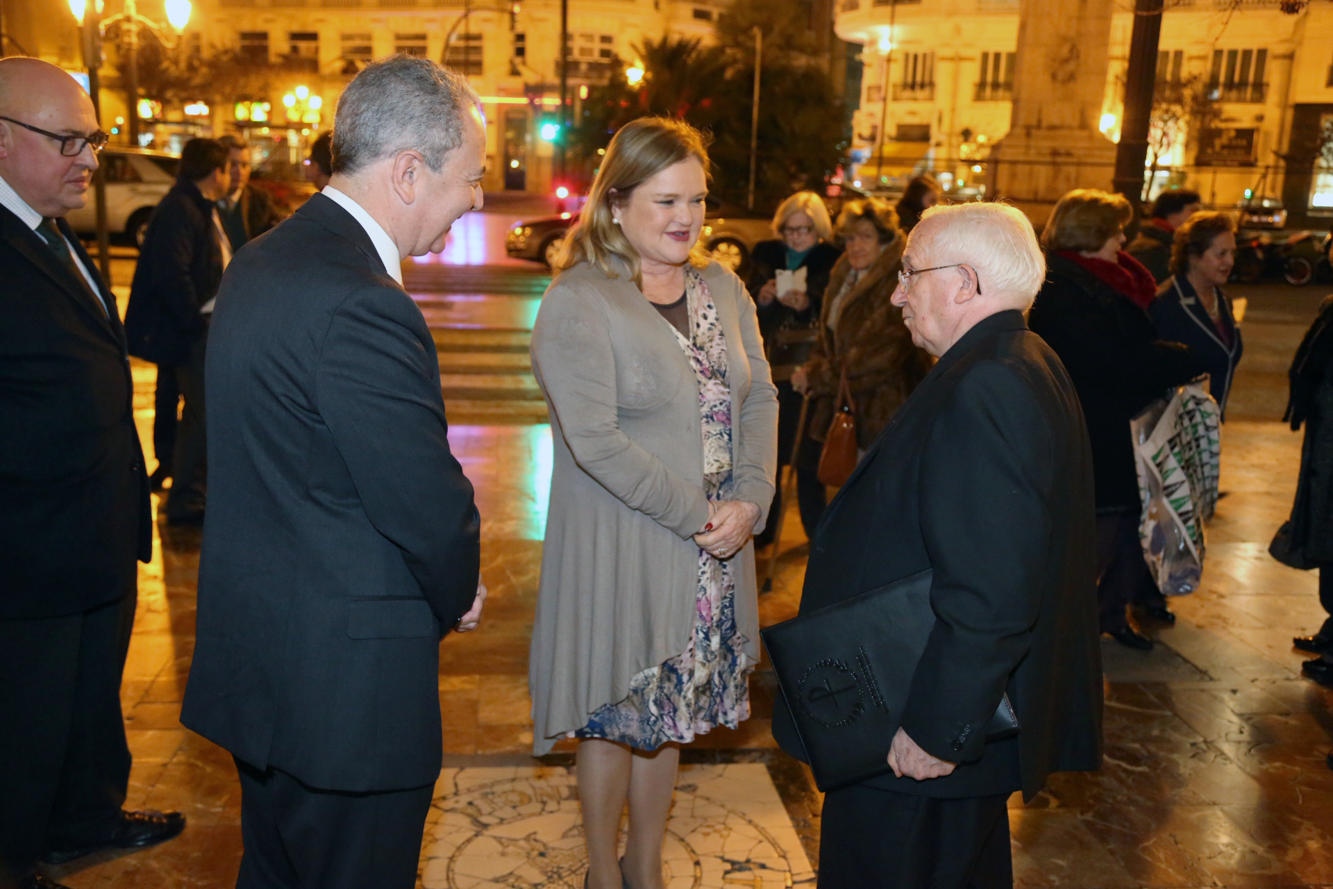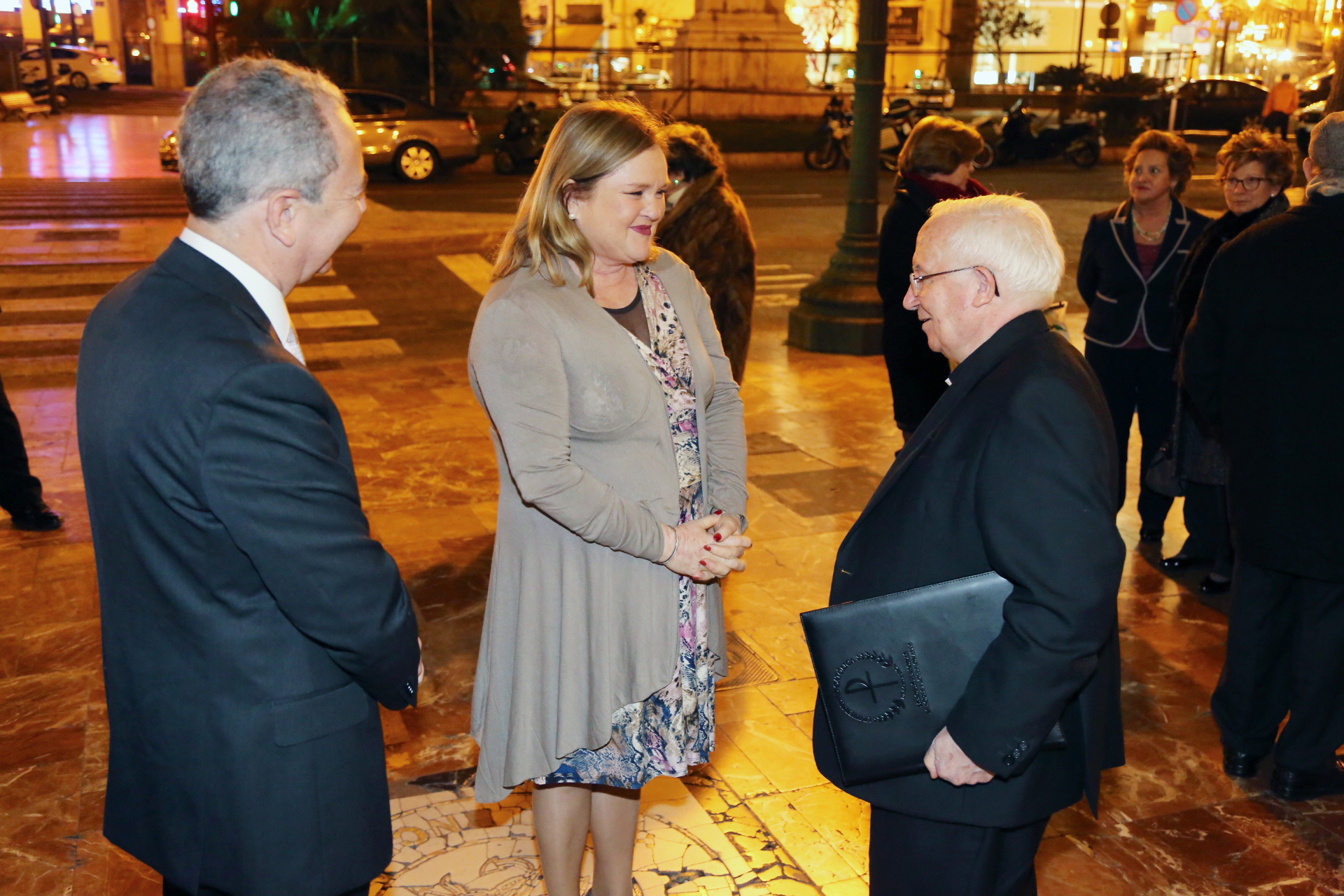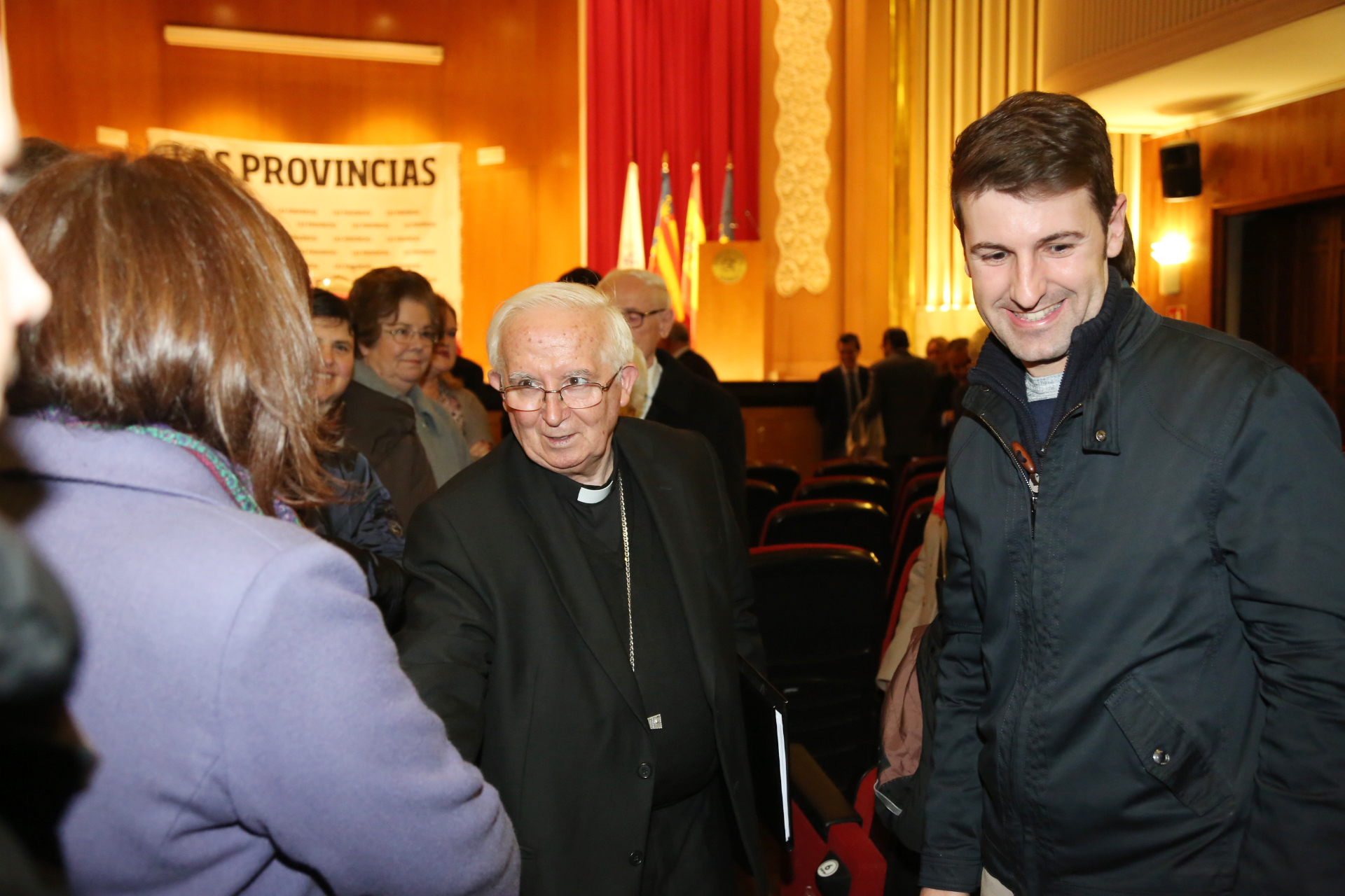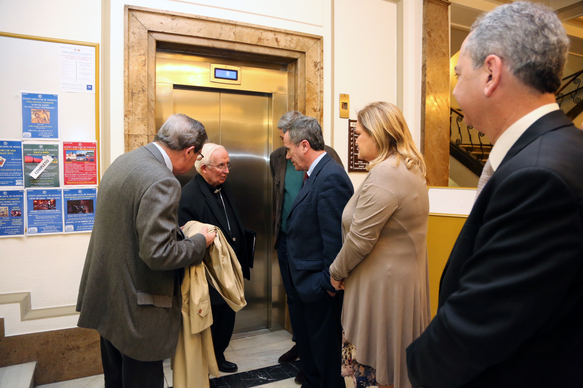 Más de 300 personas se dieron cita en el Salón de Actos del Ateneo Mercantil de Valencia para escuchar la conferencia que impartió el cardenal Antonio Cañizares dentro del marco informativo del Aula LAS PROVINCIAS. La presidenta del Ateneo Mercantil de Valencia, Carmen de Rosa, fue una perfecta anfitriona del asistentes en el acto, entre los que destacaban Julián Quirós, director de Las Provincias; el rector de la Universidad Católica, Ignacio Sánchez Cámara, el director de Cáritas Diocesana, Ignacio Grande y el vicario general del Arzobispado de Valencia, Vicente Fontestad.