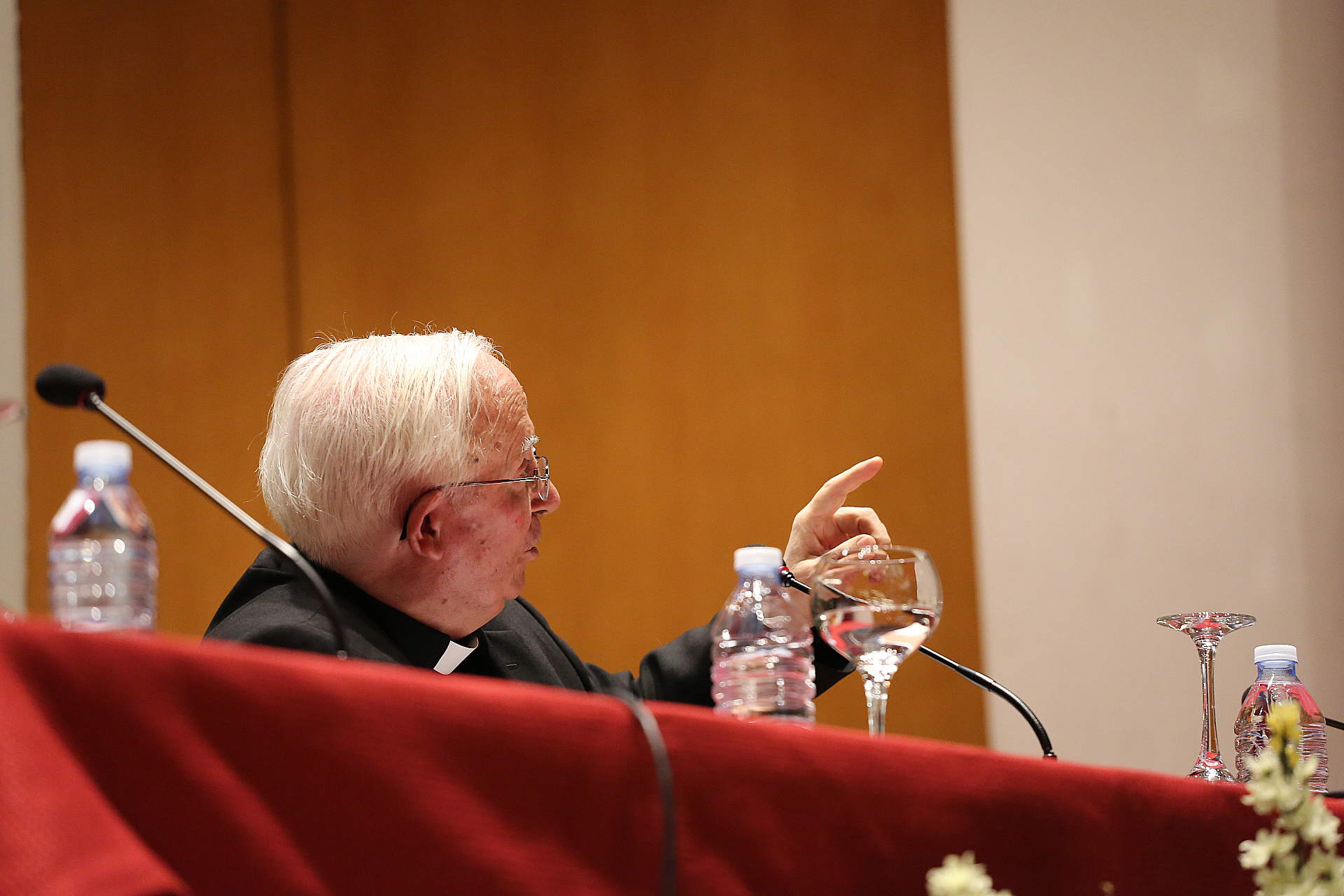 La conferencia bajo el título "El papel de la Iglesia en la actual coyuntura española" arrancó con una breve presentación del periodista Pablo Salazar, pero al poco tiempo arrancó el cardenal Cañizares destacando el espíritu de entendimiento y la renuncia de intereses políticos particulares que hubo en la Transición y que ahora son inexistentes por parte de todas las fuerzas políticas. Además, apostó por la unidad de todos y reivindicó los esfuerzos por parte de todas las fuerzas políticas que se hizo en la Transición española para afrontar los retos que vivió nuestro país tras la caída del antiguo régimen.