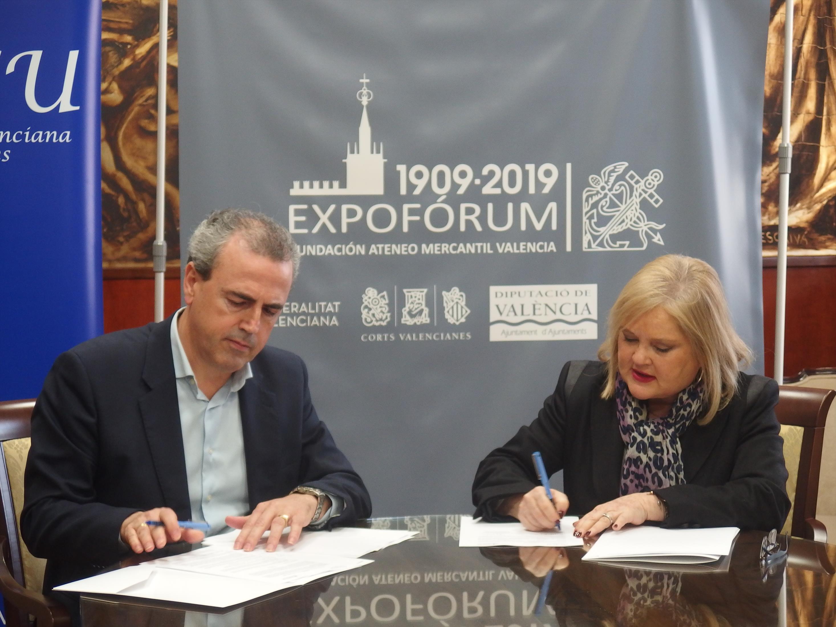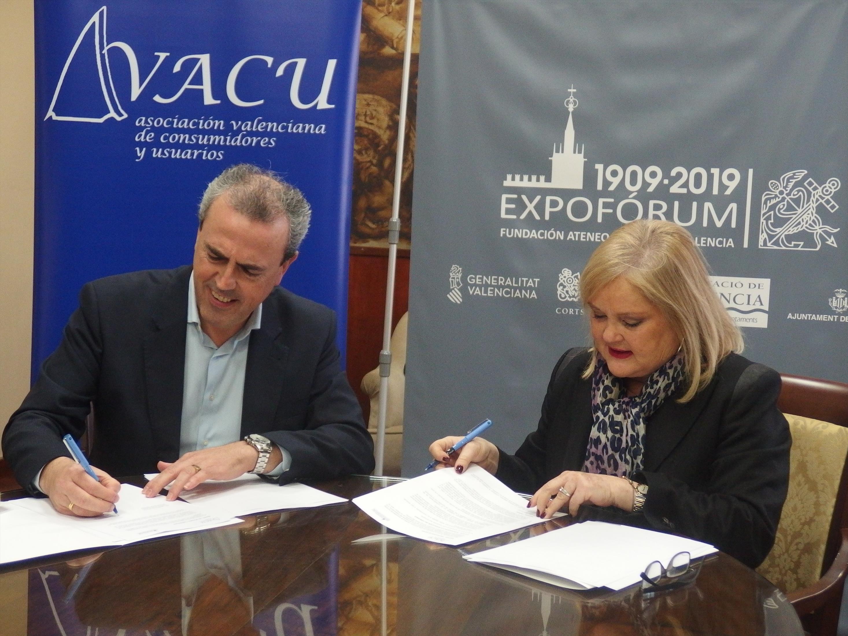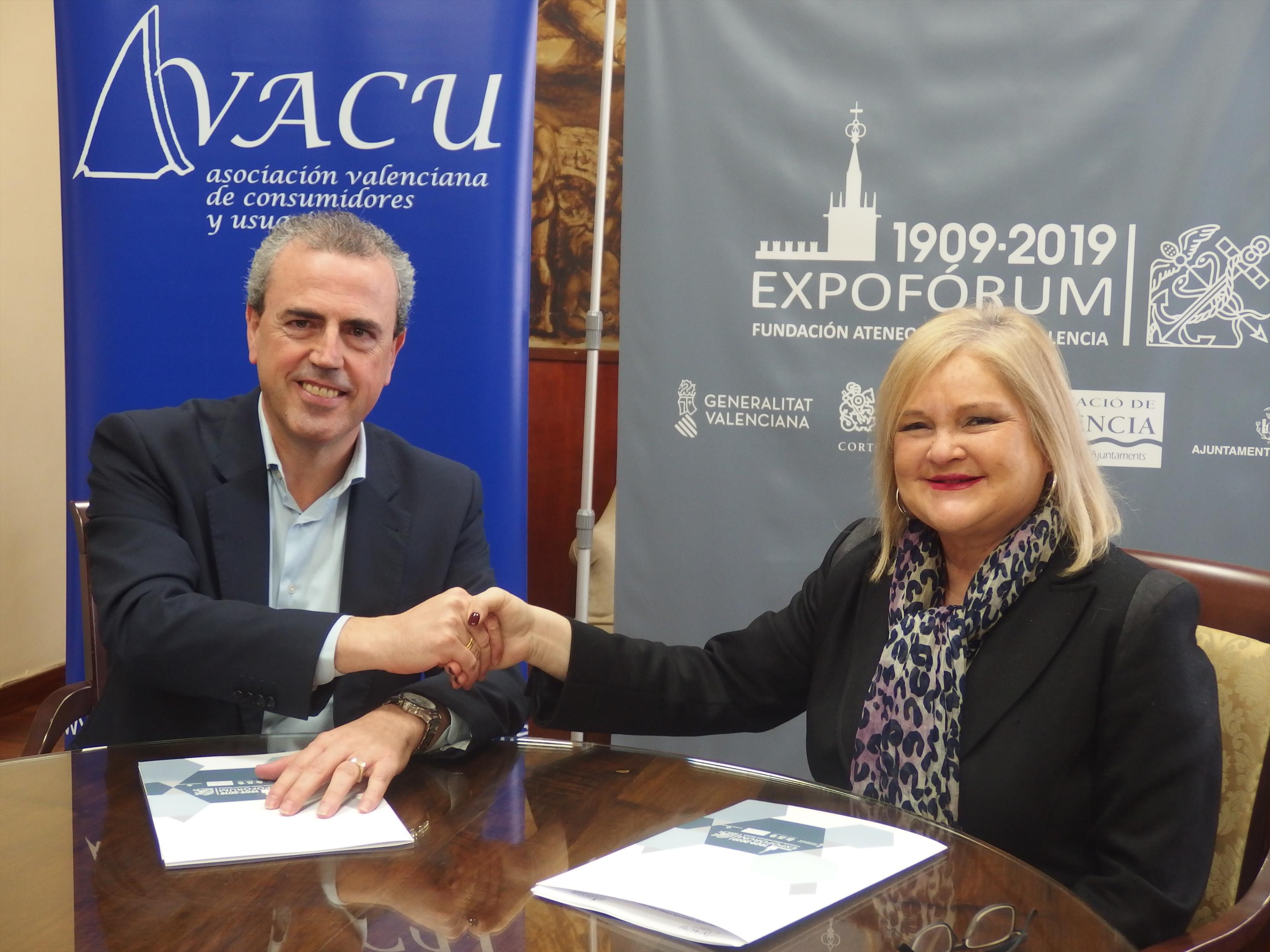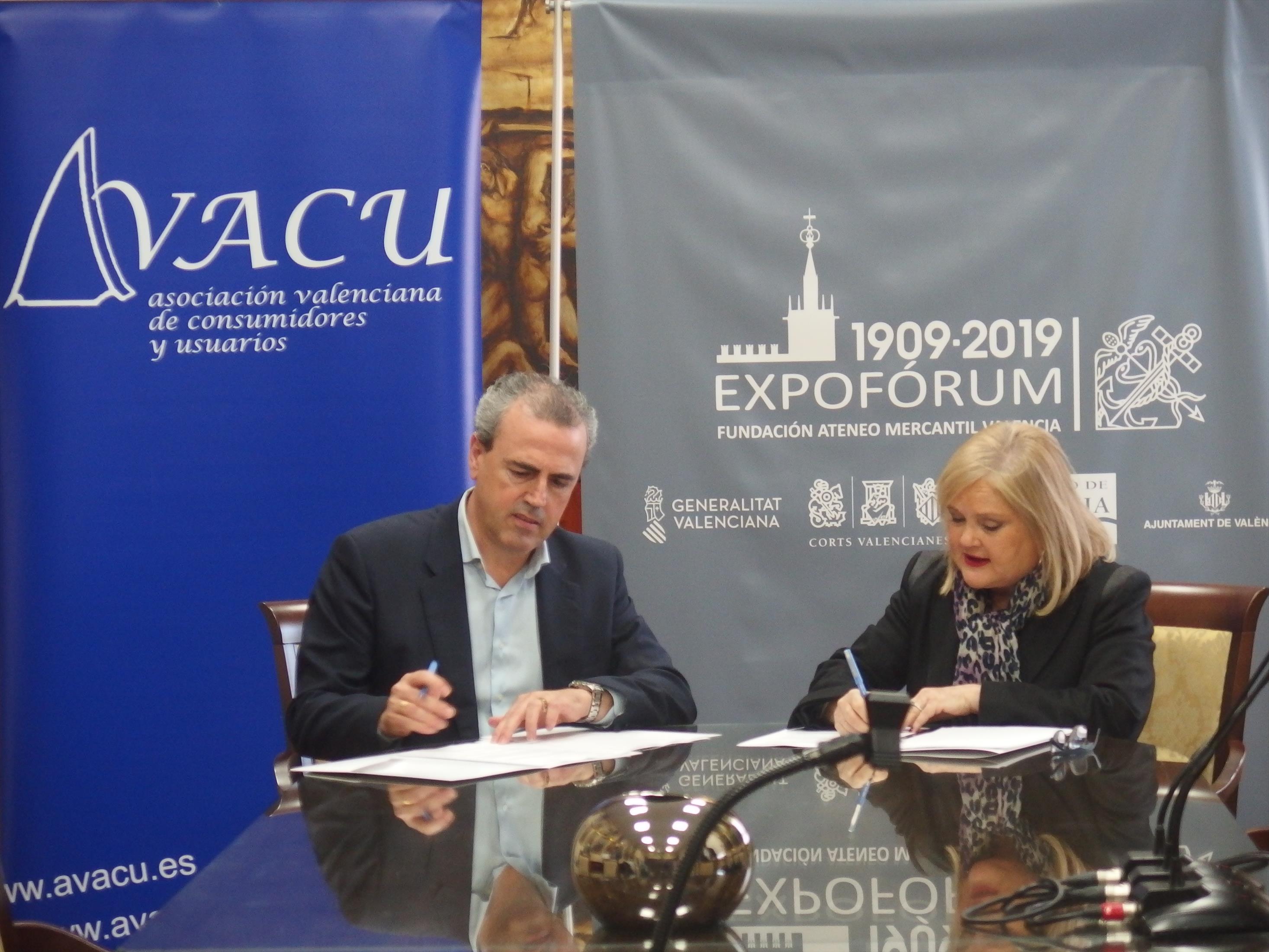 Además, en la mima mañana se ha producido otra fima de convenio de colaboración para el Expoforum entre AVACU y la Fundación del Ateneo Mercantil CV. De nuevo, la presidenta Carmen de Rosa ha mantenido un contacto con el presidente de la Asociación Valenciana de Consumidores y Usuarios, Fernando Moner, quien también se suman al proyecto cultural que va a marcar la pauta en Valencia en este primer tercio de año 2019.