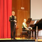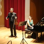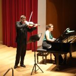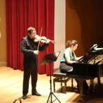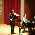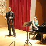 La primera actuación del Dúo Dalí trajo hasta el teatro de nuestra institución la música romántica. D. Fernando Pascual (violín) y Dña. Aída Velert (piano) hicieron las delicias del auditorio y ofrecieron un recital de música romántica en el que tocaron entre otras piezas: