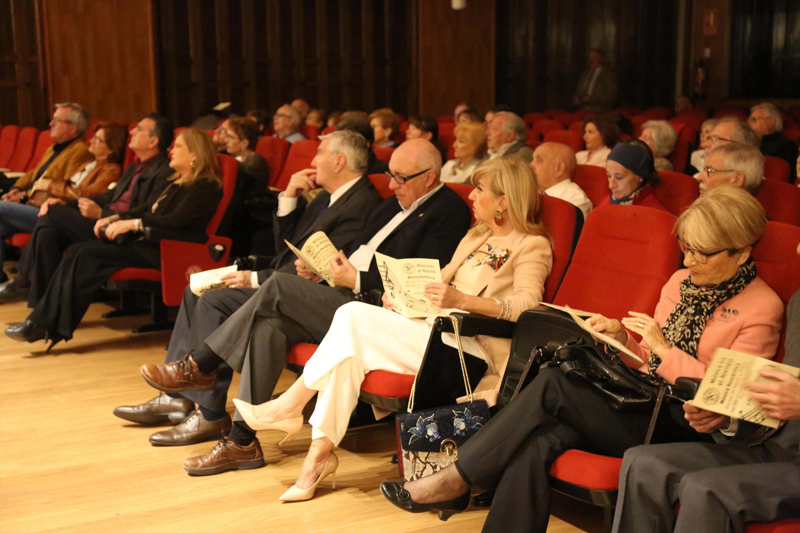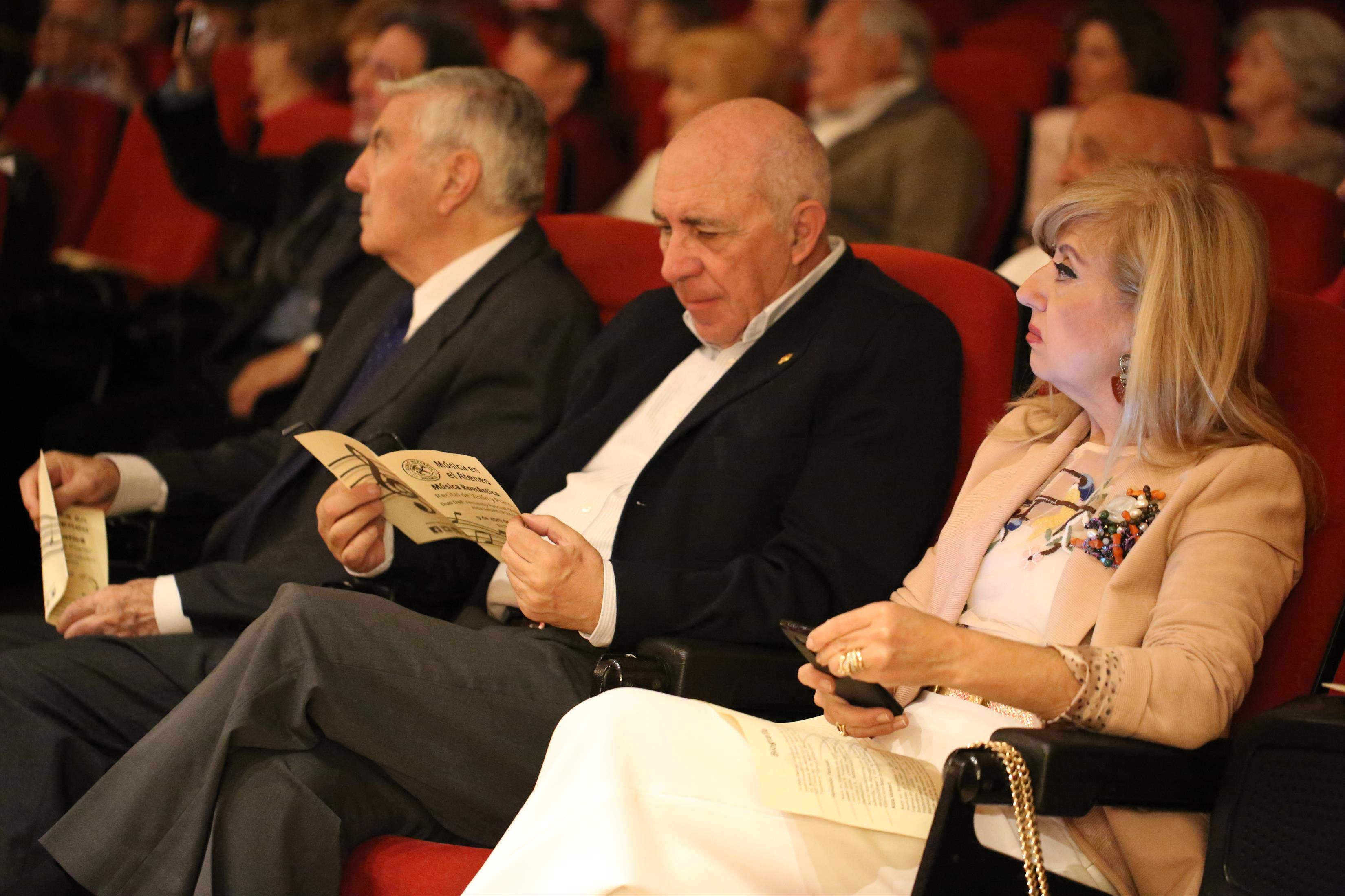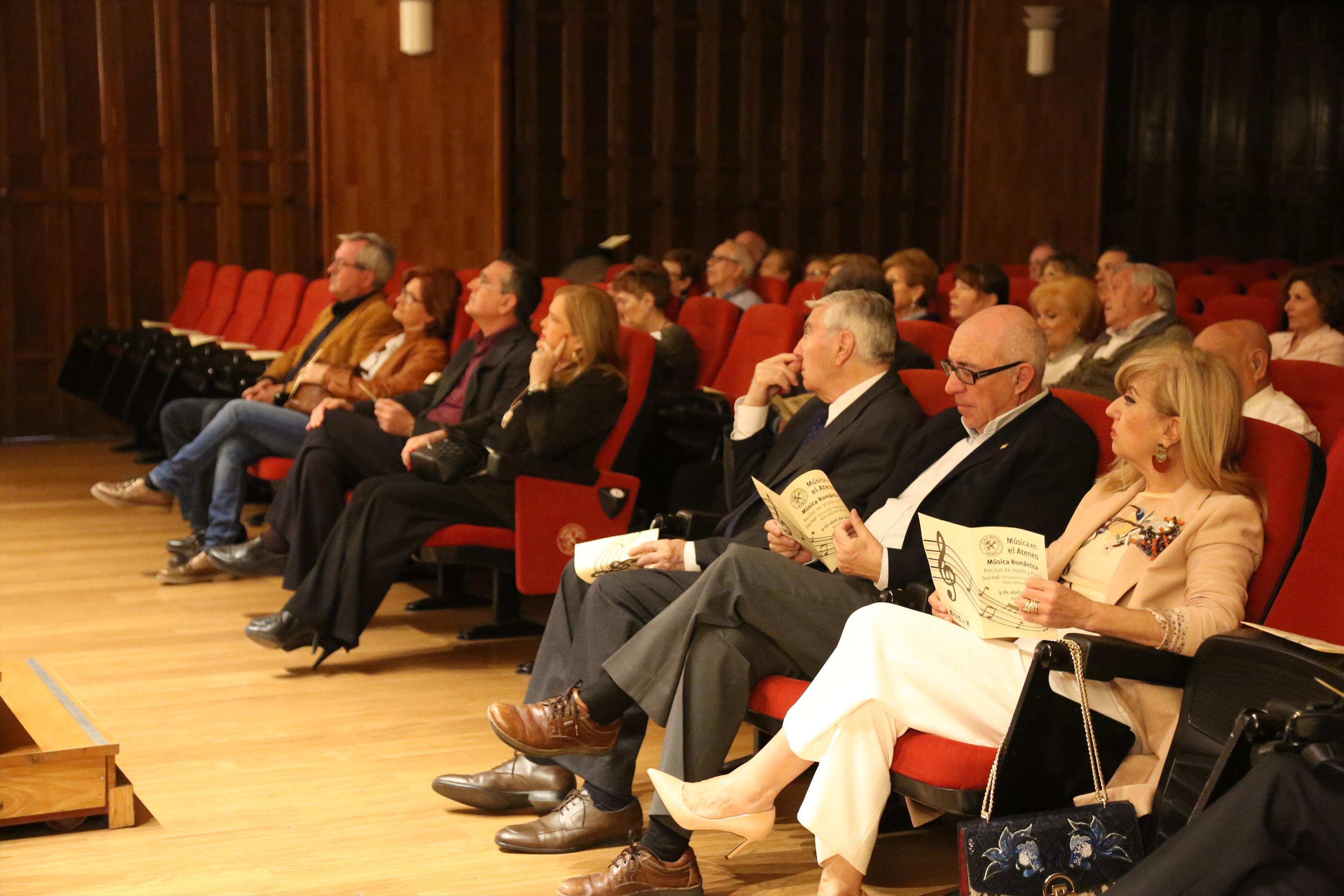 Los tradicionales Conciertos de los Domingos llegaron de nuevo al Salón de Actos del Ateneo Mercantil de Valencia de la mano del Dúo Dalí. Un concierto de música romántica que hizo las delicias de los presentes y que fue el pistoletazo de salida de la nueva temporada de música en nuestra institución. La presidenta del Ateneo Marcantil, Carmen de Rosa, presentó en sociedad a D. José Luis Prieto, que será el nuevo encargado de llevar la música cada domingo al Ateneo.