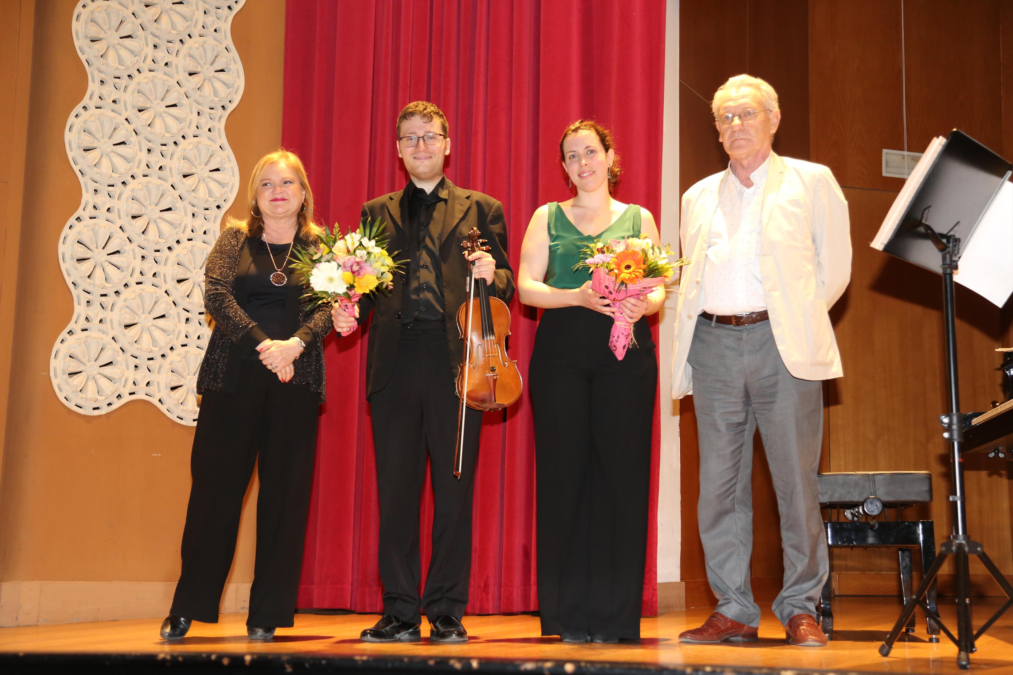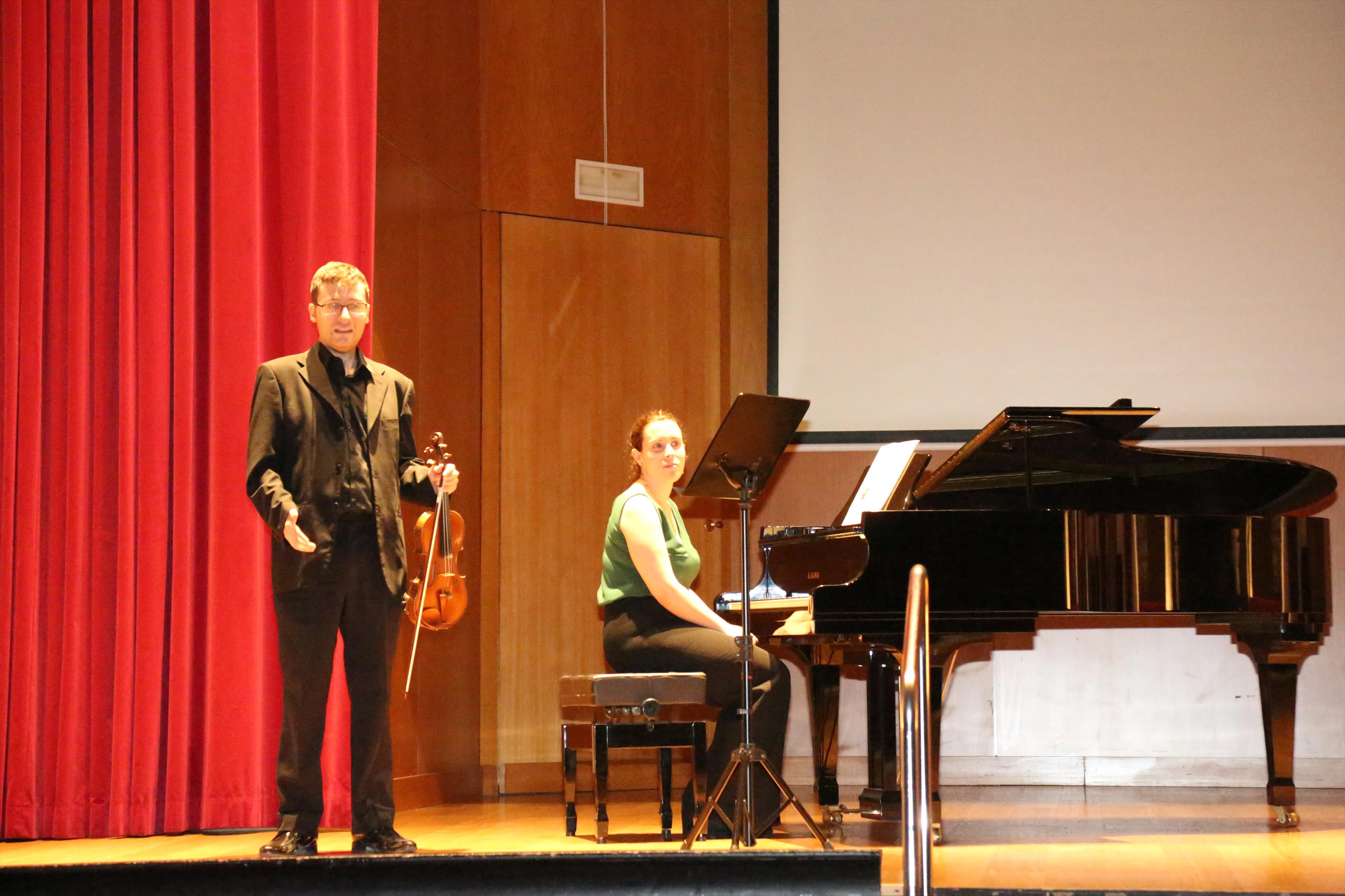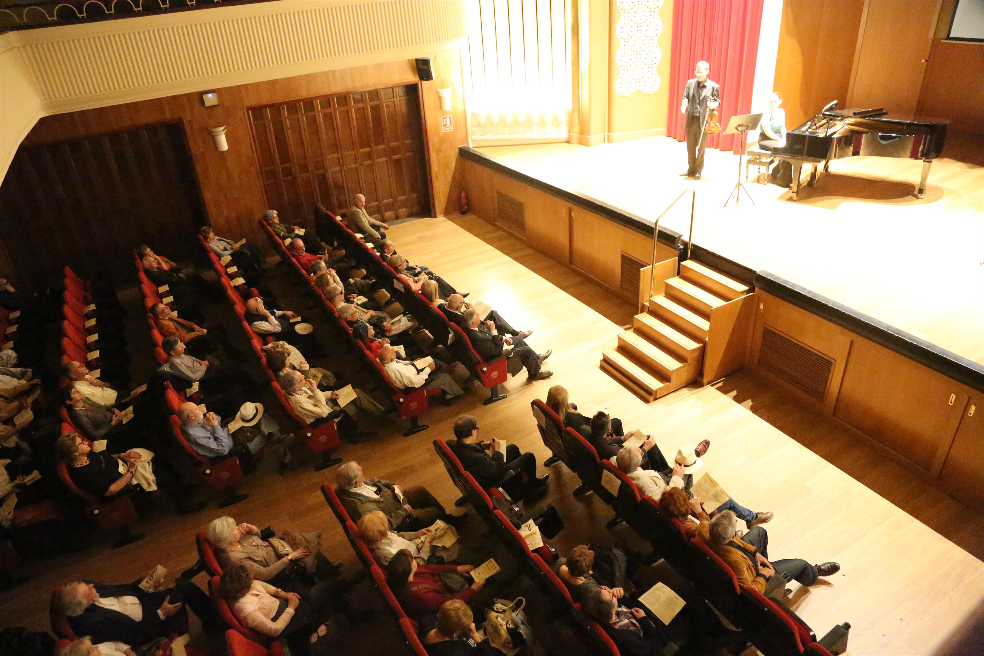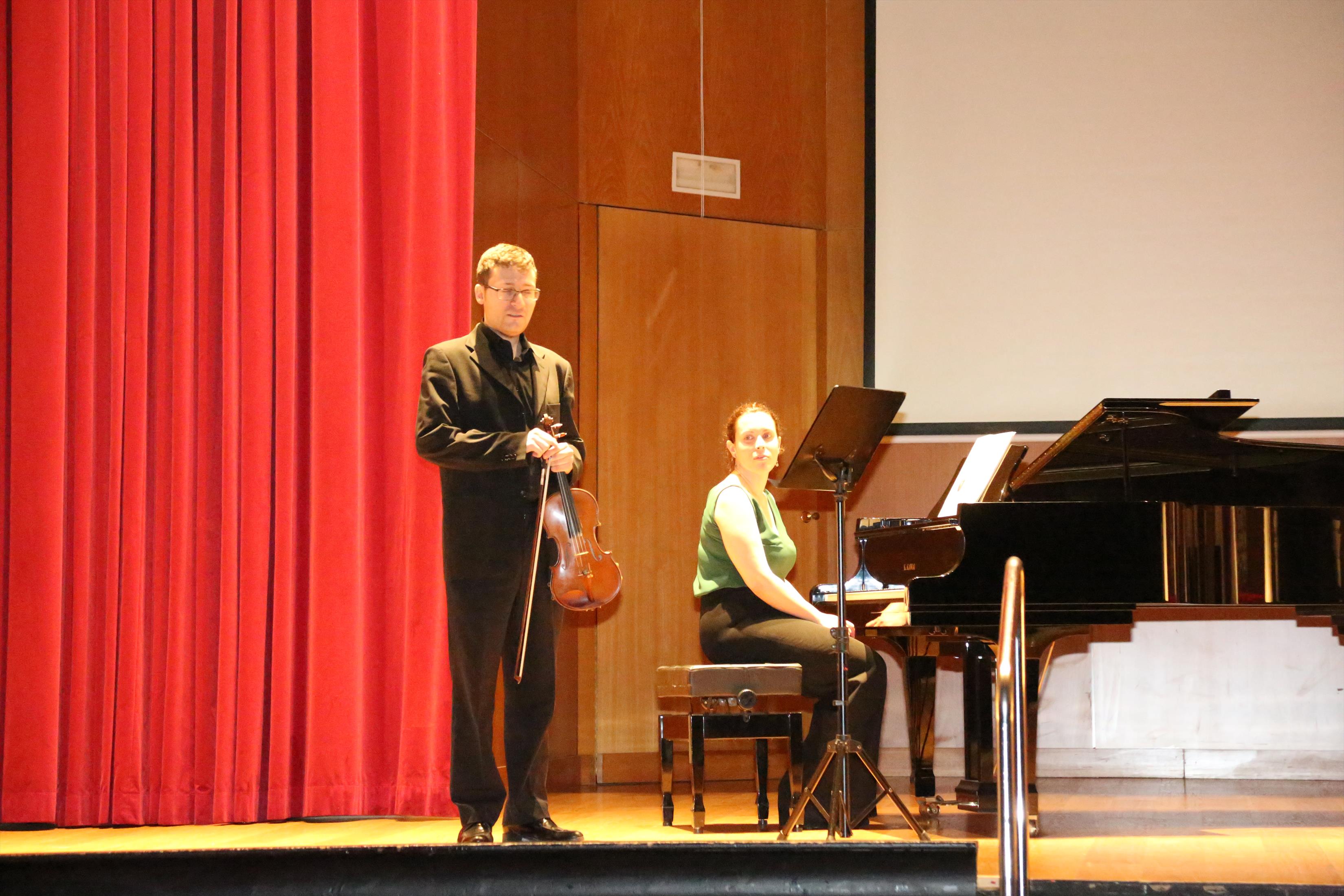 La primera actuación del Dúo Dalí trajo hasta el teatro de nuestra institución la música romántica. D. Fernando Pascual (violín) y Dña. Aída Velert (piano) hicieron las delicias del auditorio y ofrecieron un recital de música romántica en el que tocaron entre otras piezas: