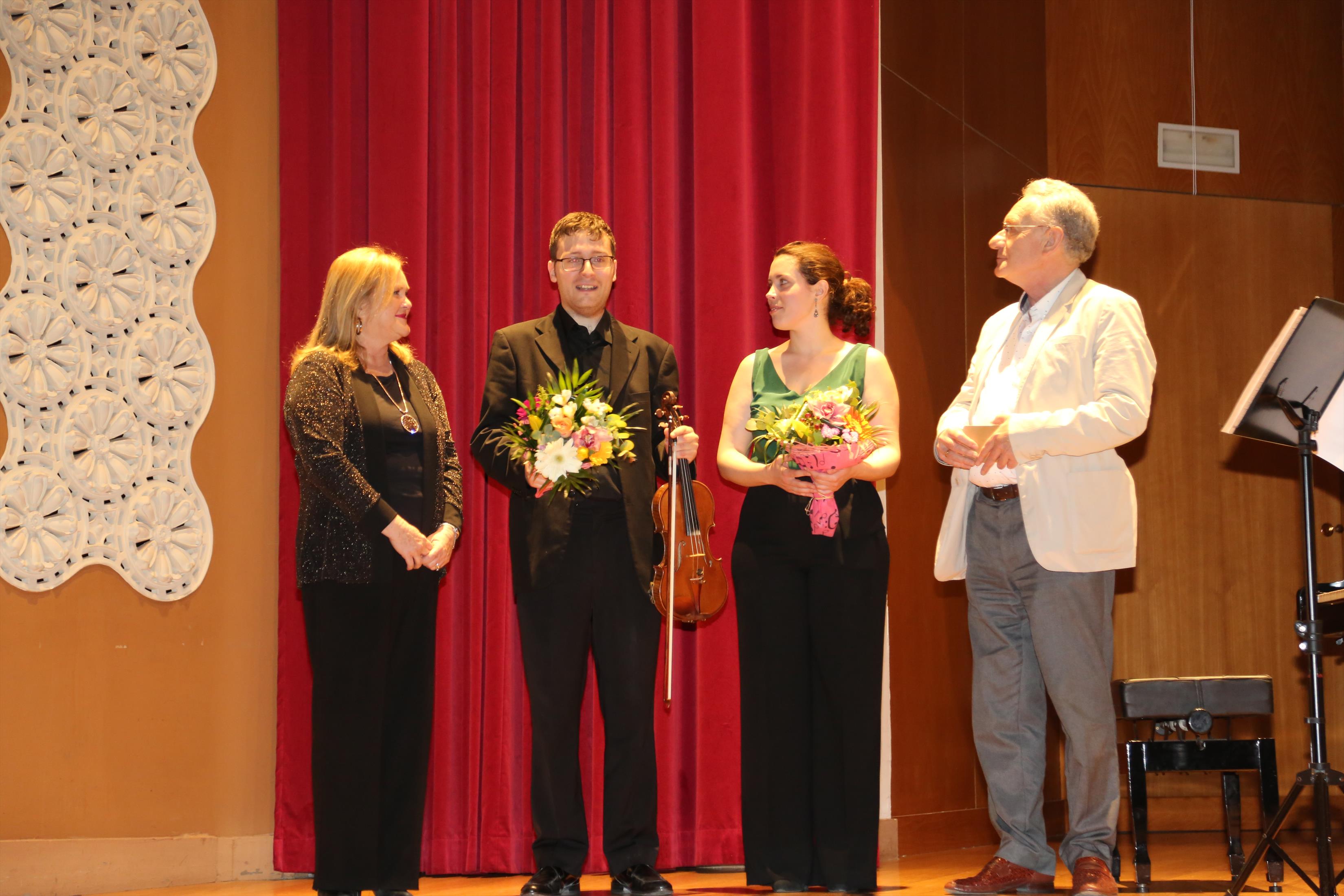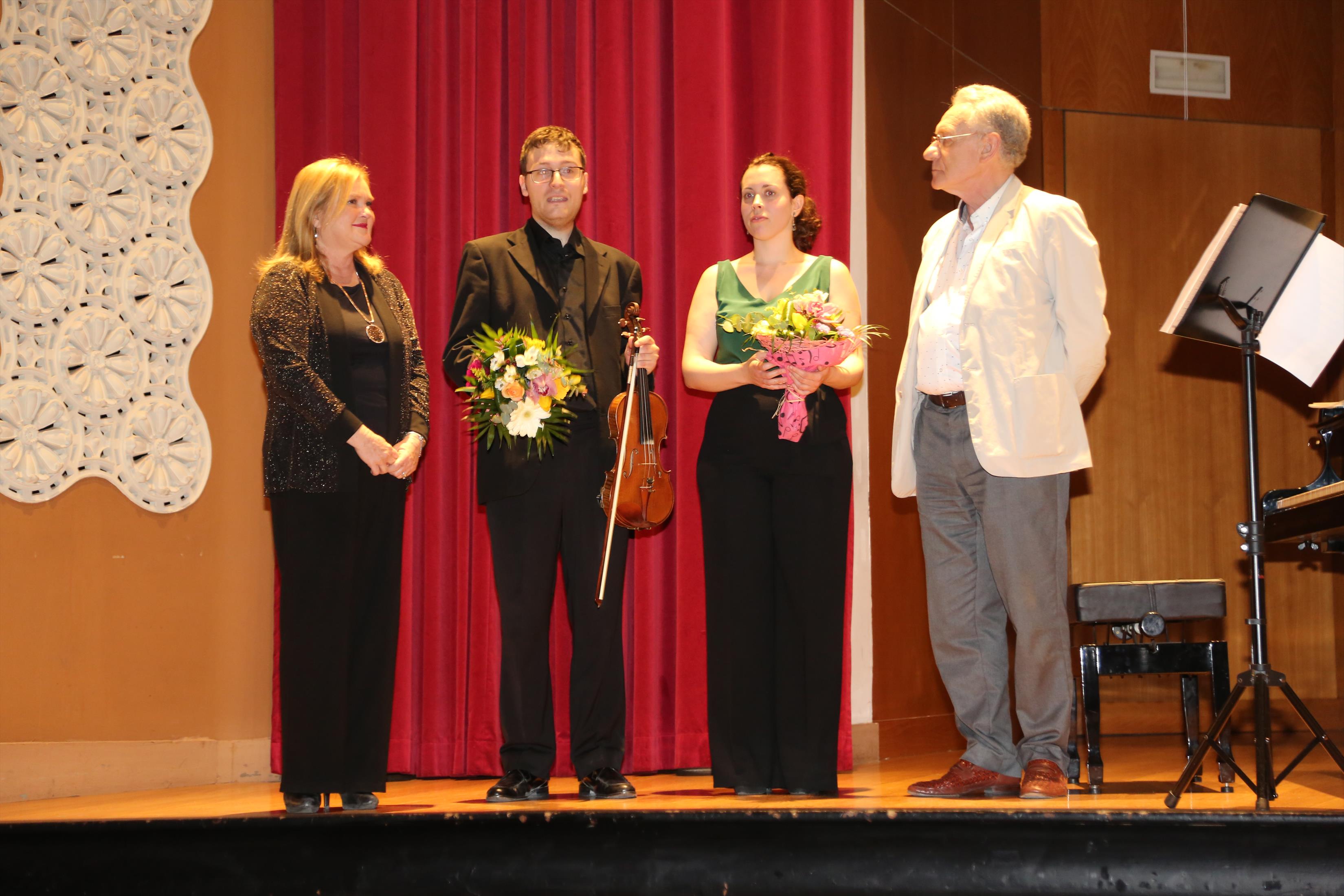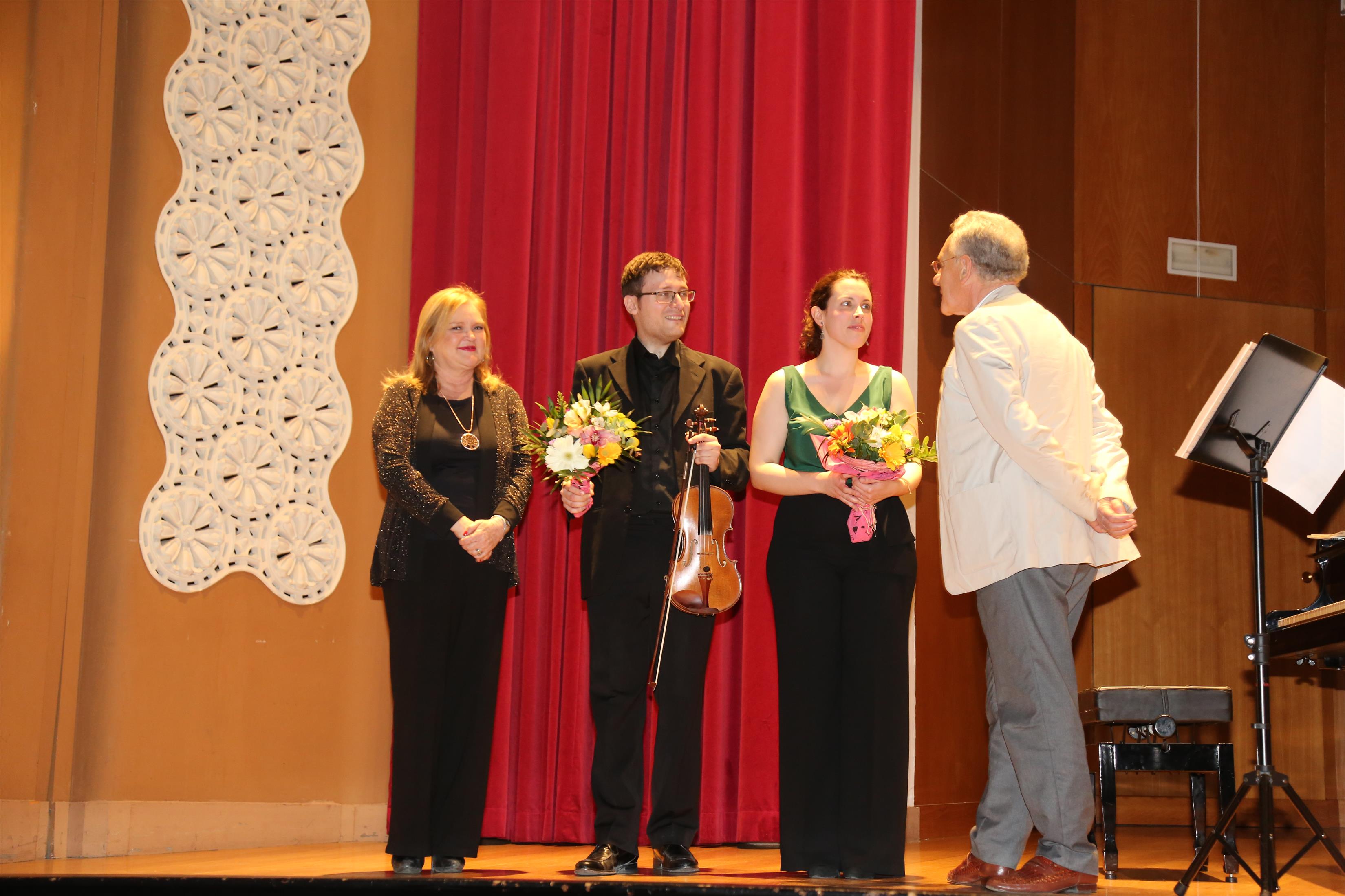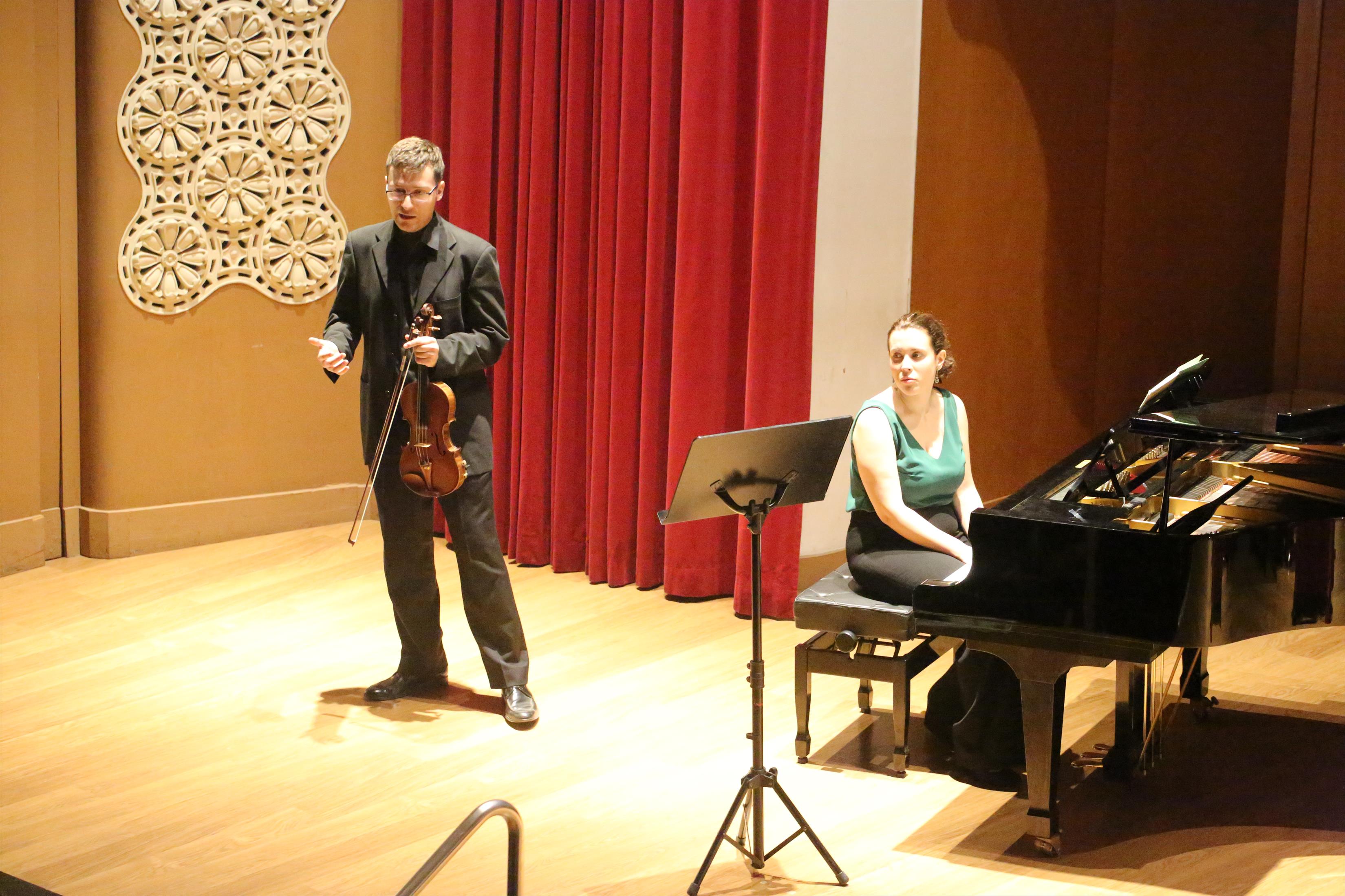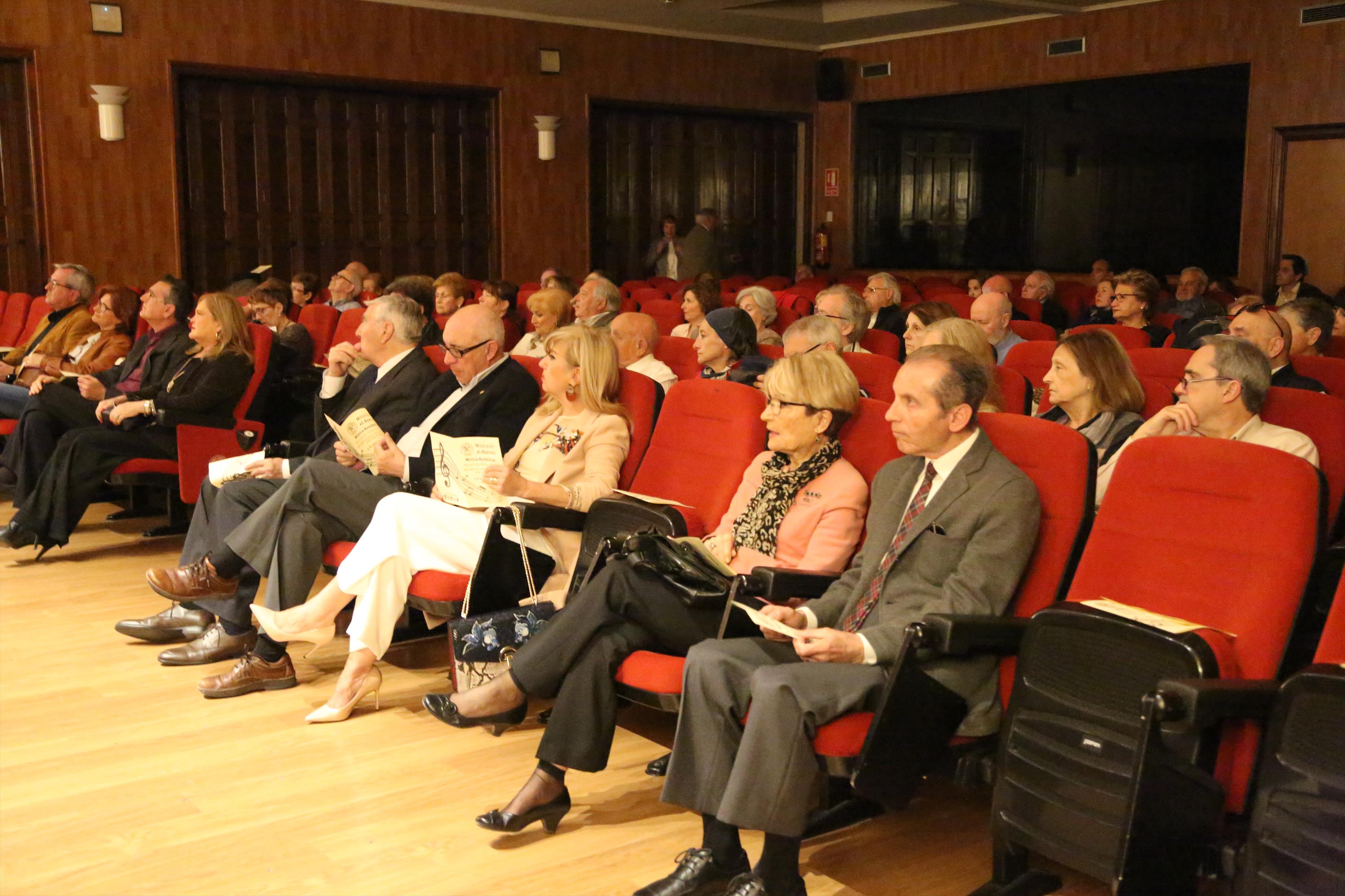 La primera actuación del Dúo Dalí trajo hasta el teatro de nuestra institución la música romántica. D. Fernando Pascual (violín) y Dña. Aída Velert (piano) hicieron las delicias del auditorio y ofrecieron un recital de música romántica en el que tocaron entre otras piezas:
