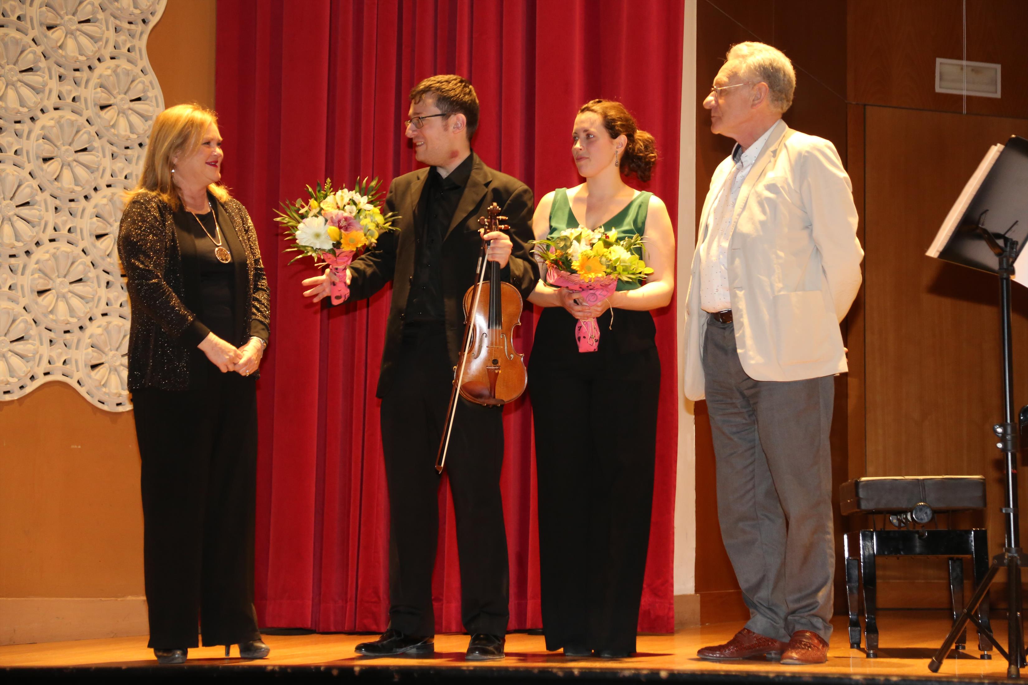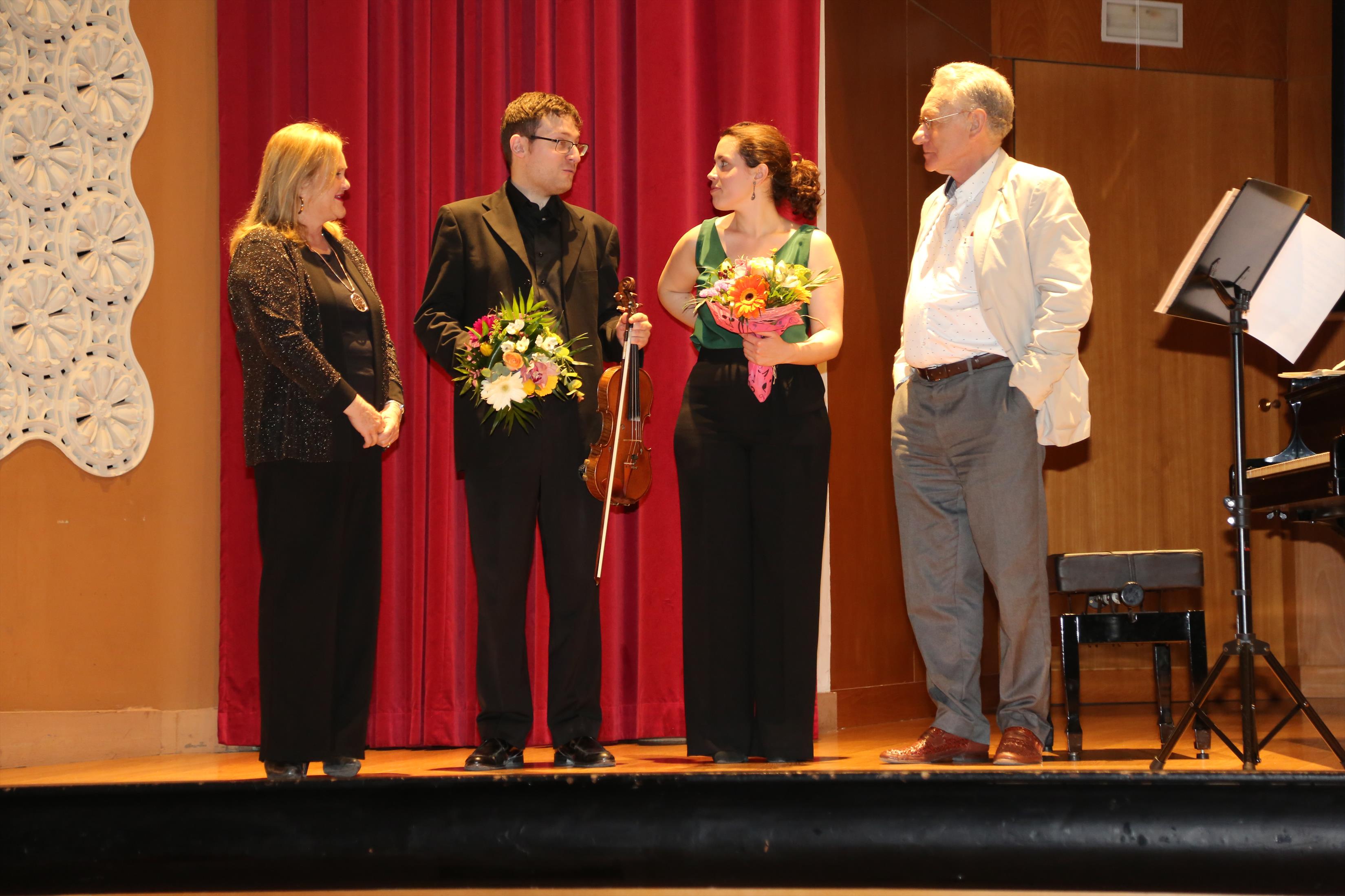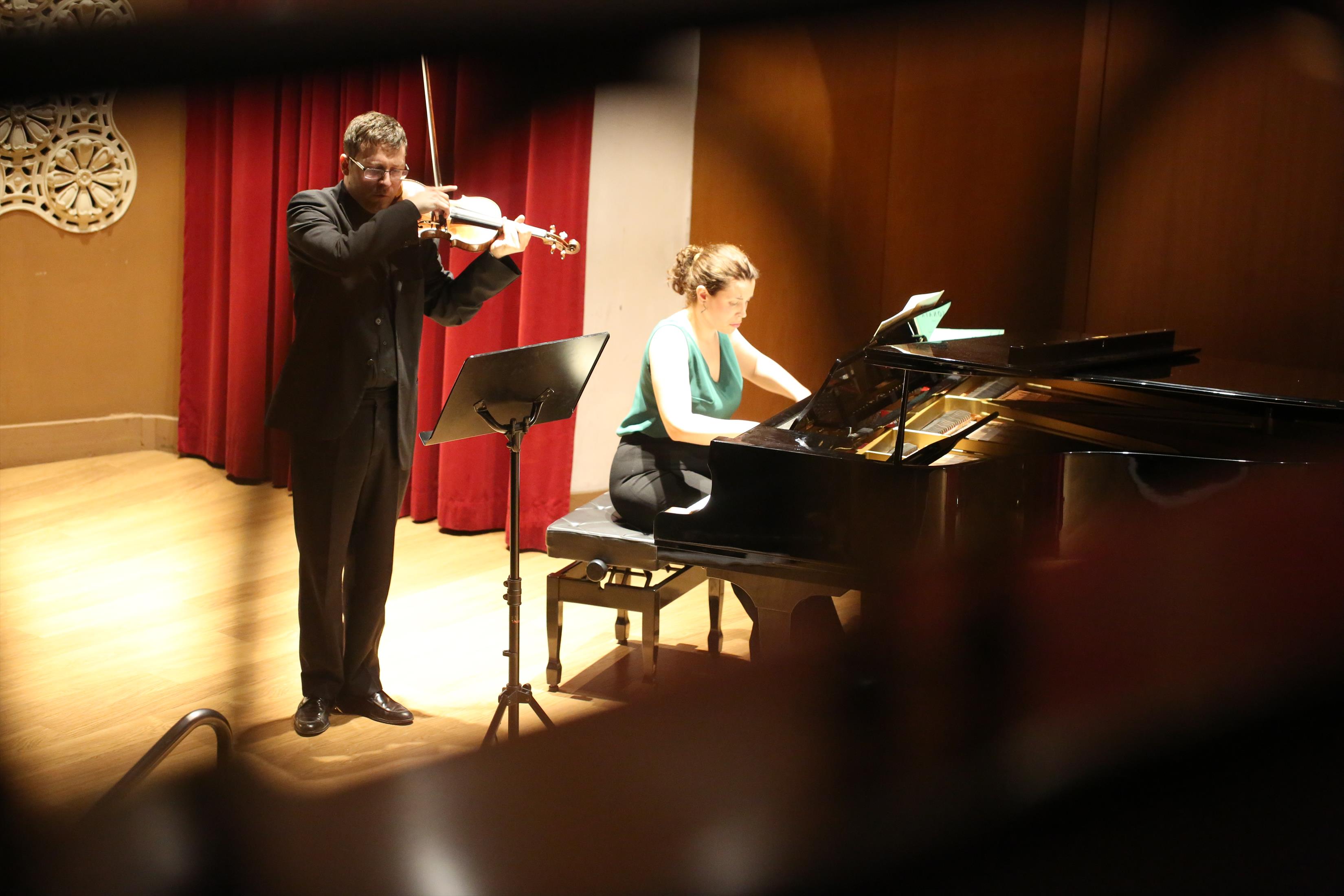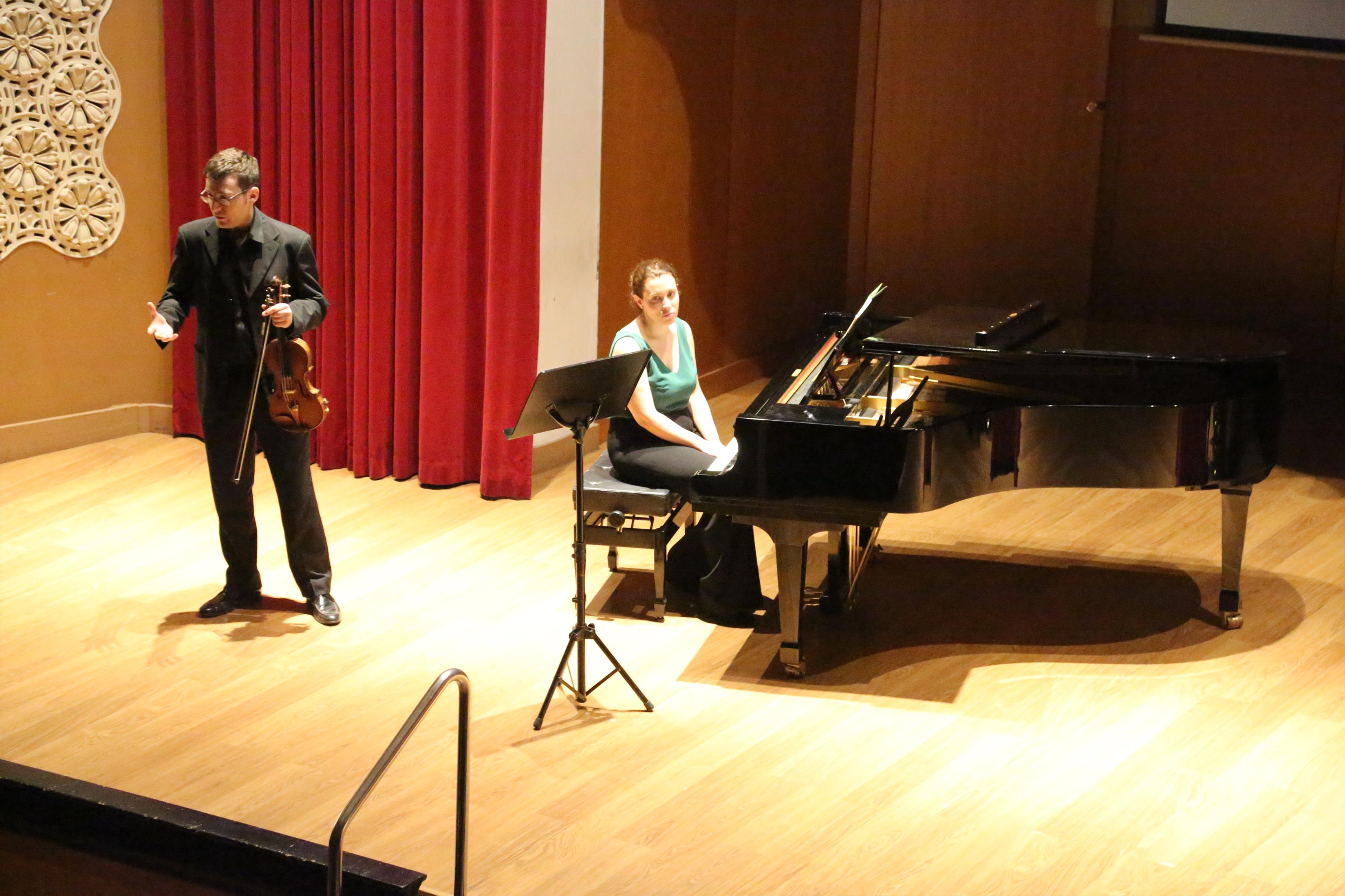 La primera actuación del Dúo Dalí trajo hasta el teatro de nuestra institución la música romántica. D. Fernando Pascual (violín) y Dña. Aída Velert (piano) hicieron las delicias del auditorio y ofrecieron un recital de música romántica en el que tocaron entre otras piezas: