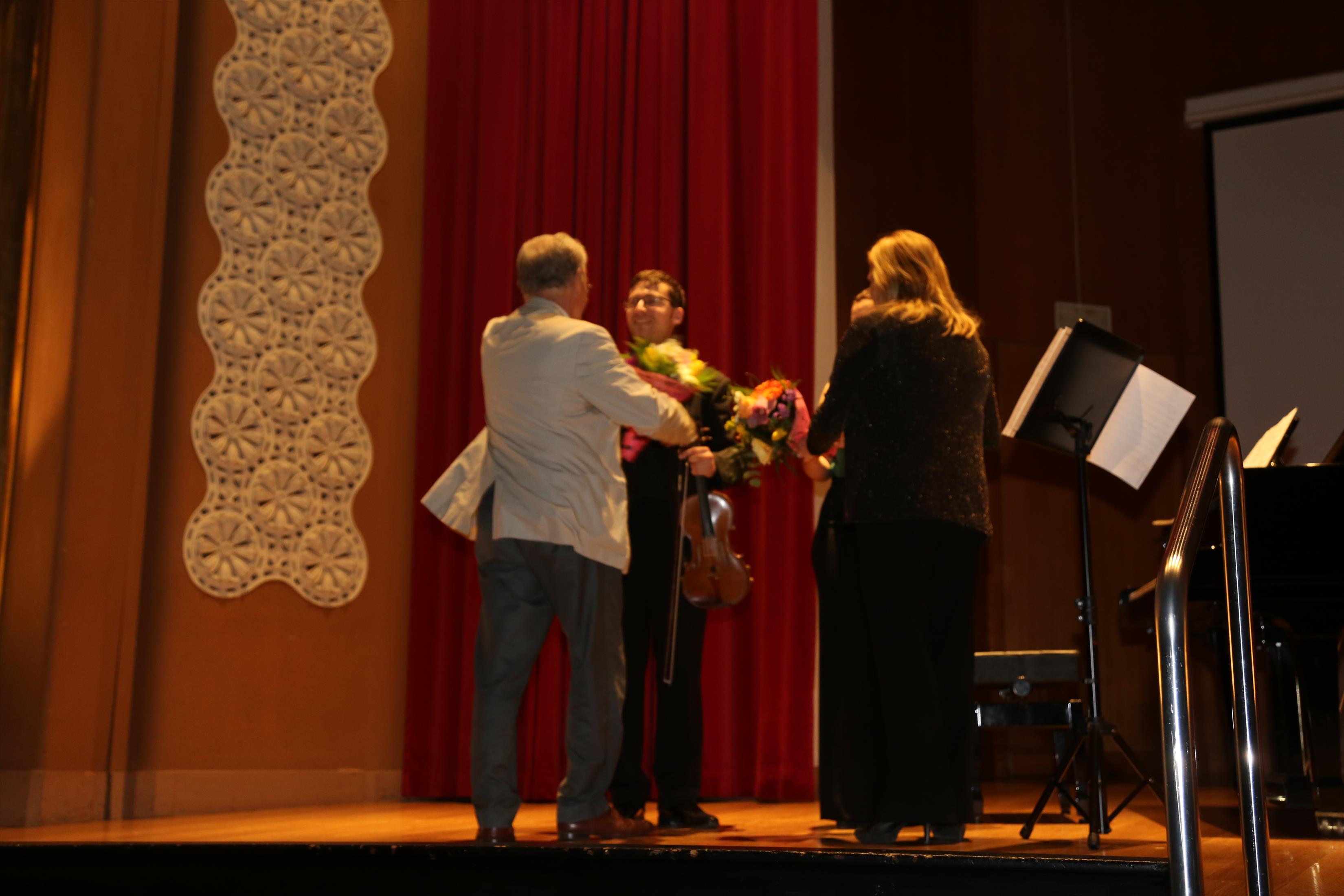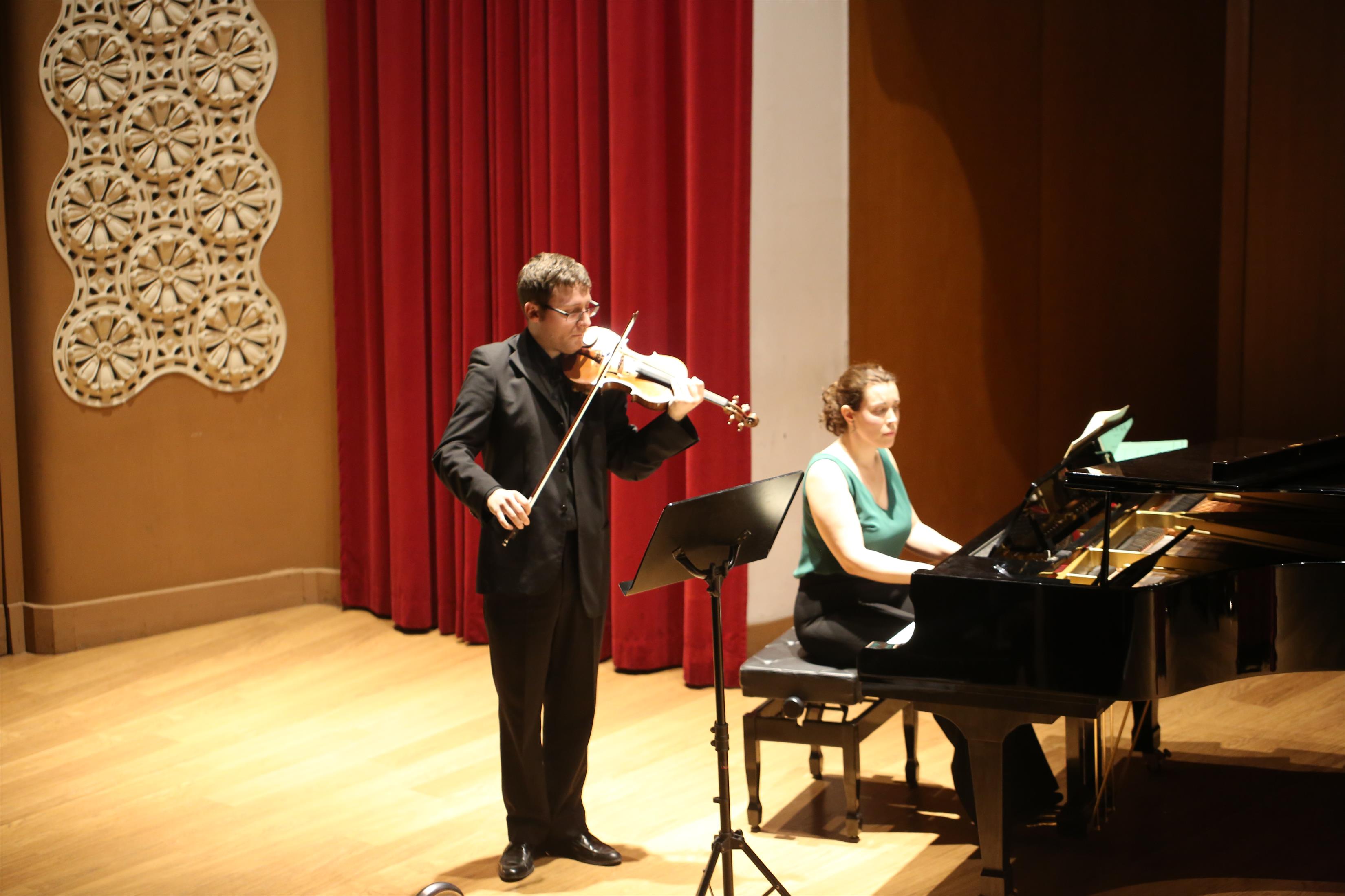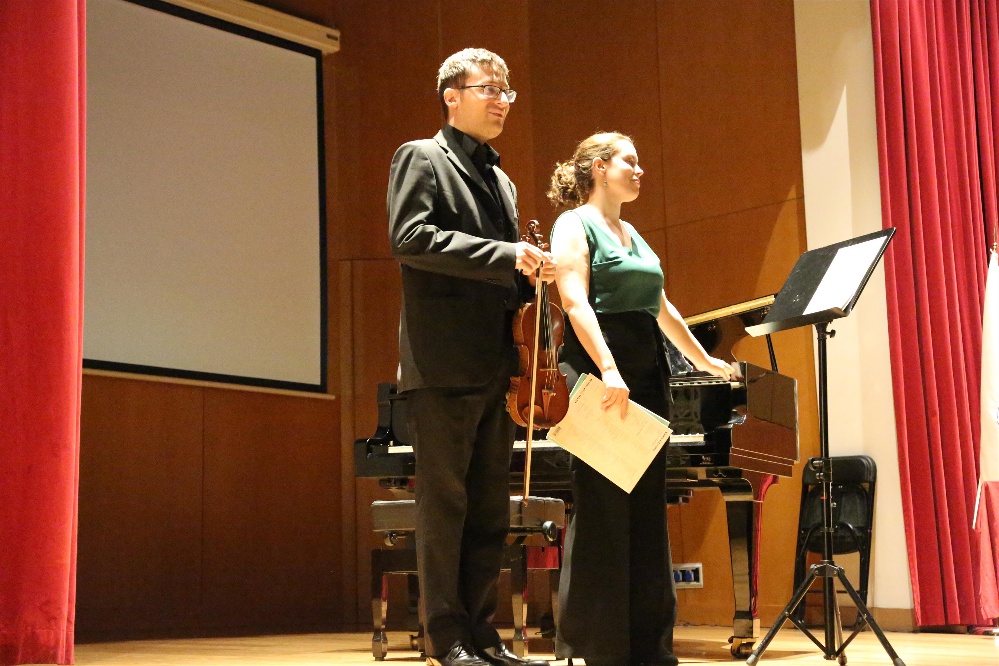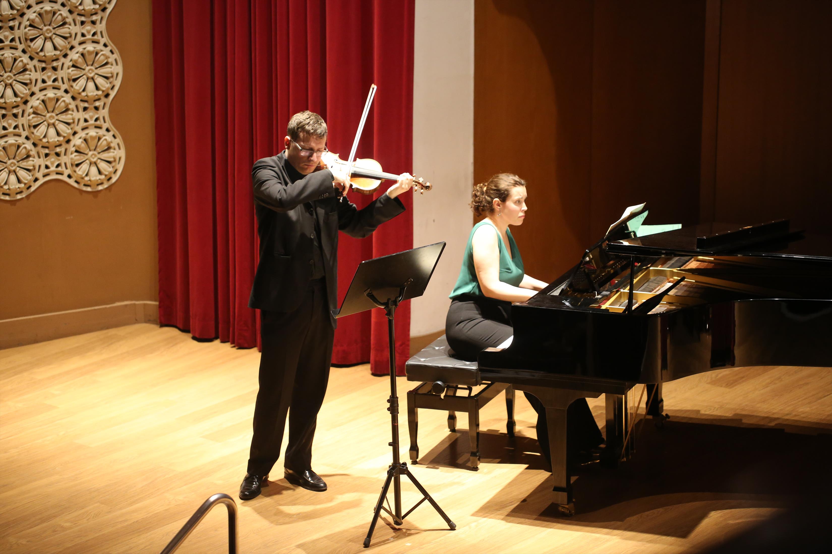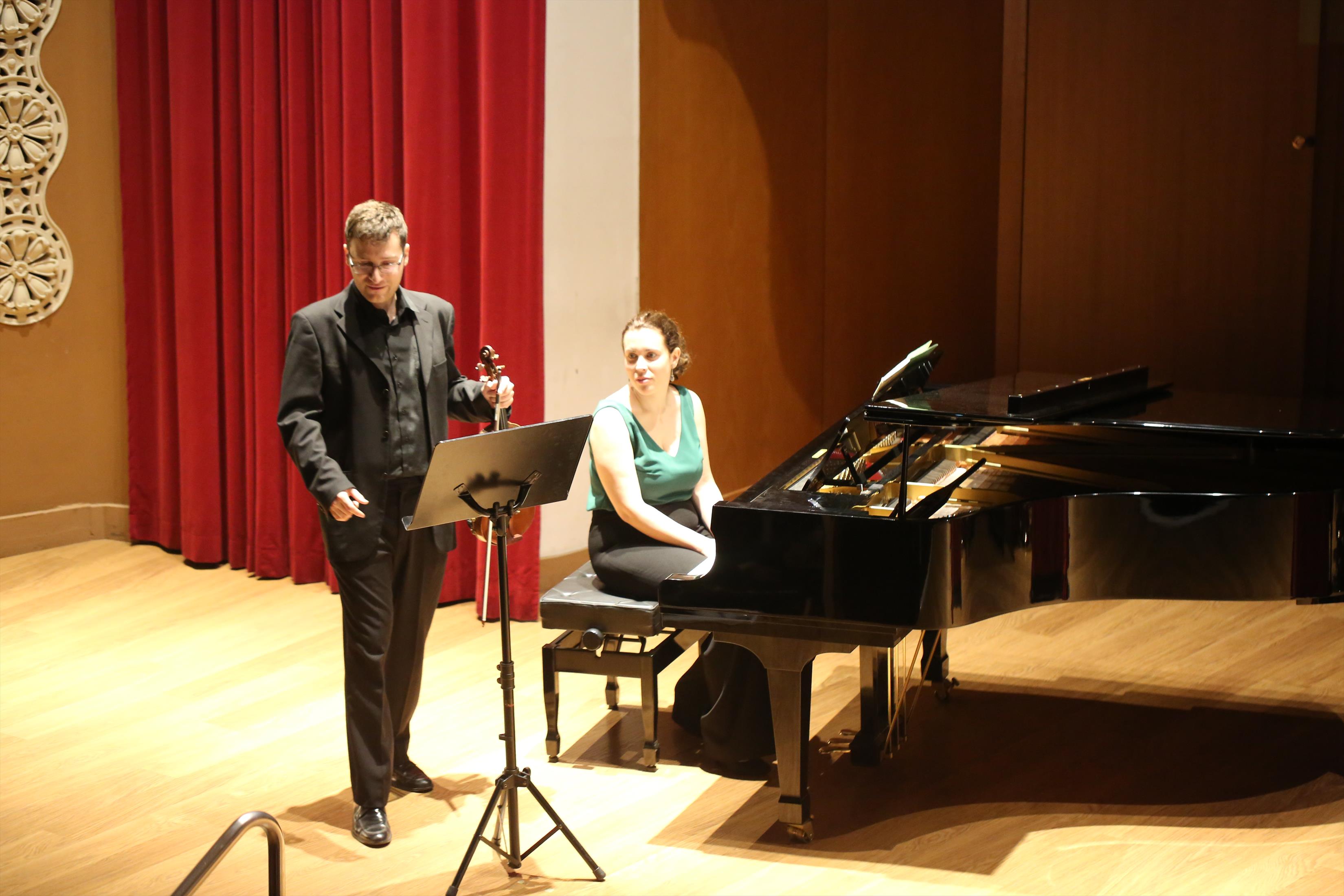 La primera actuación del Dúo Dalí trajo hasta el teatro de nuestra institución la música romántica. D. Fernando Pascual (violín) y Dña. Aída Velert (piano) hicieron las delicias del auditorio y ofrecieron un recital de música romántica en el que tocaron entre otras piezas: