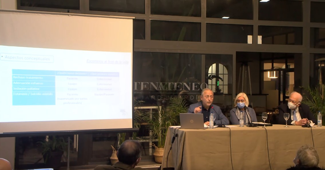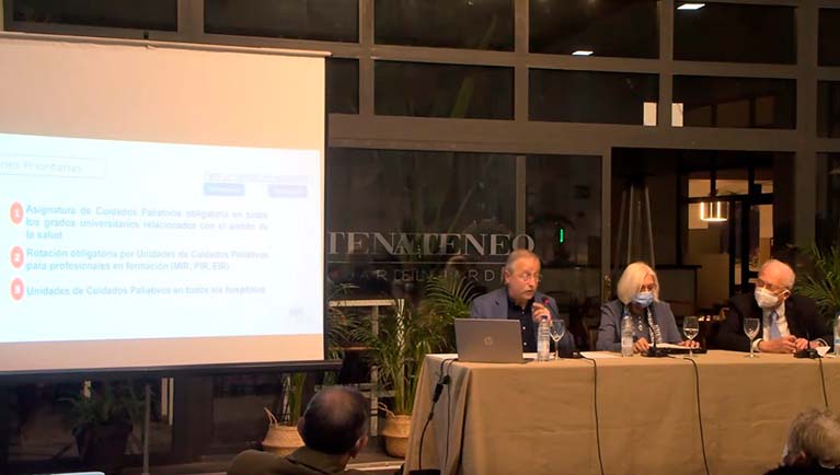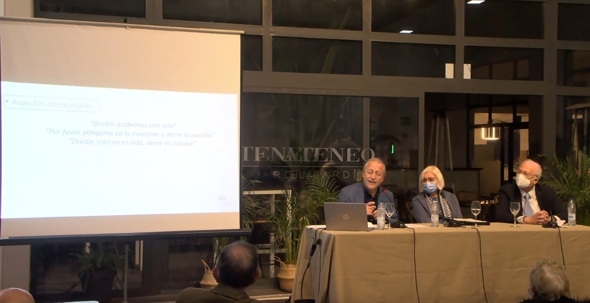 La Escuela de Salud del Ateneo Mercantil de Valencia nos habló largo y tendido sobre "El final de la vida y los cuidados paliativos. La visión de un profesional", una conferencia ofrecida por el especialista en cuidados paliativos, Jefe del servicio de medicina interna del hospital Doctor Moliner y responsable de la Unidad de Cuidados Paliativos, el Dr. Miguel Fombuena. Moderó el acto la especialista en medicina interna. Servicio de cuidados paliativos del hospital Doctor Moliner. Fundadora de la sociedad valenciana de calidad asistencial, la Dra. María Rosa Roca Castelló.
