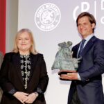Acto seguido, El Juli, recogió el Premio Distinción -una escultura en bronce del artista valenciano Raúl Hernández que recrea un torero haciendo una media verónica junto a la fachada del Ateneo-, de manos de Carmen de Rosa, del coordinador de la Tertulia Taurina, Paco Roger, y de Enrique Mora Rubio.
