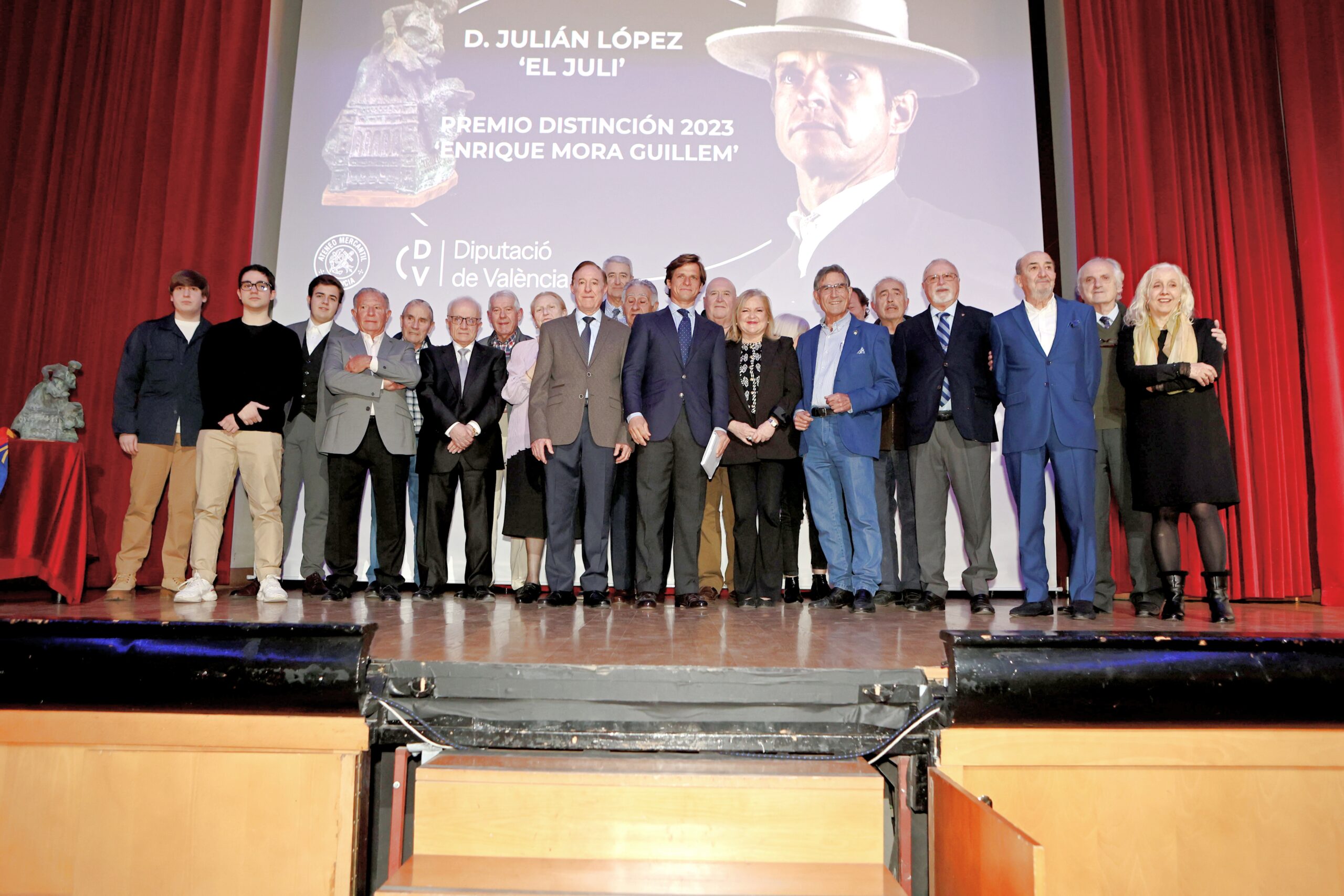 La Tertulia Taurina del Ateneo Mercantil de Valencia rindió este jueves un homenaje a Julián López “El Juli” con la entrega del premio Enrique Mora Guillén en su edición de 2023. El evento congregó a autoridades y aficionados en un salón de actos lleno hasta la bandera que tributó un merecido reconocimiento a quien ha sido una de las figuras más importantes de los últimos veinticinco años en el toreo.