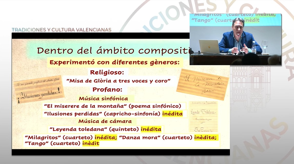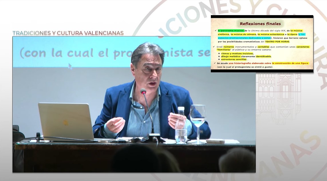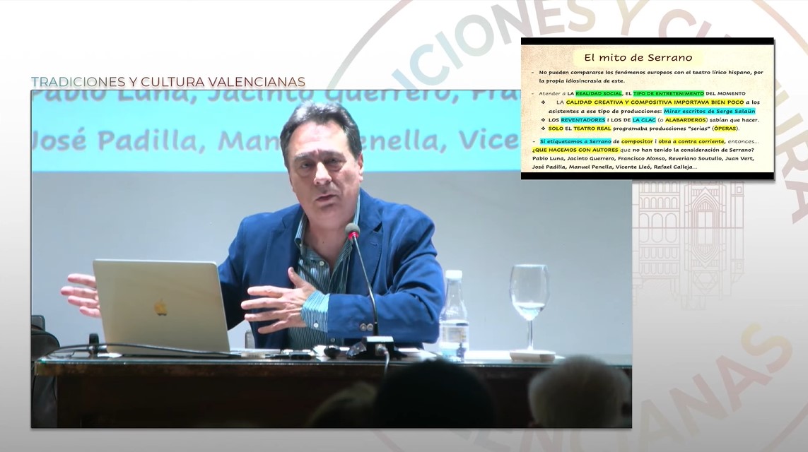 Nos descubrieron los rasgos característicos de la obra lírica del maestro José Serrano Simeón, probablemente el compositor de zarzuelas más relevante del siglo XX, así como las opiniones que la crítica especializada de la época llevó a cabo sobre su insigne producción. La riqueza melódica de sus obras, que tenía su origen en la música popular española, la variedad rítmica de las mismas y su sencilla y eficaz instrumentación son tan sólo algunos de los rasgos más representativos de su magna obra y que se desgranaron en esta conferencia.