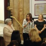 La presidenta del Ateneo Mercantil de Valencia, Carmen de Rosa, la presidenta de AFAV, Juana García, junto a las concejalas del PSPV-PSOE, Sandra Gómez. y del PPCV, Lourdes Bernal, han dado el pistoletazo de salida al Tradicional Mercadillo Benéfico para luchar contra el Alzheimer.