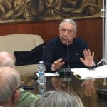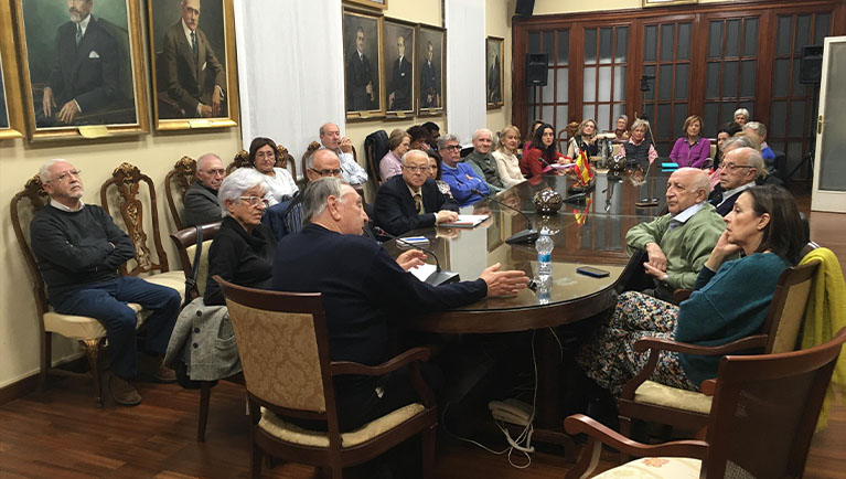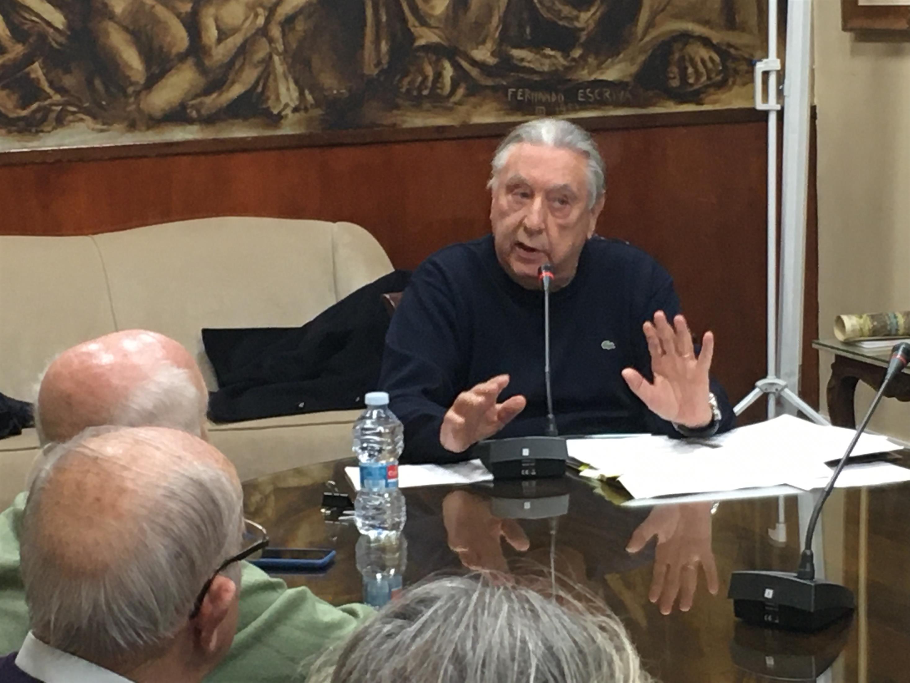 Con la presencia de nuestro invitado, Carlos Pajuelo de Arcos, periodista y escritor, profesor emérito de ciencias de la información en la Universidad Cardenal Herrera de Valencia, se desarrolló un interesante debate tras la exposición inicial realizada sobre el periodismo lento, enmarcado en el movimiento slow que hoy en día invade tantas esferas de nuestra vida. Distinguió nuestro invitado entre reporteros y columnistas, y si se quiere cabría hablar de editorialistas, y aun de aquellos que examinan un tema con profundidad y con carácter atemporal.